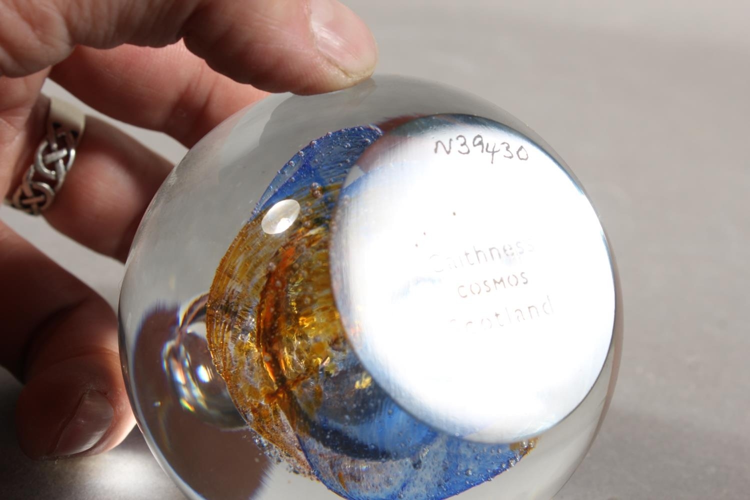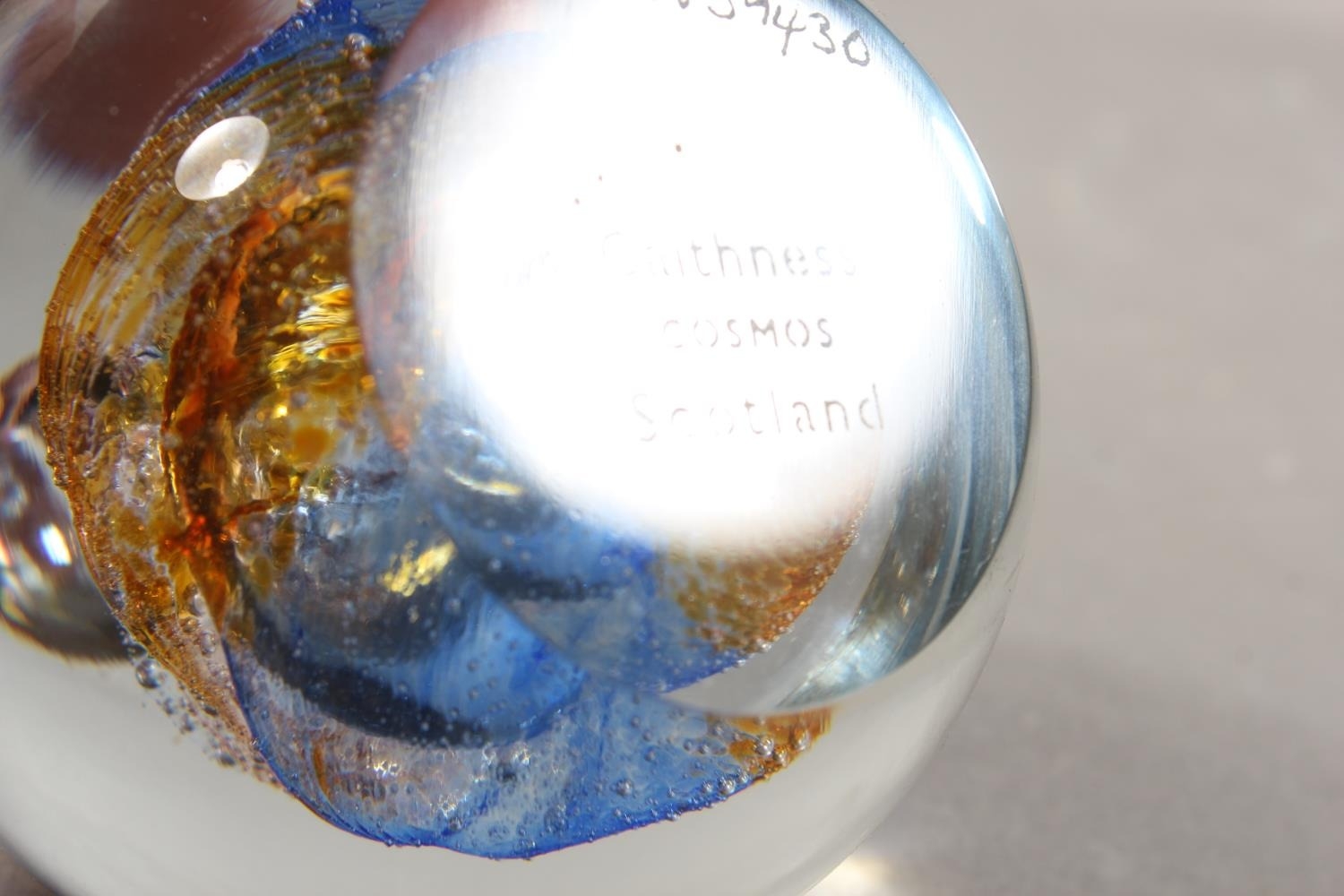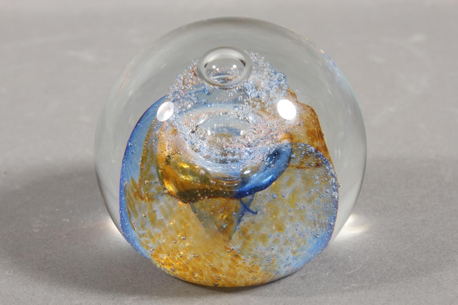 Selkirk Glass paperweight and a Caithness Glass paperweight.
