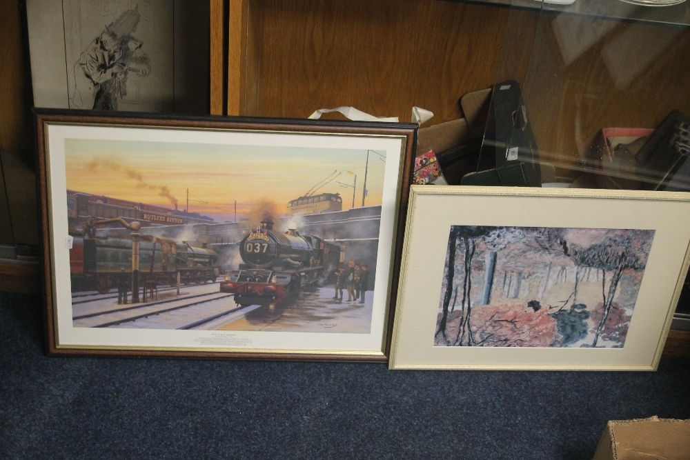 A FRAMED AND GLAZED PRINT "WOLVERHAMPTON LOW LEVEL STATION" TOGETHER WITH A COUNTRYSIDE PRINT