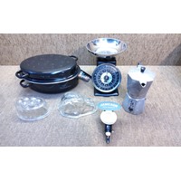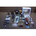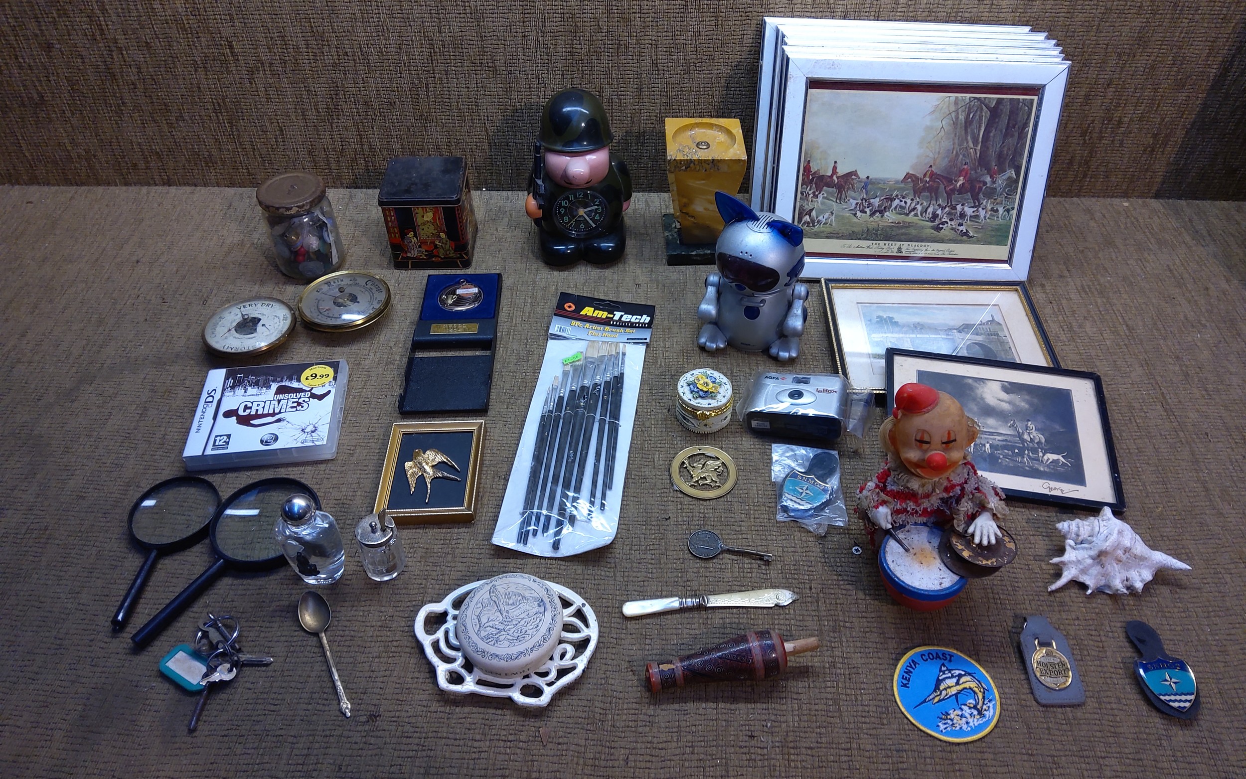 Mixed items including a retro quartz soldier alarm clock.