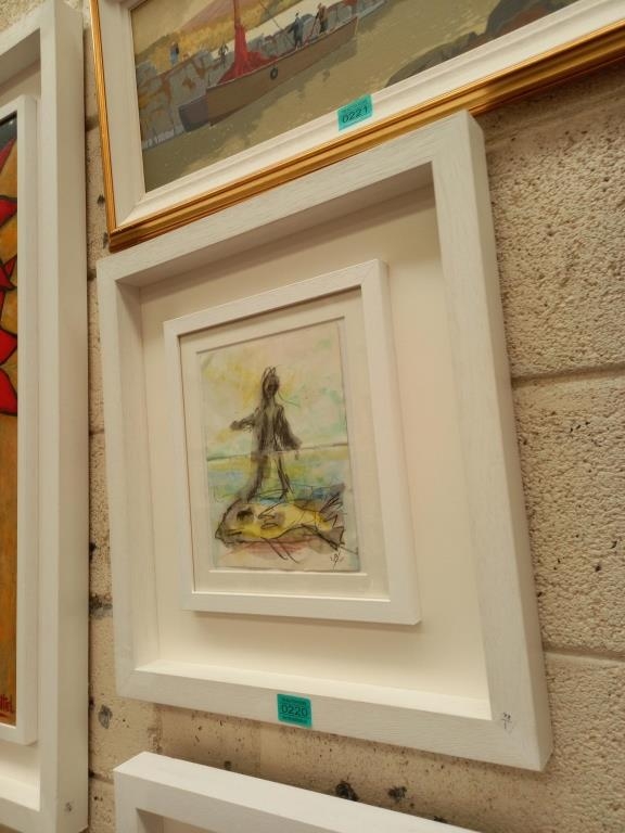 John Kingerlee "Man and Fish" Monogrammed Mixed Media on Paper (Framed 53cm x 48cm)