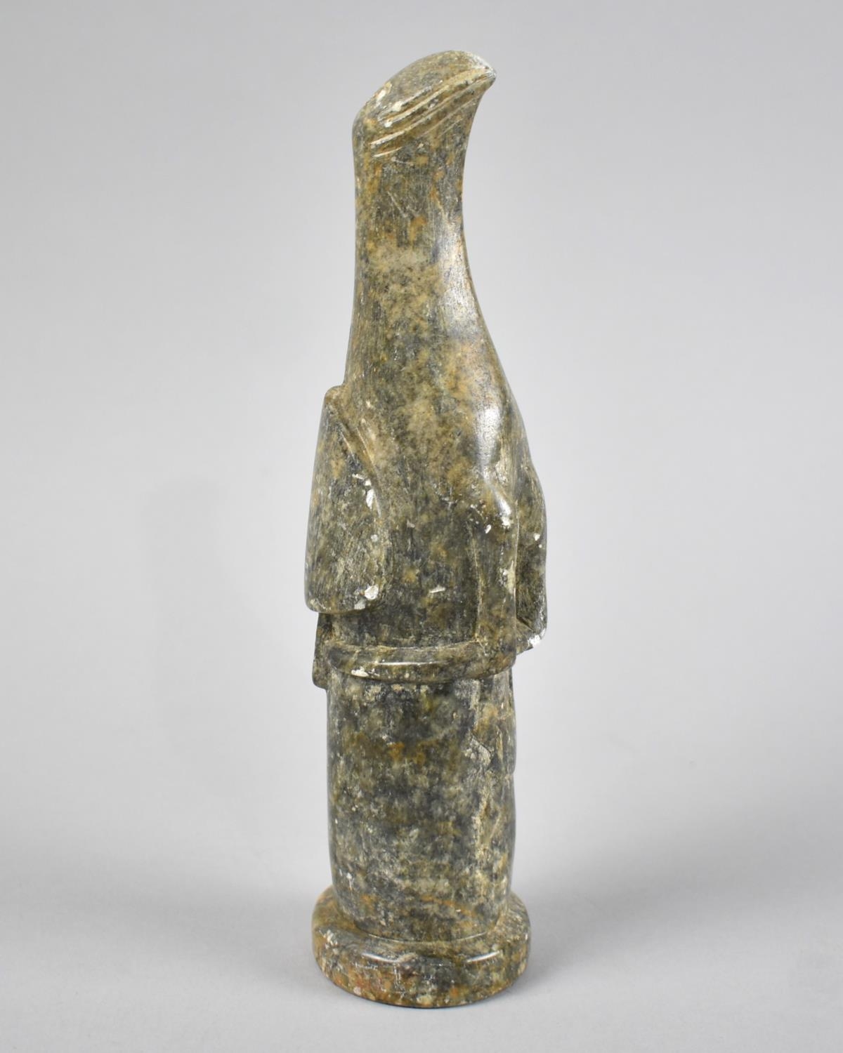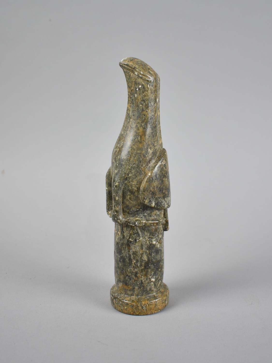 A Carved African Green Stone Zoomorphic Figure of Bird Perched on Column, 22cm High