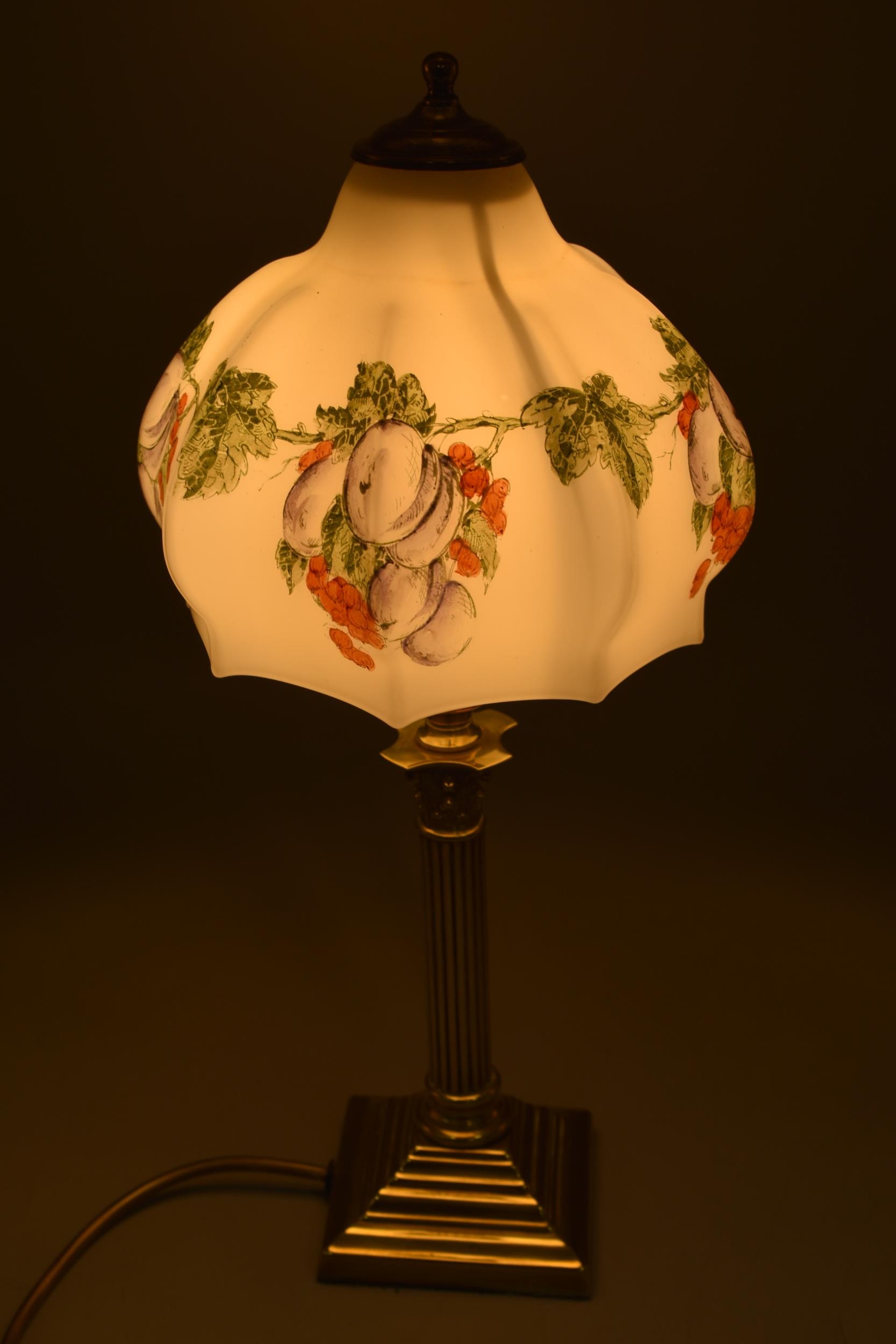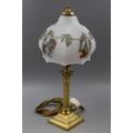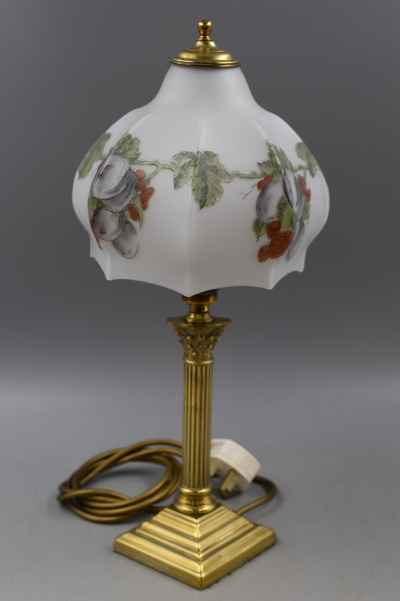 Brass Column Lamp with Milky Glass Lamp Shade working when tested approx 16"