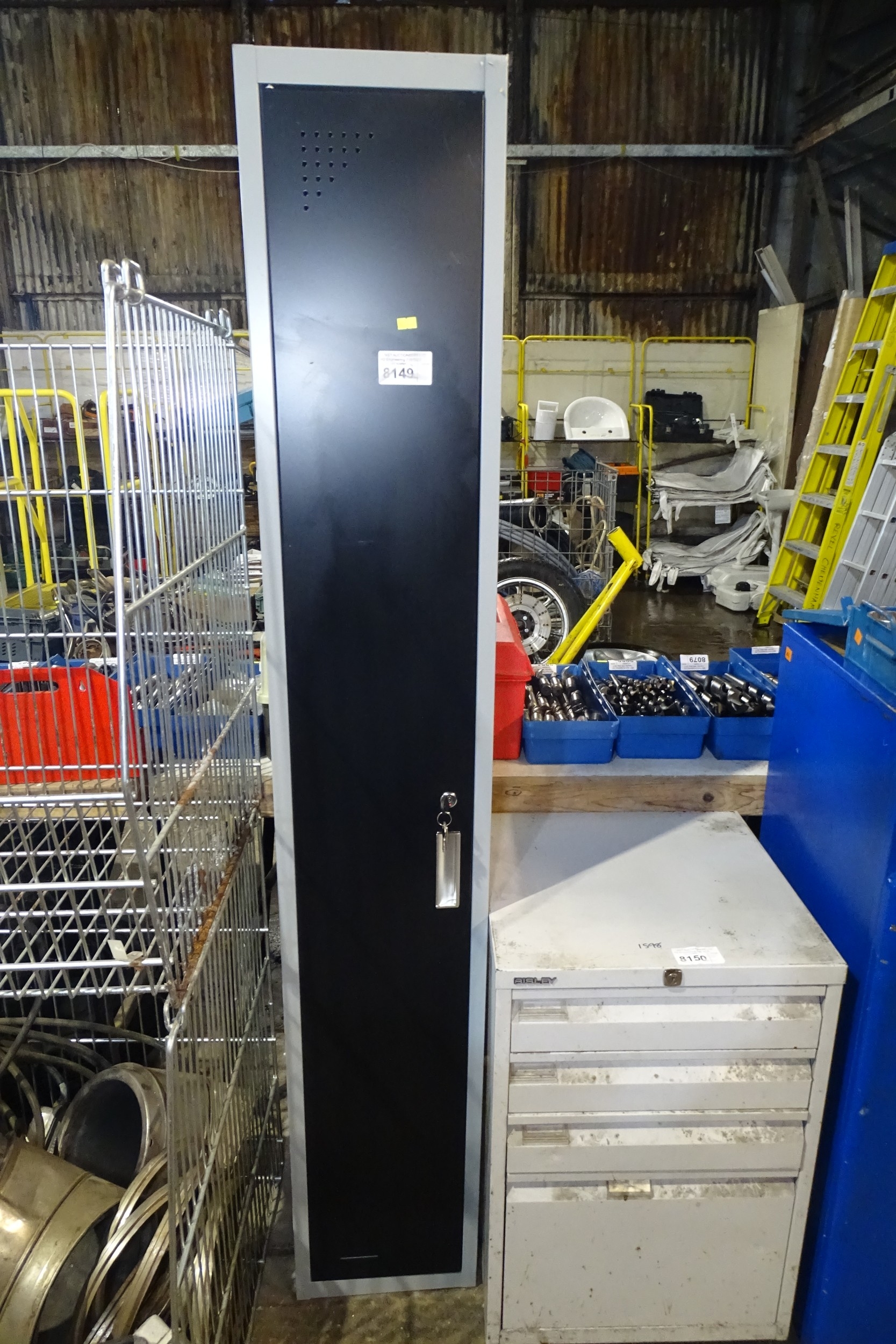 1 x Grey/Black cabinet with key approx 30cm x 30cm x 181cm h