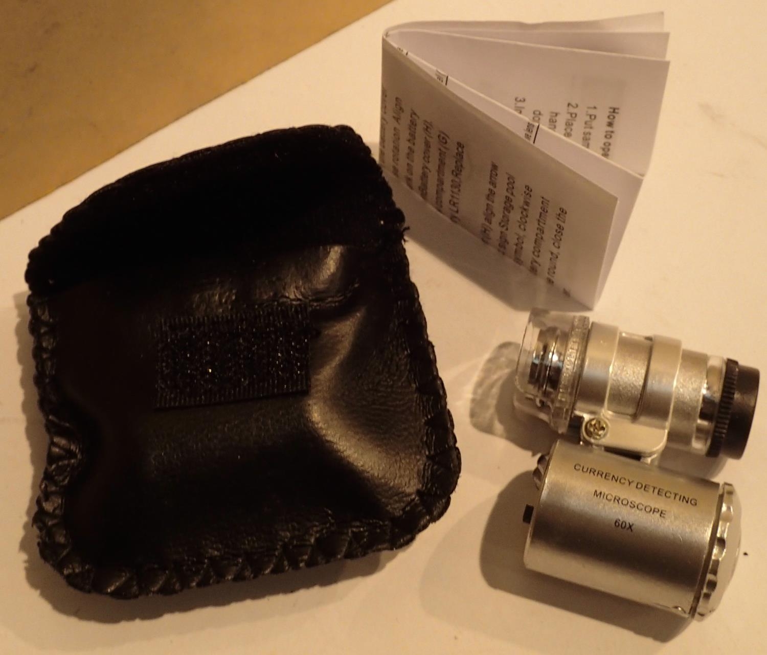 Leatherette cased 60x jewellery detaching loupe with LED. P&P Group 1 (£14+VAT for the first lot and £1+VAT for subsequent lots)