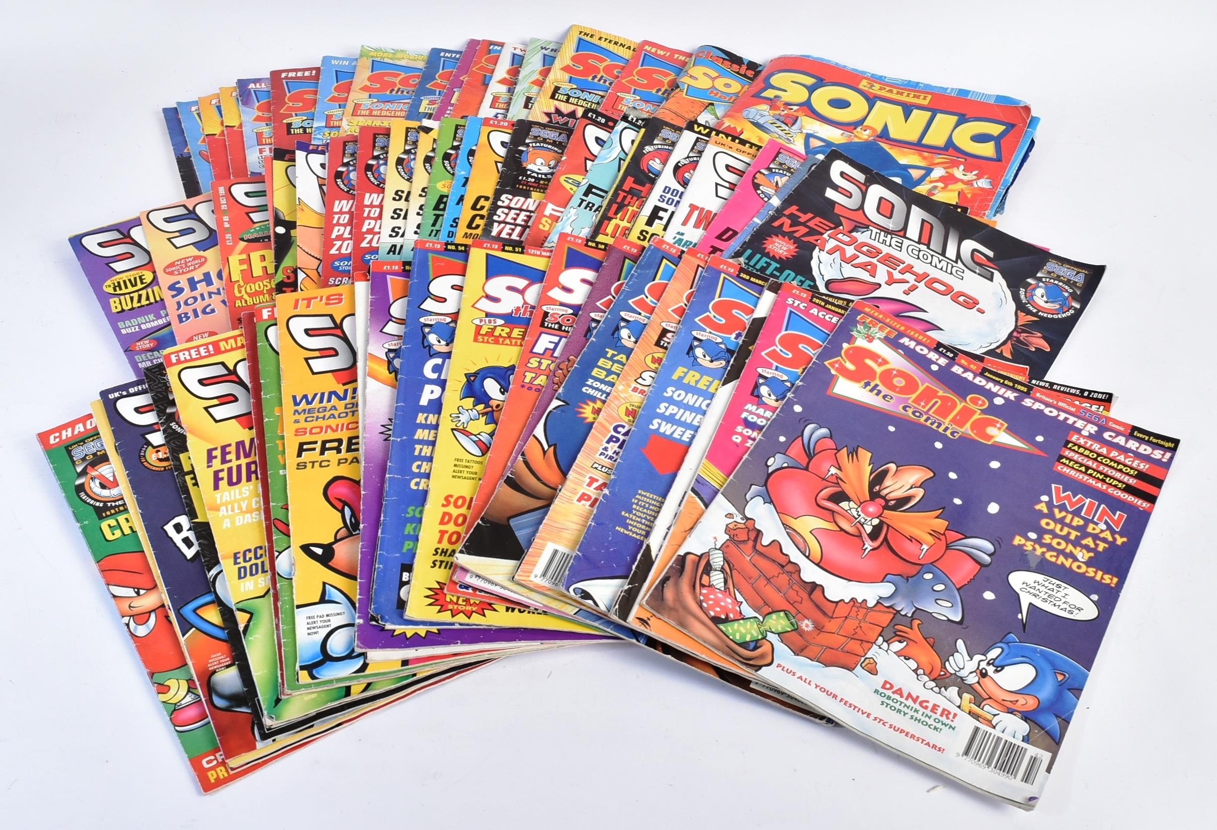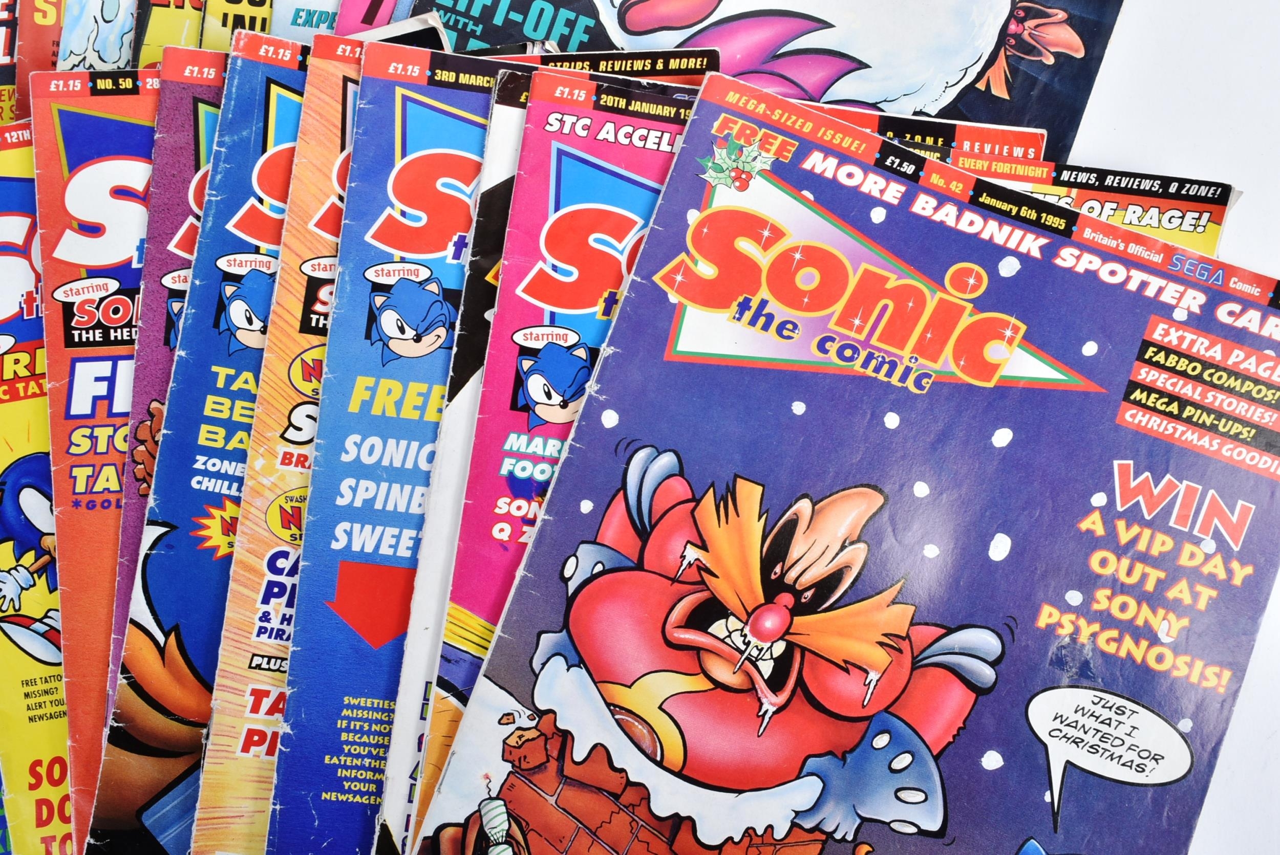 Sonic The Hedgehog - collection of vintage 1990s Sega Comics ( Fleetwood Editions ) Sonic The Hedgehog comic book magazines ranging from 1994 - 1997 along with a complete Panini sticker album. Comics featuring stories about Sonic the Hedgehog and related characters, along with news, reviews, and game tips etc.