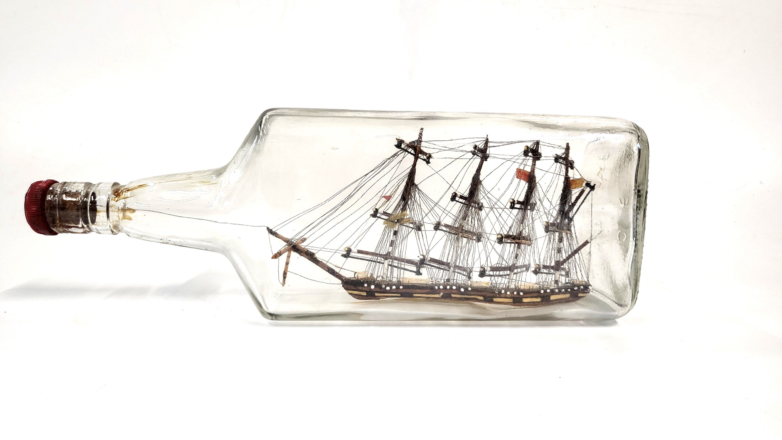 A four masted ship in a glass bottle