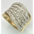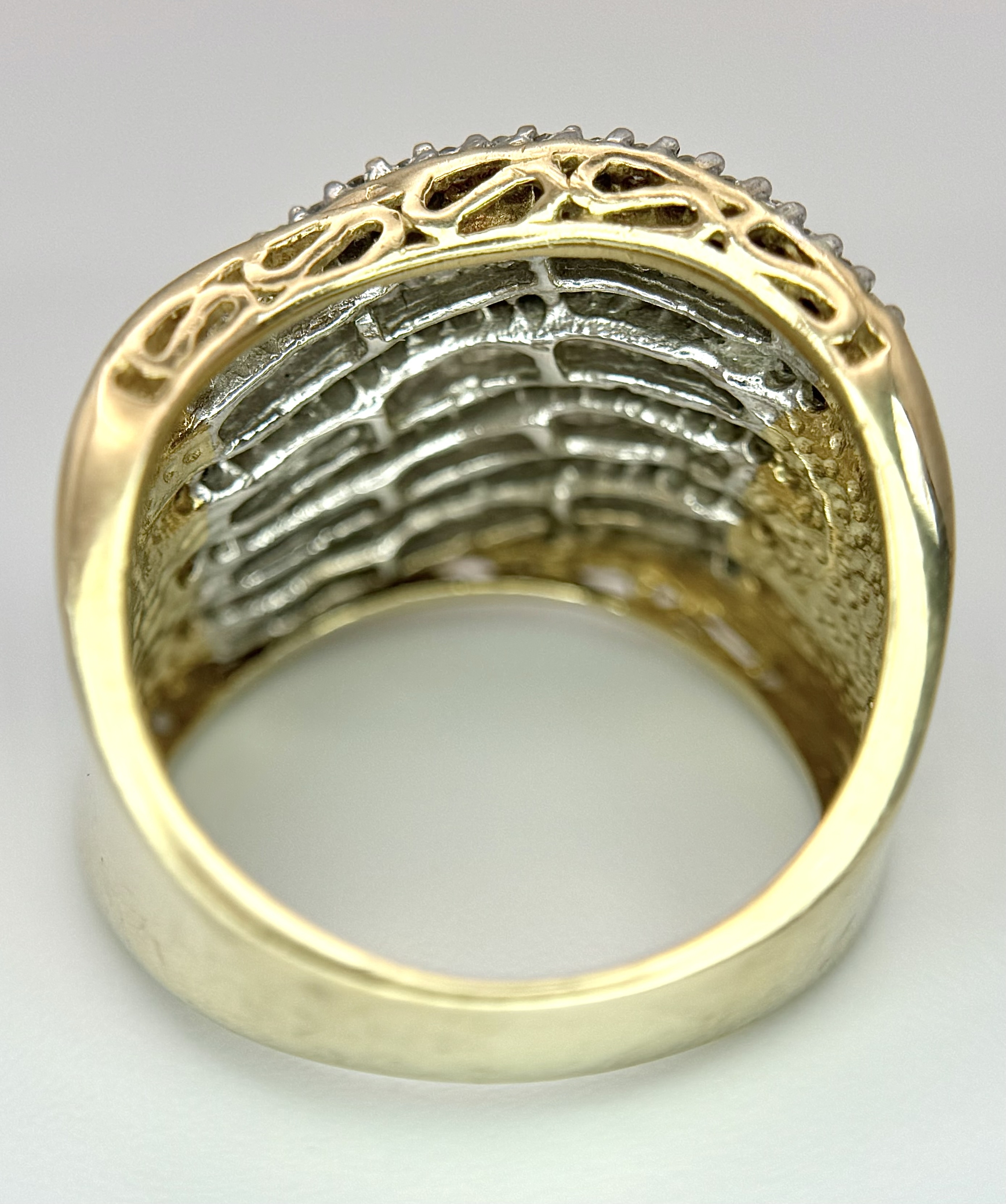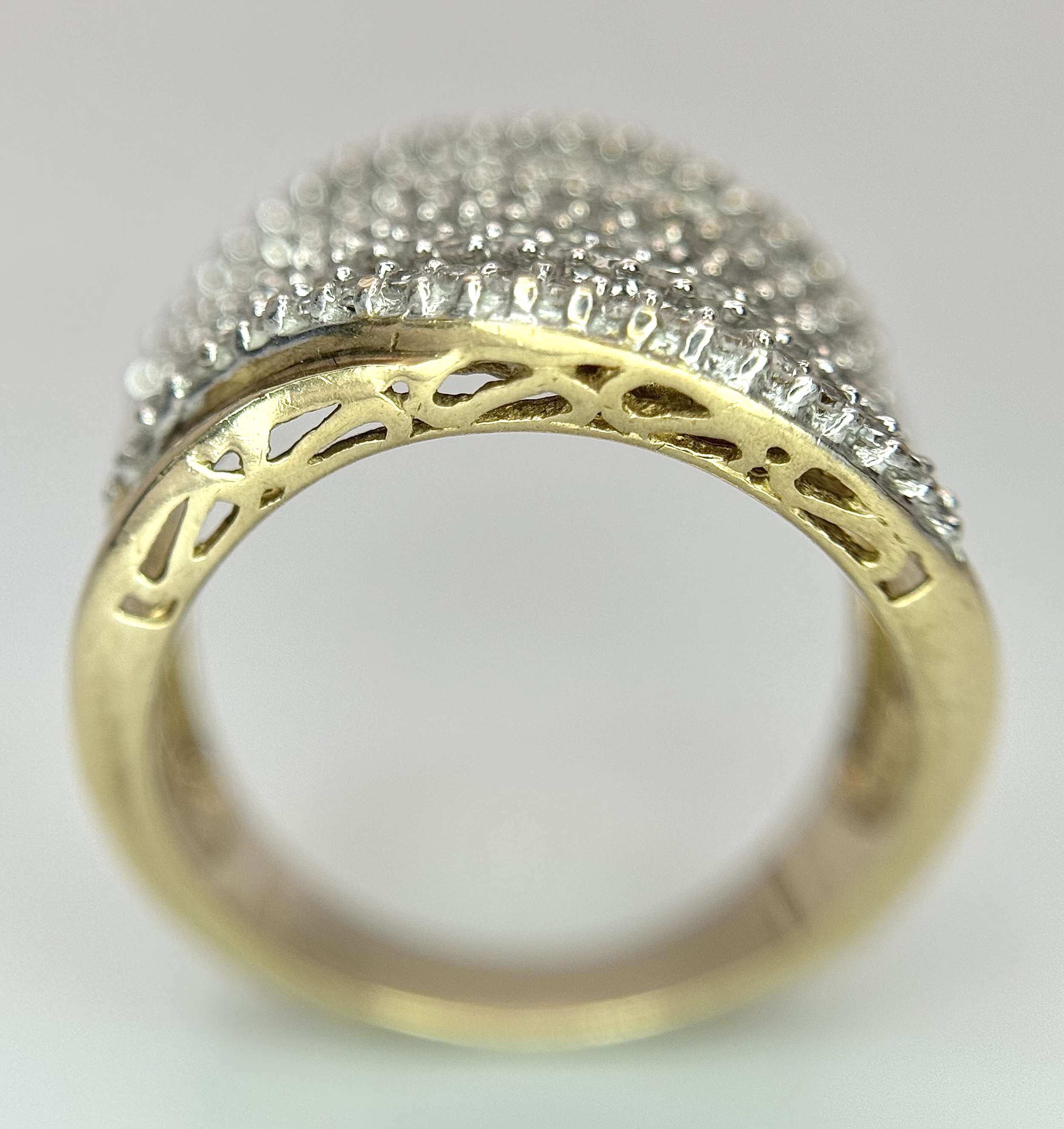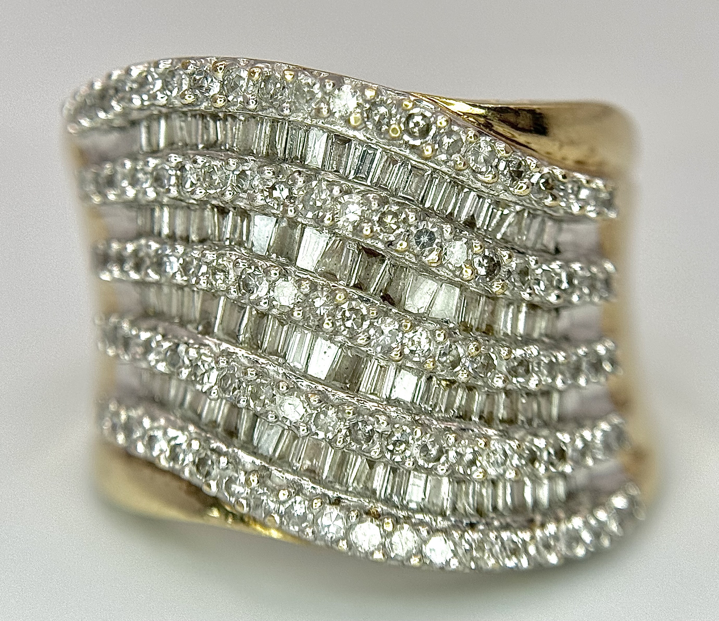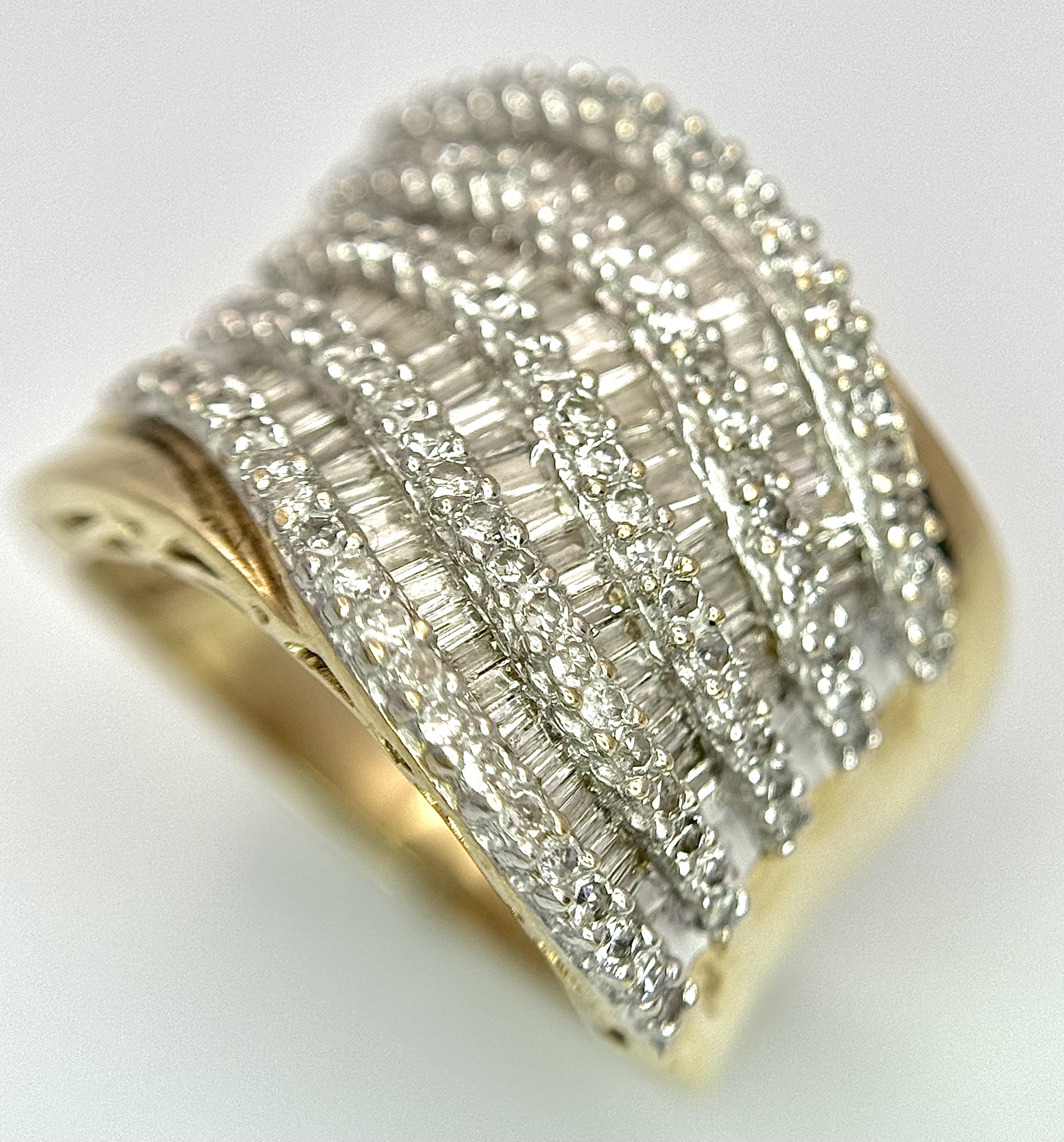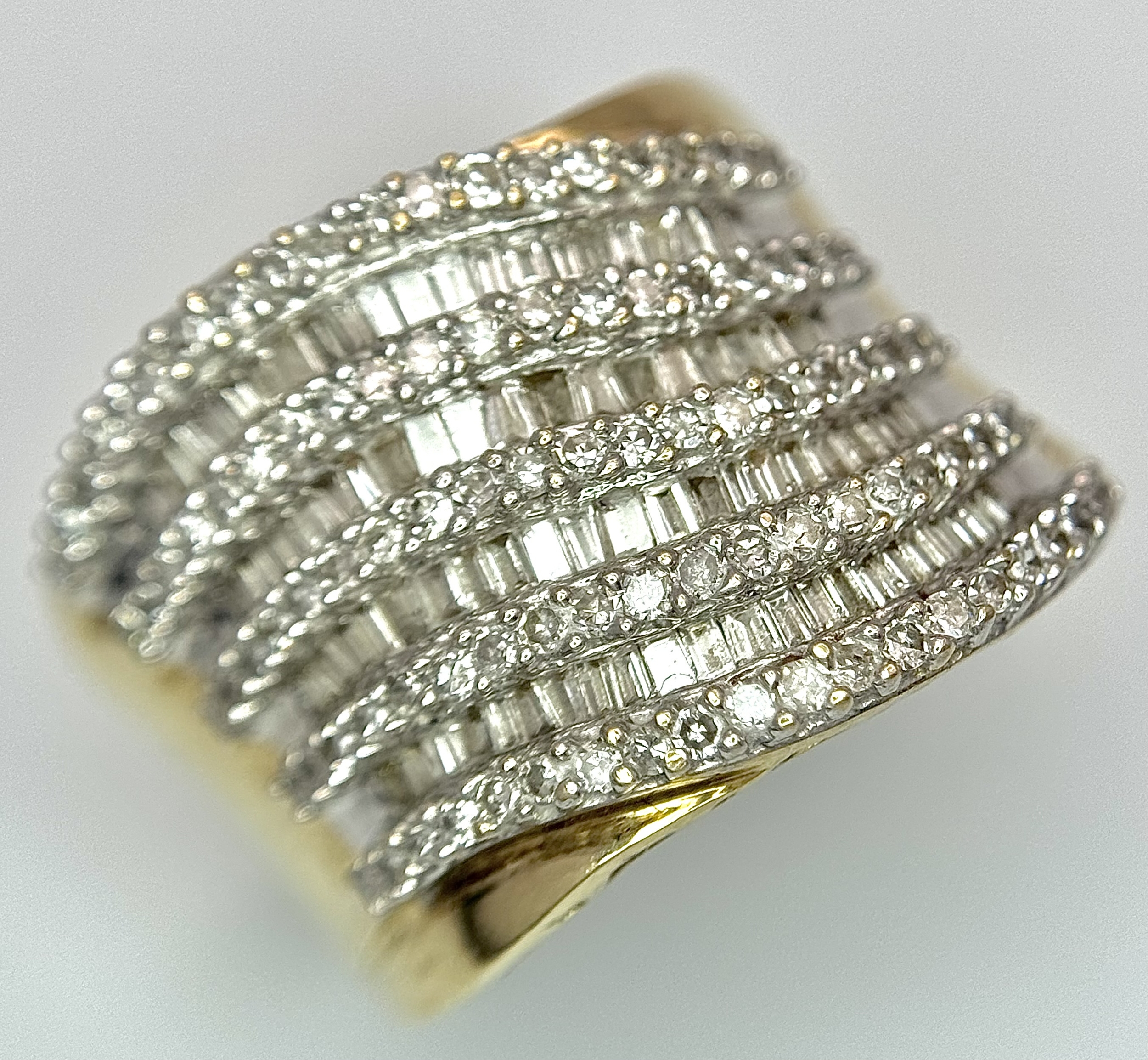 A 9K YELLOW GOLD MULTI ROW MIX CUT DIAMOND RING. 1CTW. 6.5G. SIZE M. SC7073.