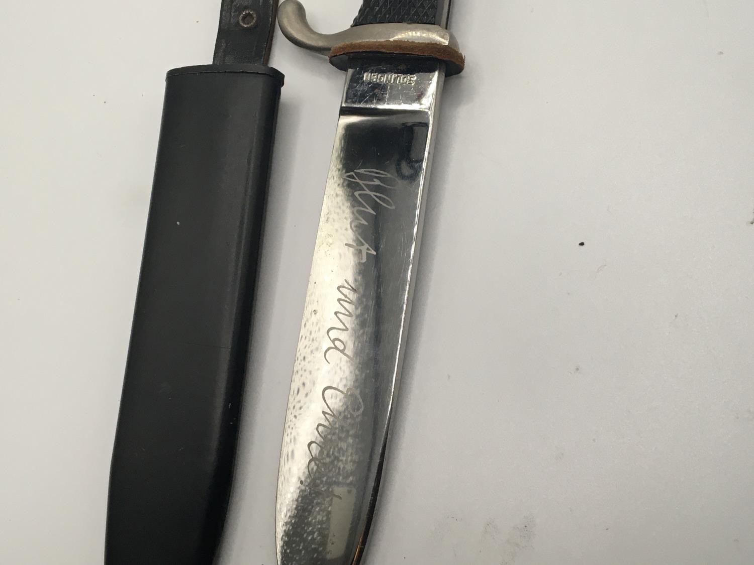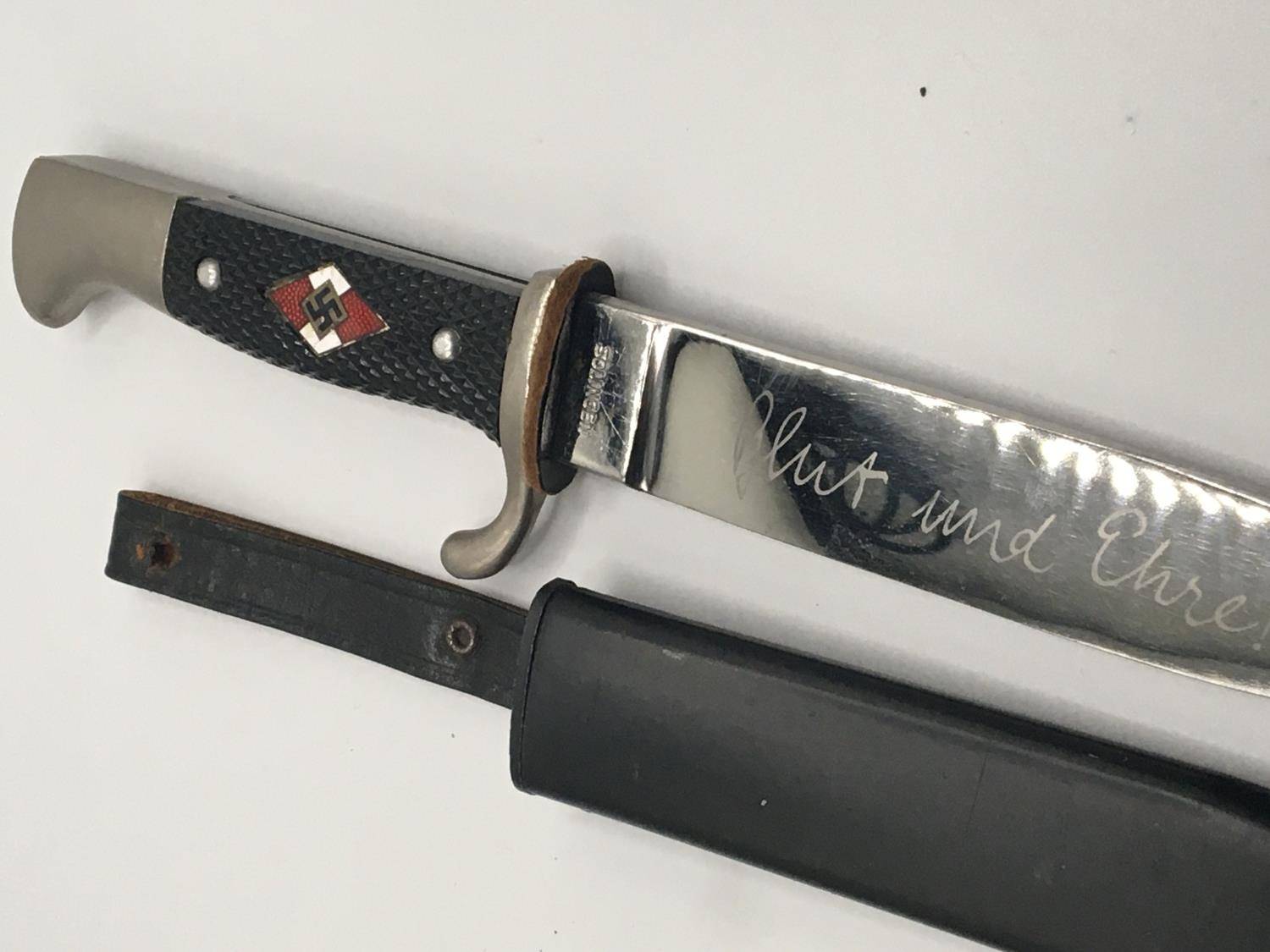 A German Third Reich Hitler Youth knife the blade with inscription.