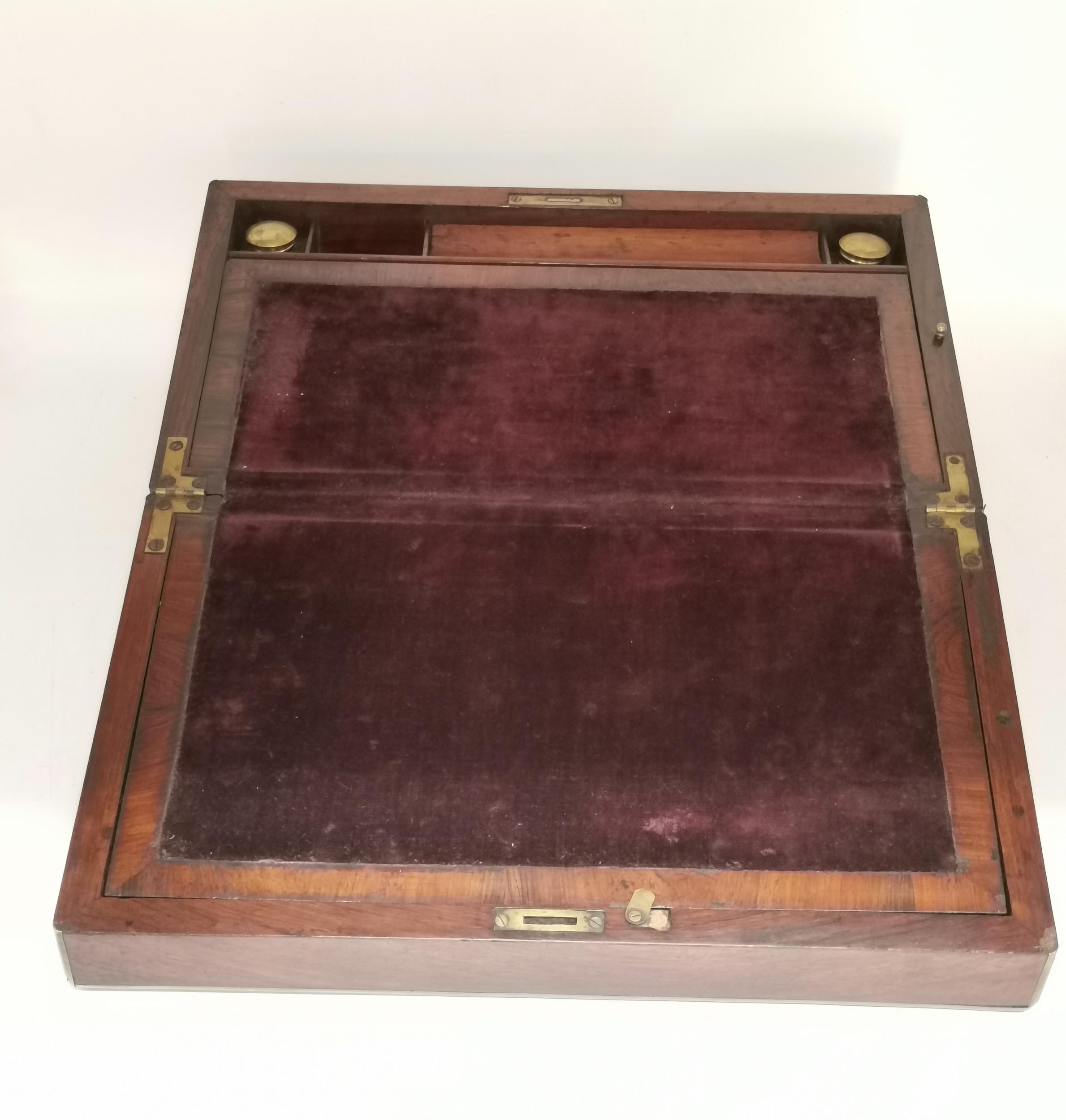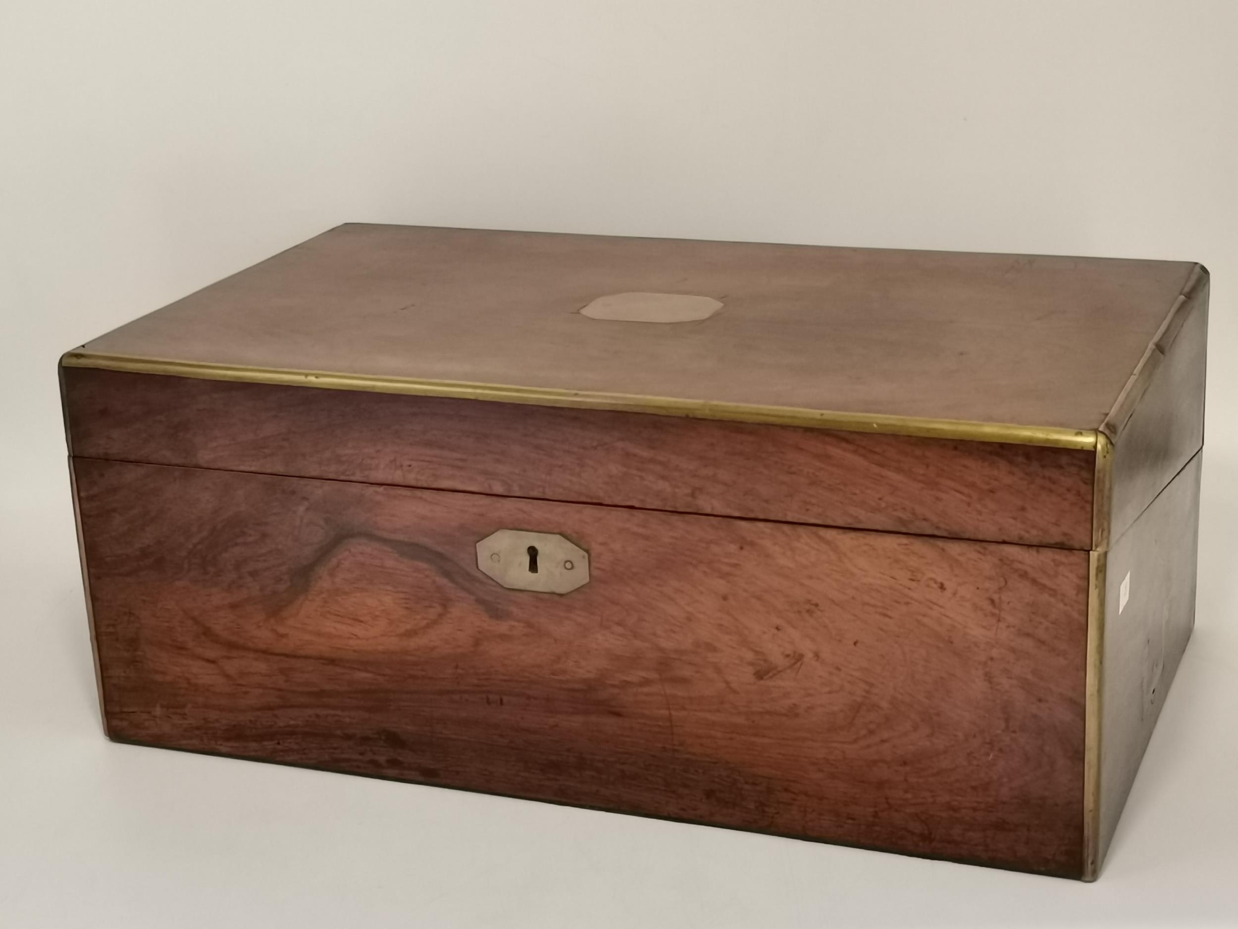 Brass bound Military writing box complete with ink bottles 47cm x 27cm