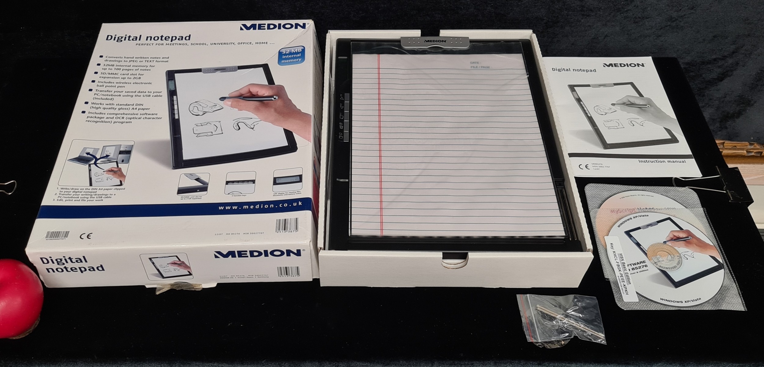 A Medion digital notepad features 32MB internal memory, DIN A4 writing pad, wireless electronic pen