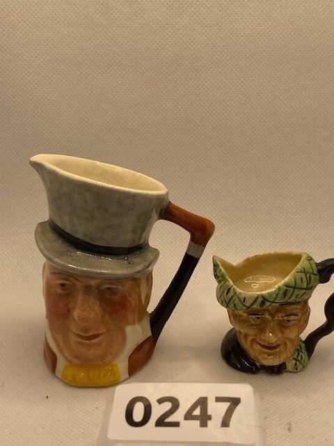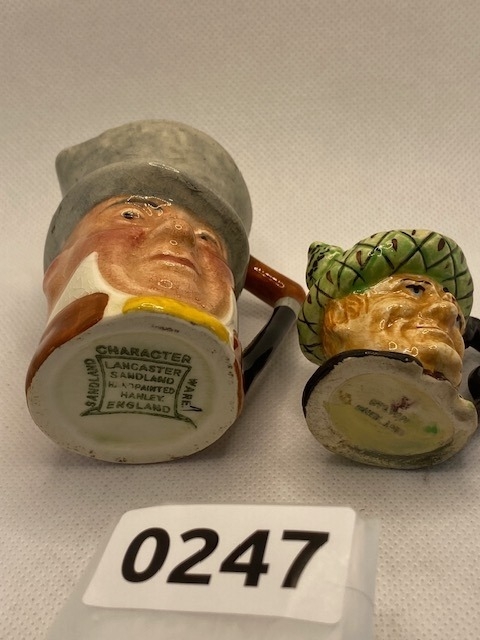 'Old Mac' miniature hand painted toby jug 4cm tall with a Mr Micawber hand painted 7.5cm small toby jug by Lancaster and Sandland, Hanley, Stoke-on-Trent 'The Potteries'