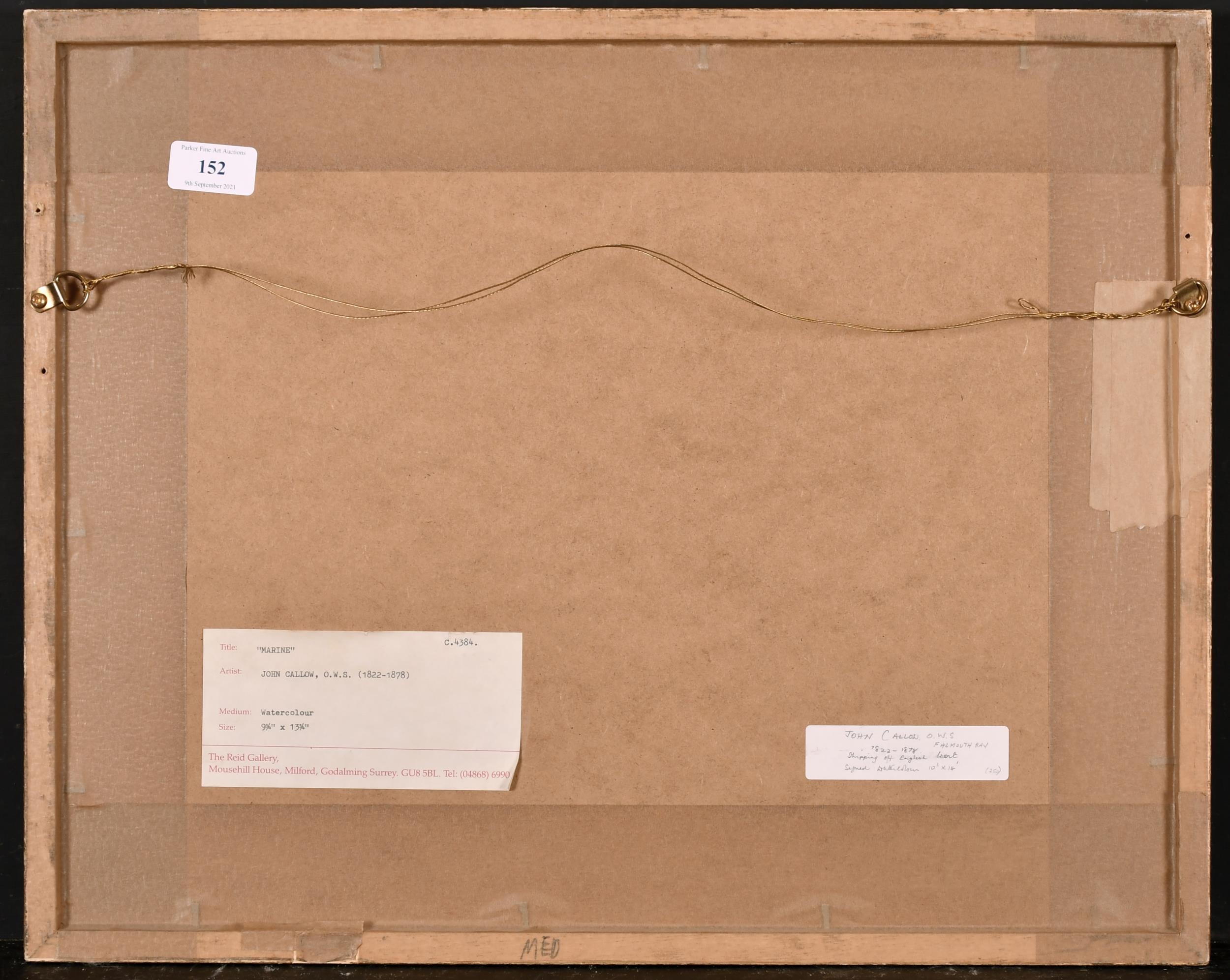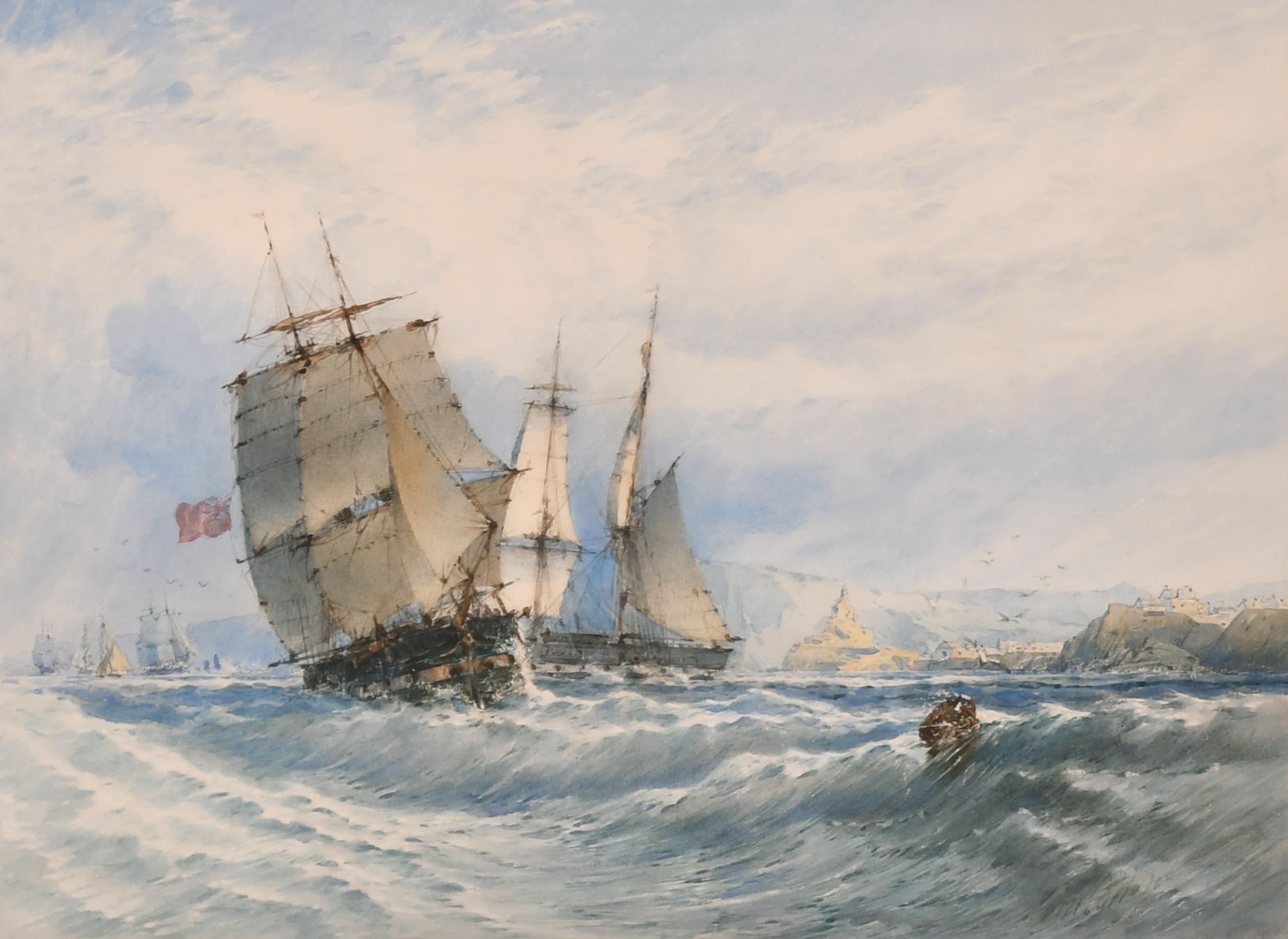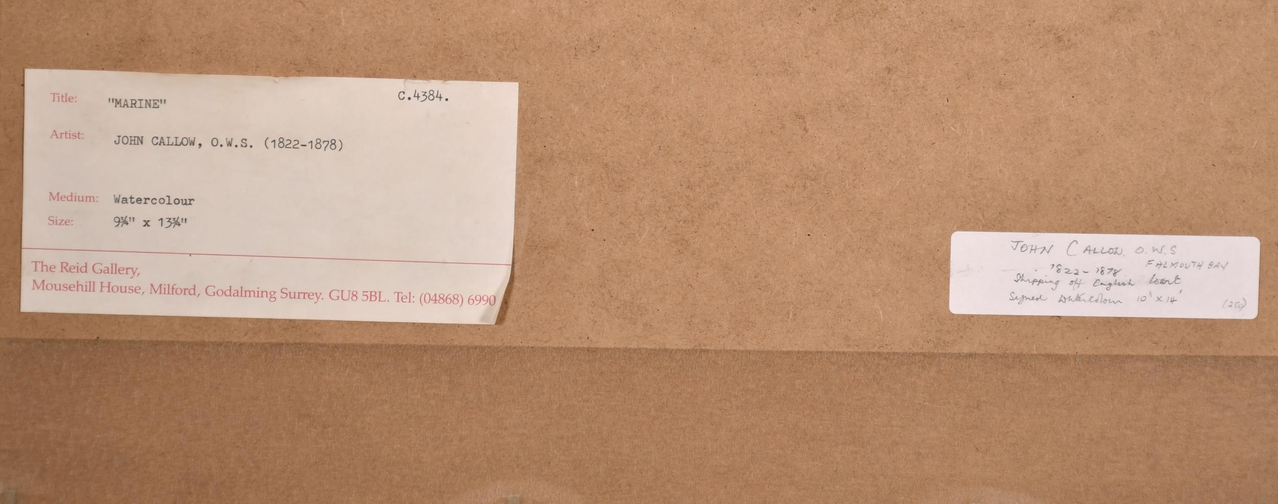 John Callow (1822-1878) British. 'Falmouth Bay', Watercolour, Signed, and Inscribed on labels verso, 9.75" x 13.75" (24.7 x 35cm). Provenance: The Reid Gallery, Surrey