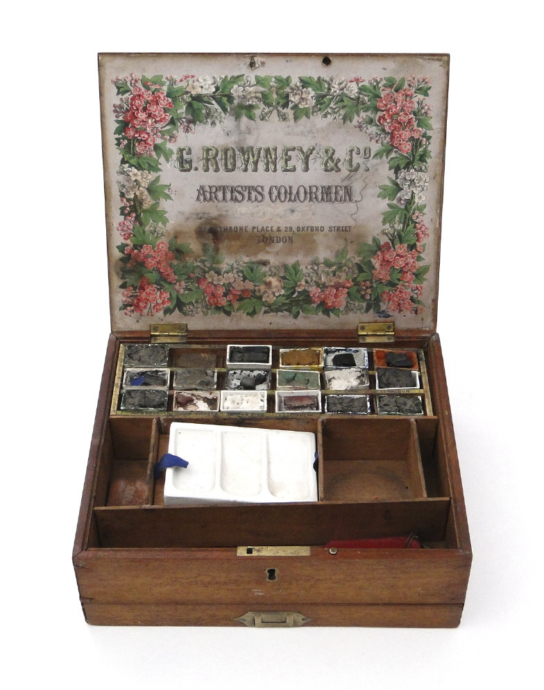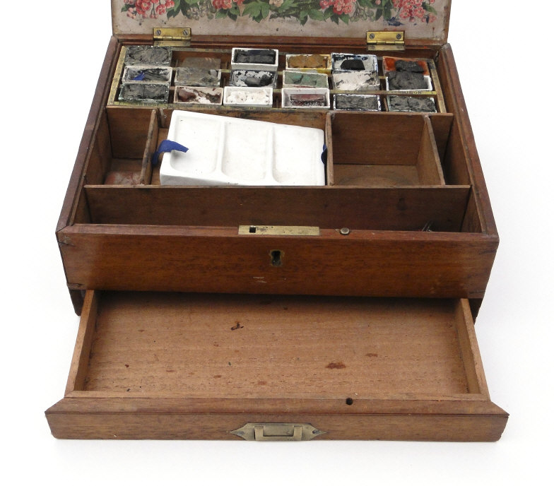 G. Rowney and Co Edwardian mahogany artist's box with label to the interior, fitted with a drawer to the base, 24cm in length