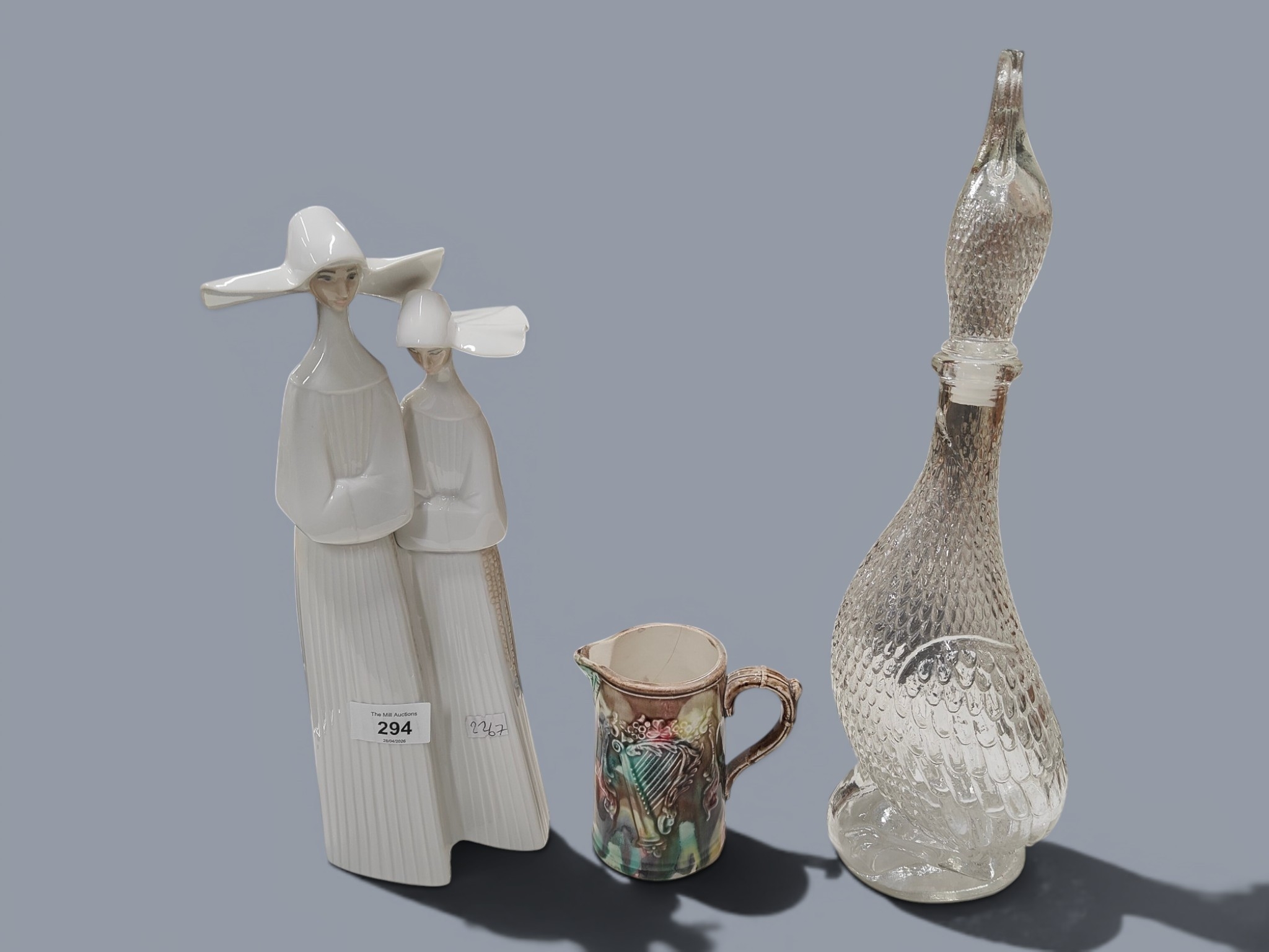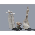 LLADRO FIGURE, GREECE DECANTER AND HARP JUG