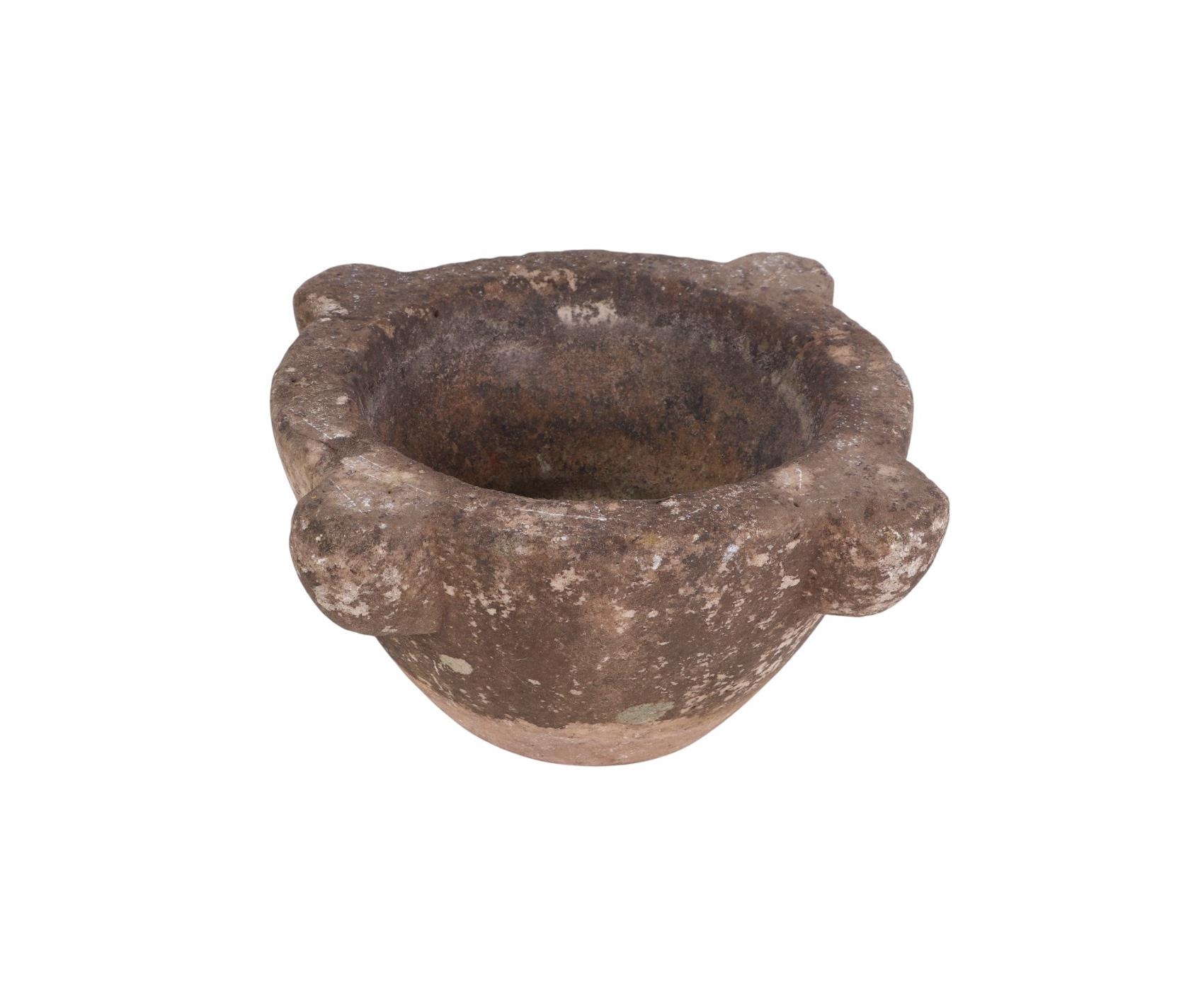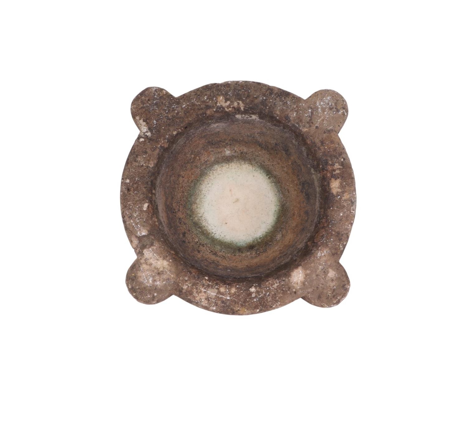 An 18th century figured white marble mortar, 32cm wide.