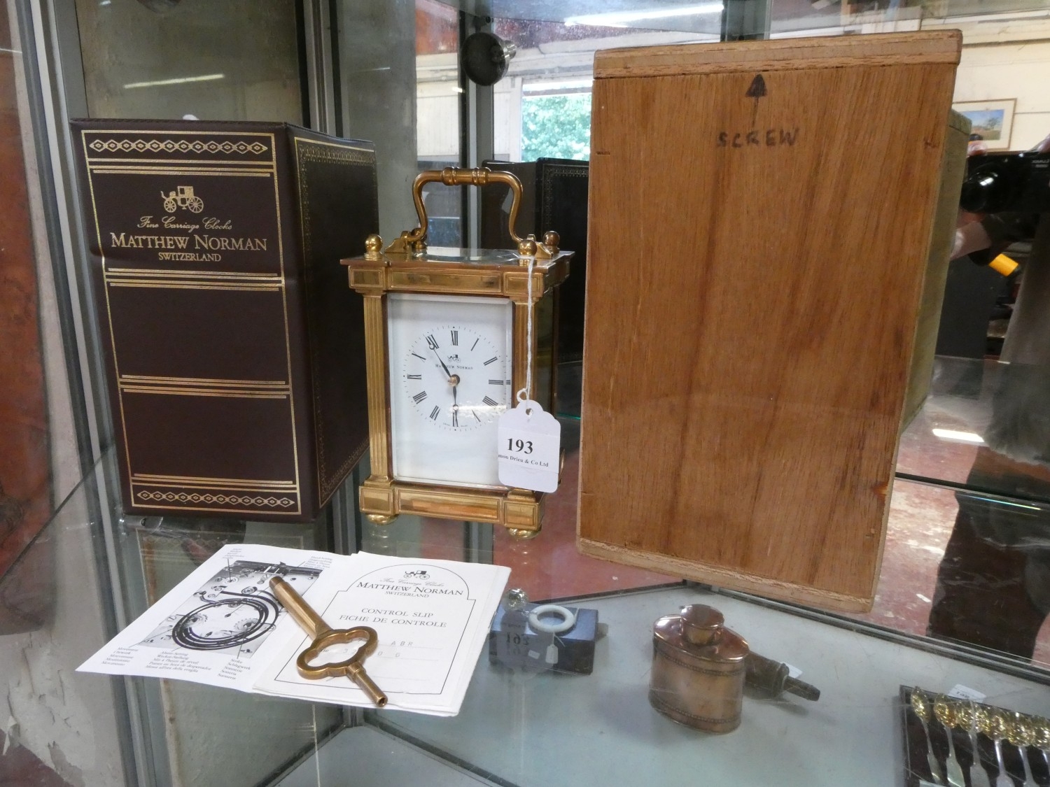 A brass cased carriage clock by Matthew Norman of Switzerland