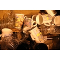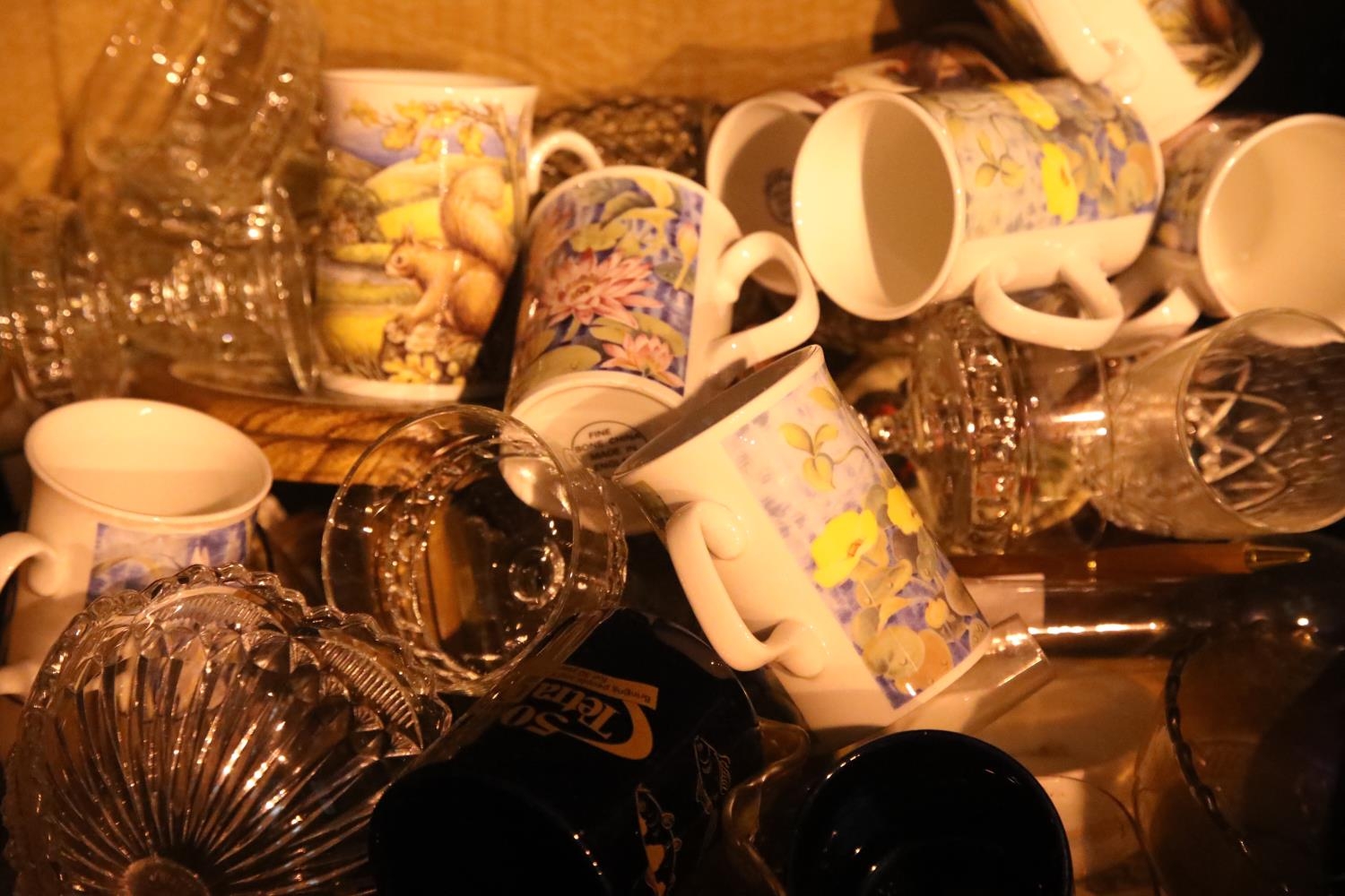 Box of mixed ceramics, glassware and treen including bowls, posey vases, glasses etc. Not available for in-house P&P