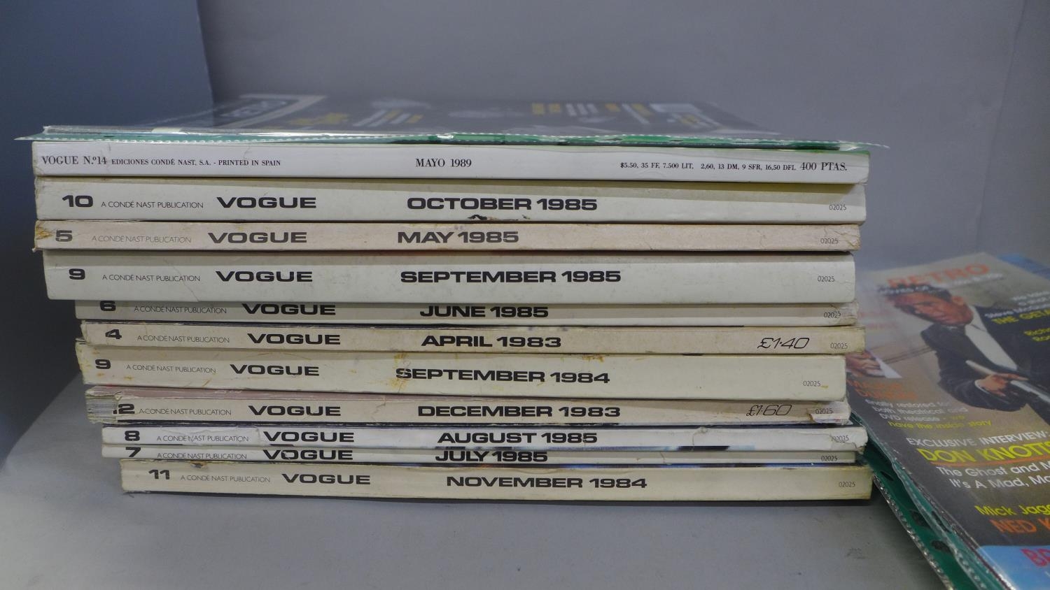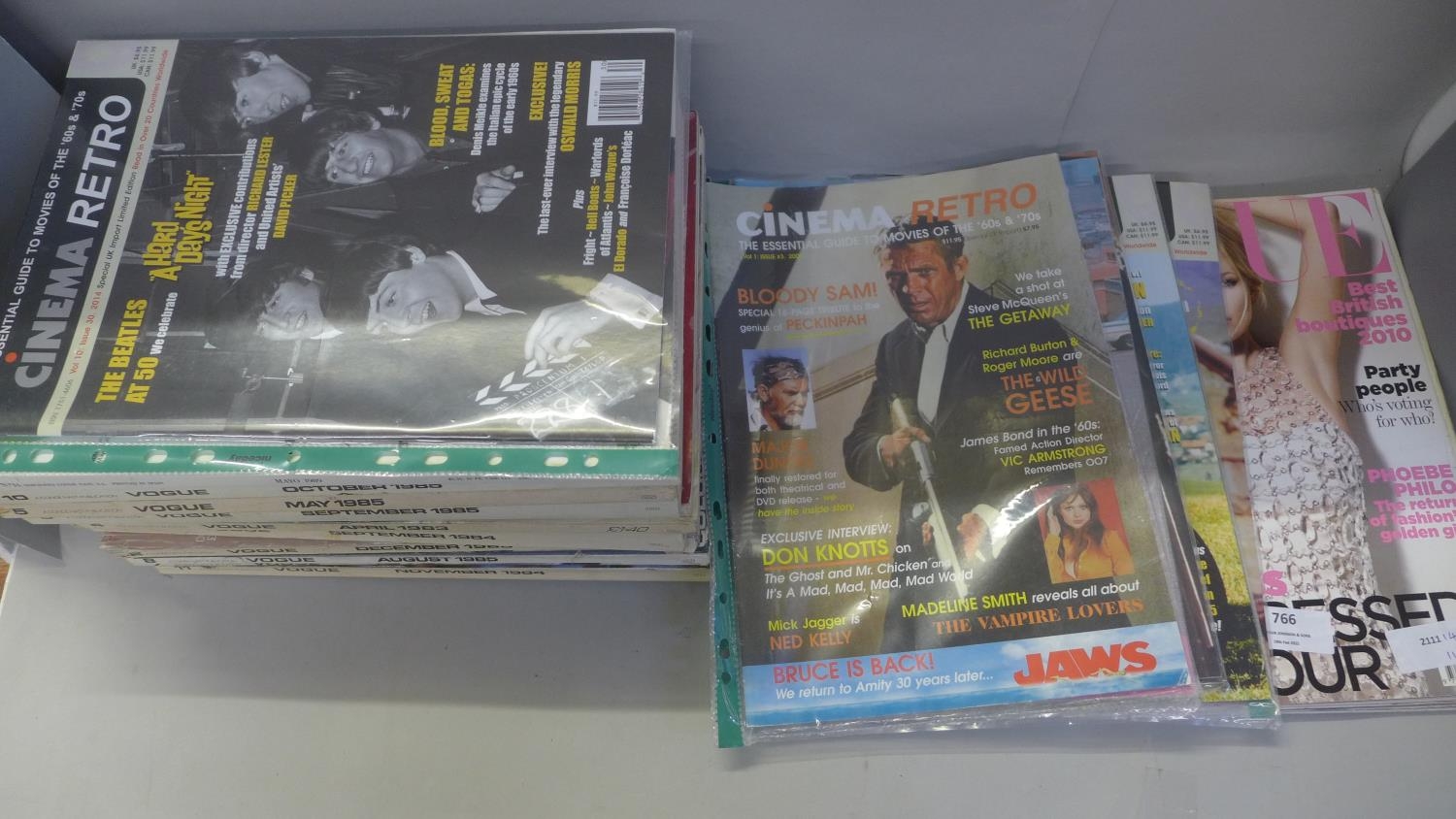 A collection of Vogue magazines, eleven from 1980's, one 2010 Kate Moss cover and six special UK limited edition Cinema Retro magazines