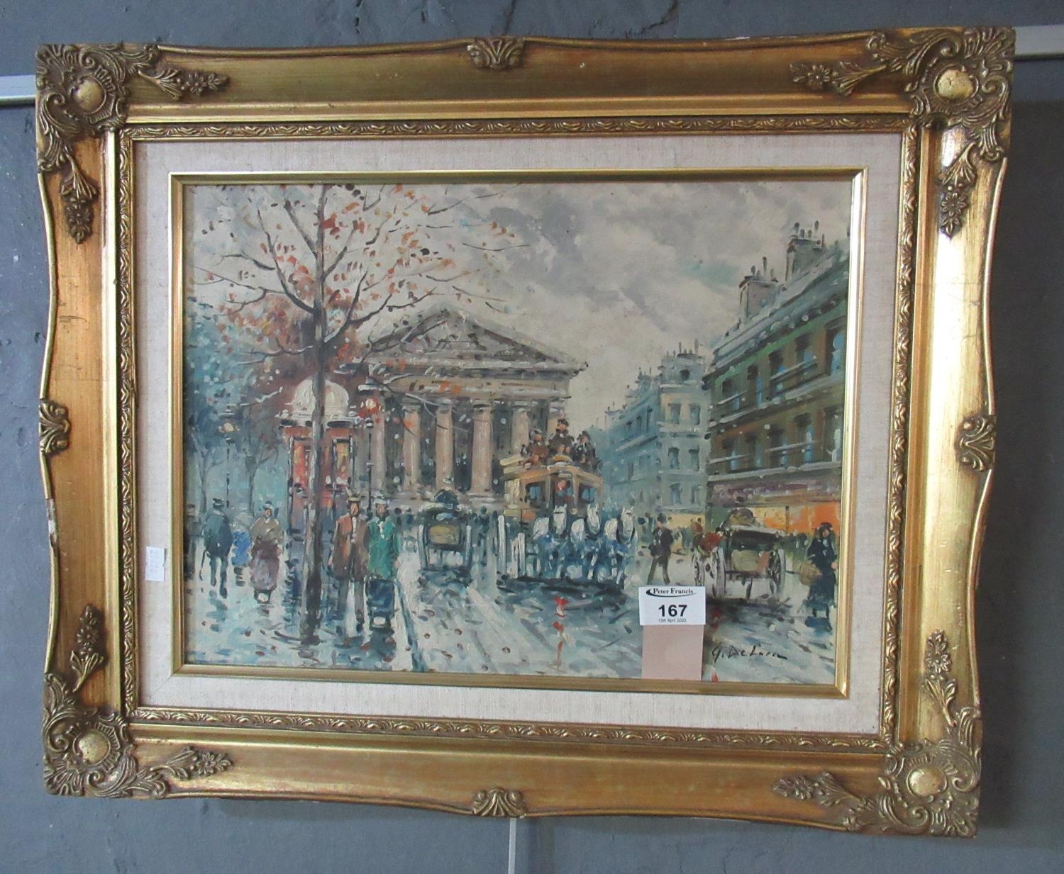 Giuliano de Luca, (Italian School, born 1947) Roman street scene in autumn, (indistinctly signed), oils on canvas. 31x40 cm approx. - gilt frame.