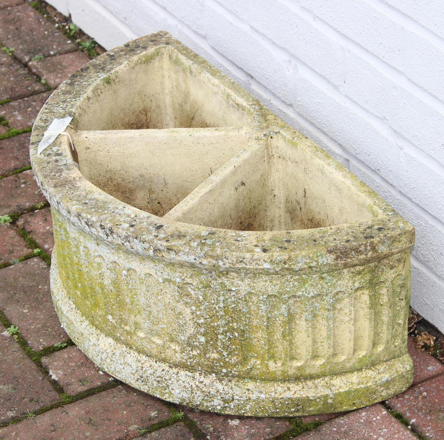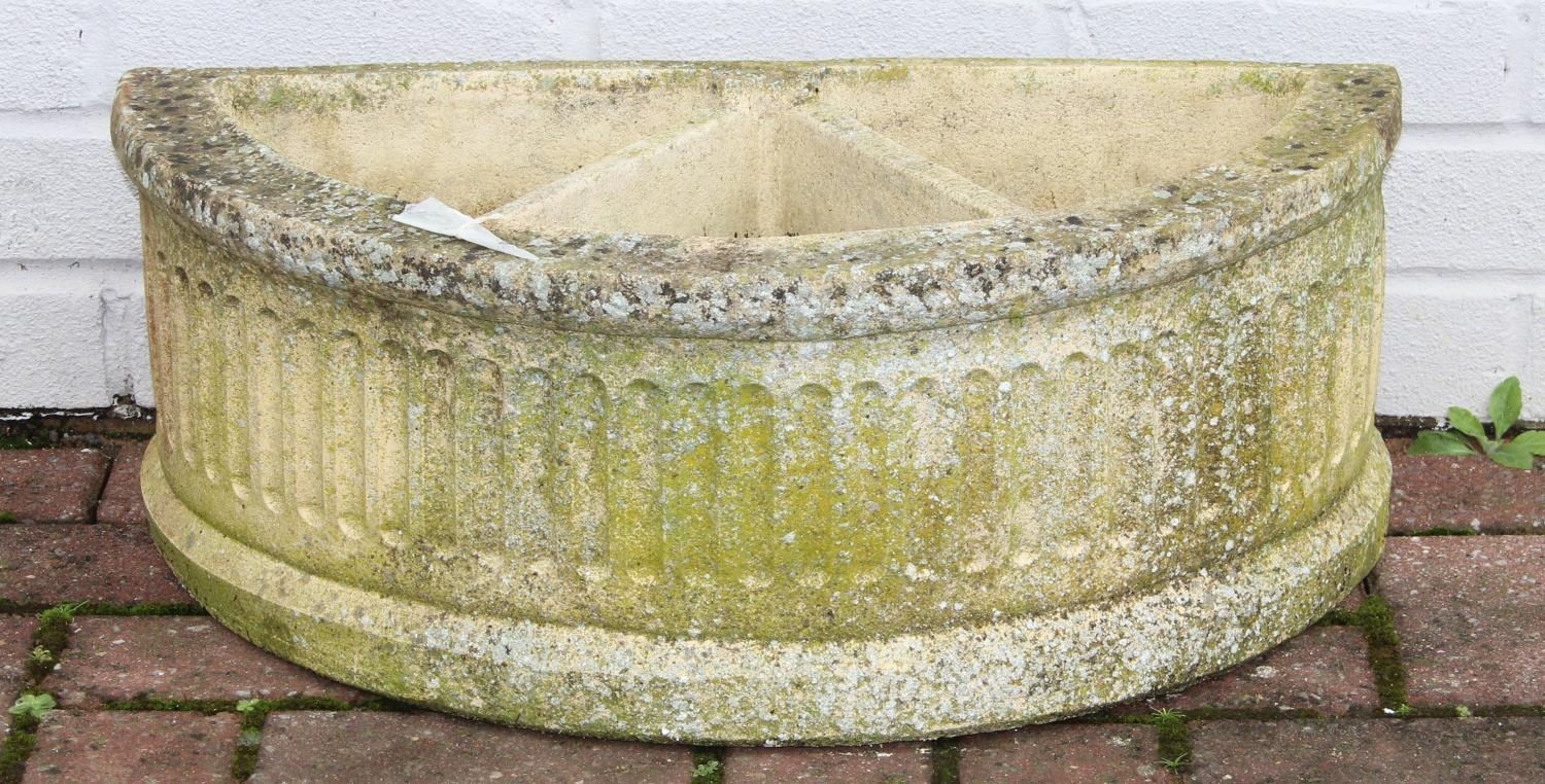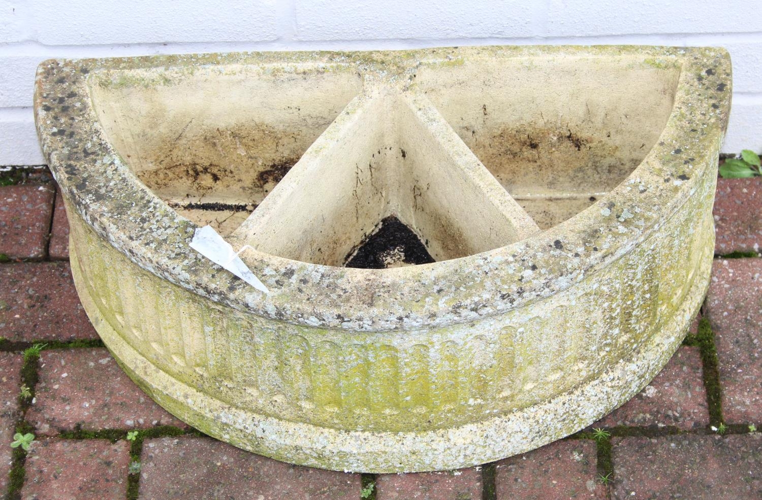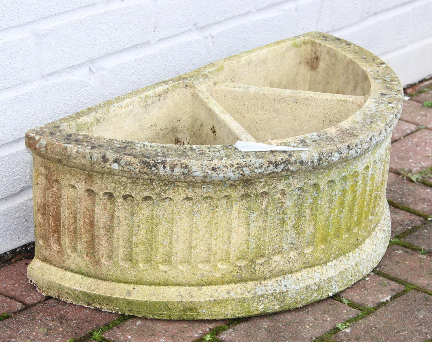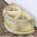 Stone effect concrete demi lune planter, 60cm x 30cm x 22cm