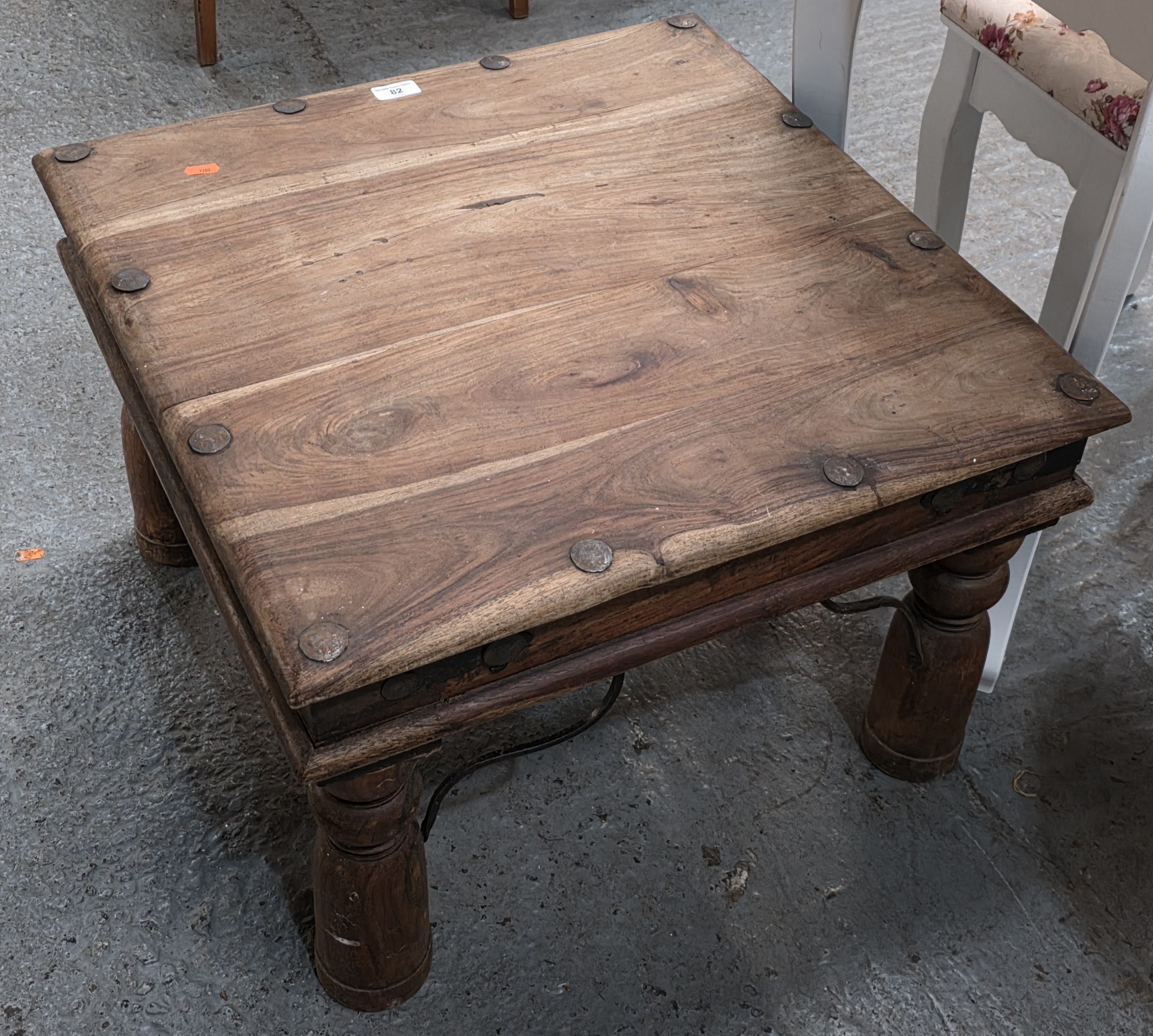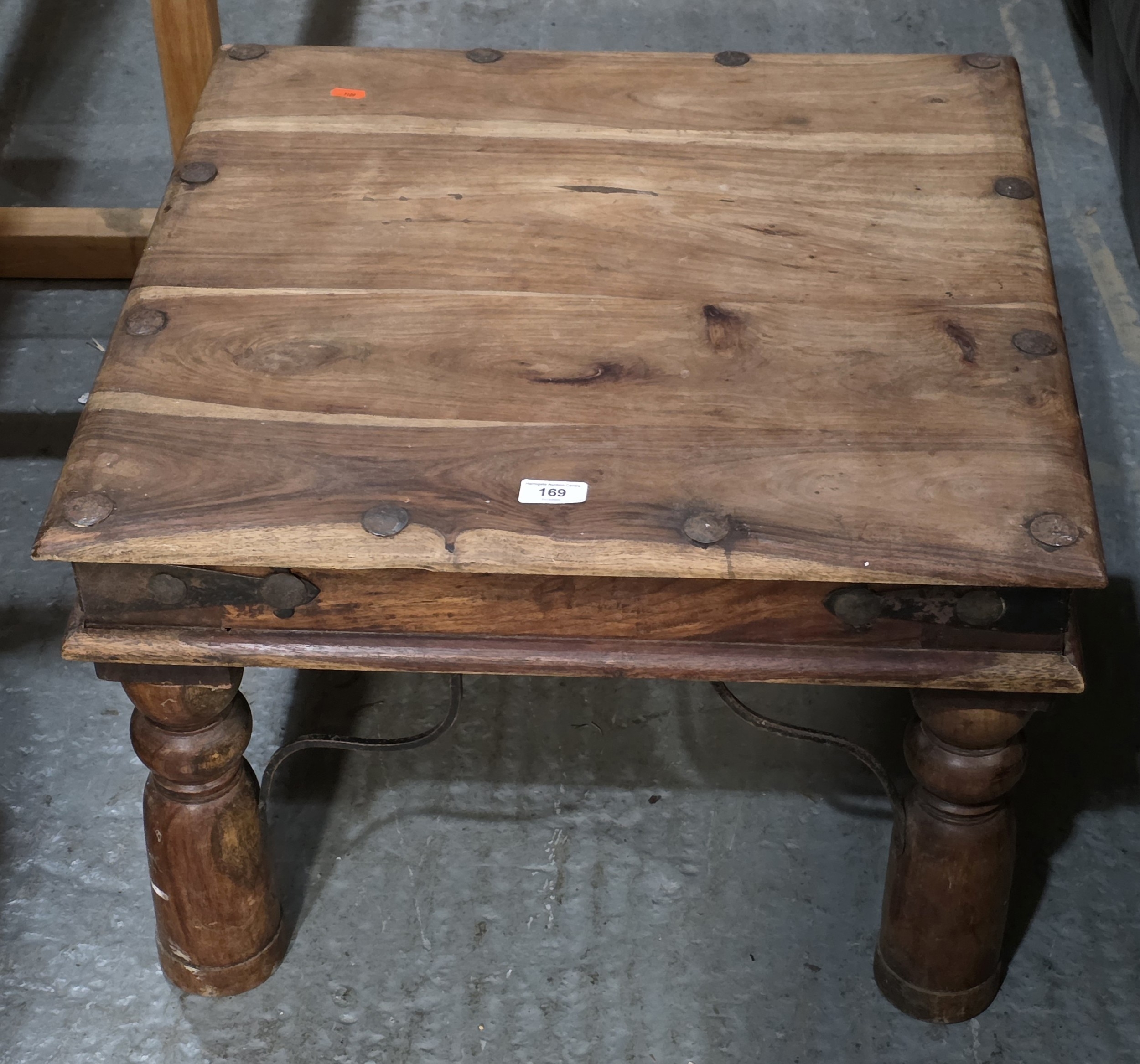 MANGO WOOD COFFEE TABLE WITH WROUGHT IRON RIVET FEATURES