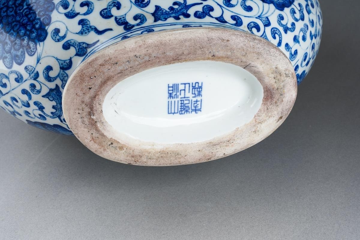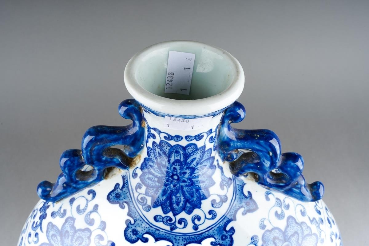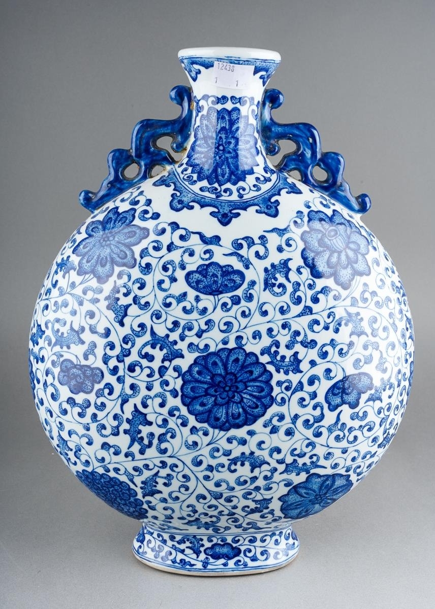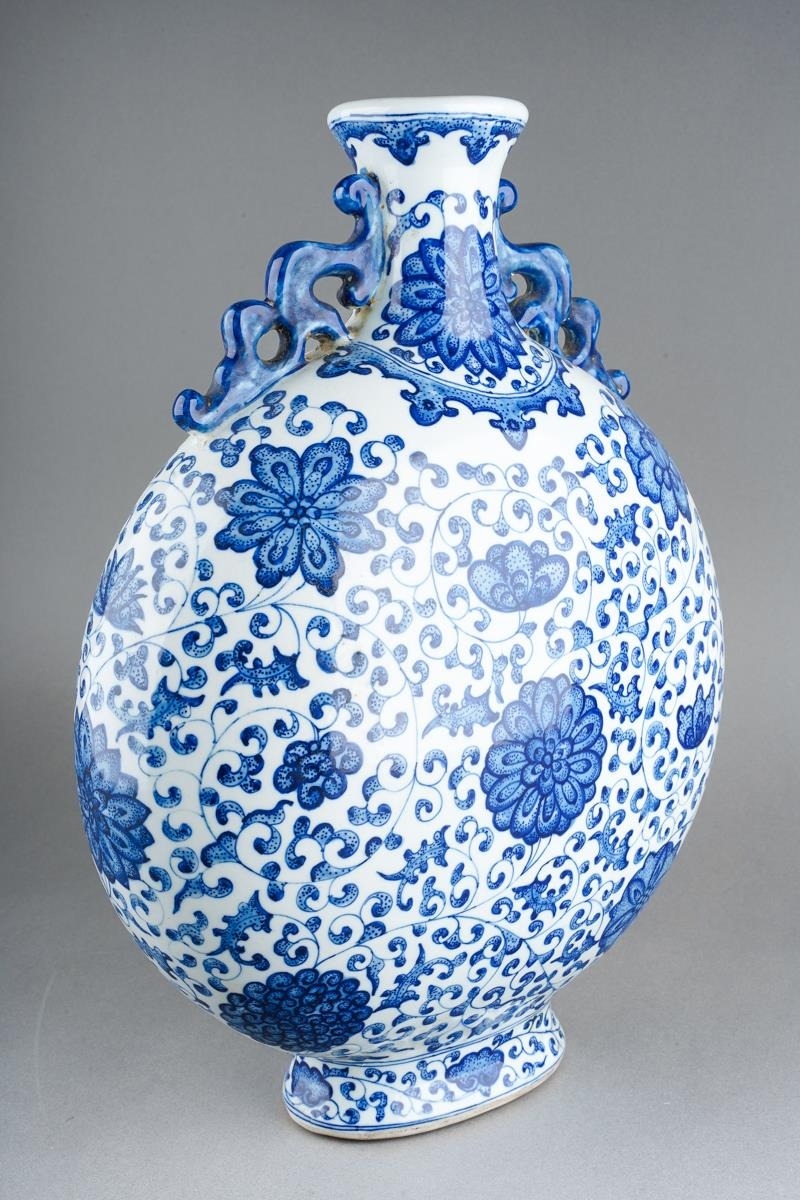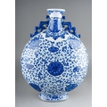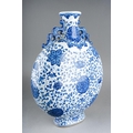 A Chinese two handled blue and white moon flask decorated with flowers, approx 36cm high [1]