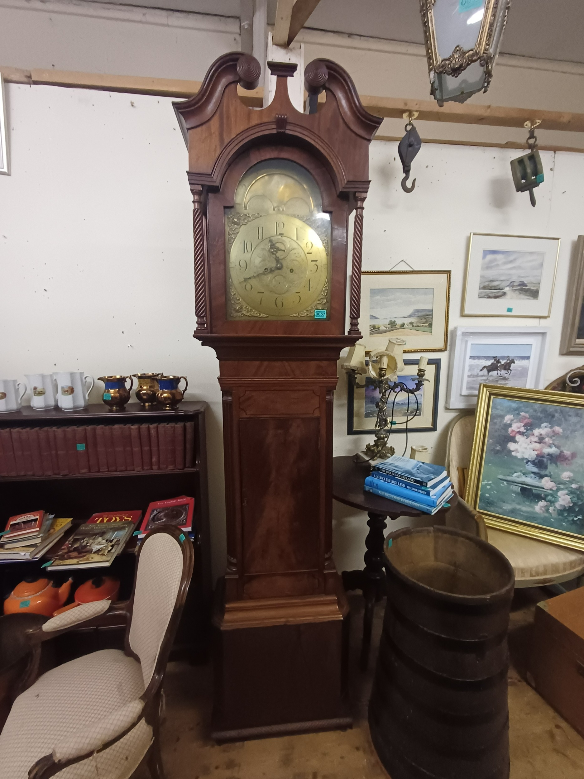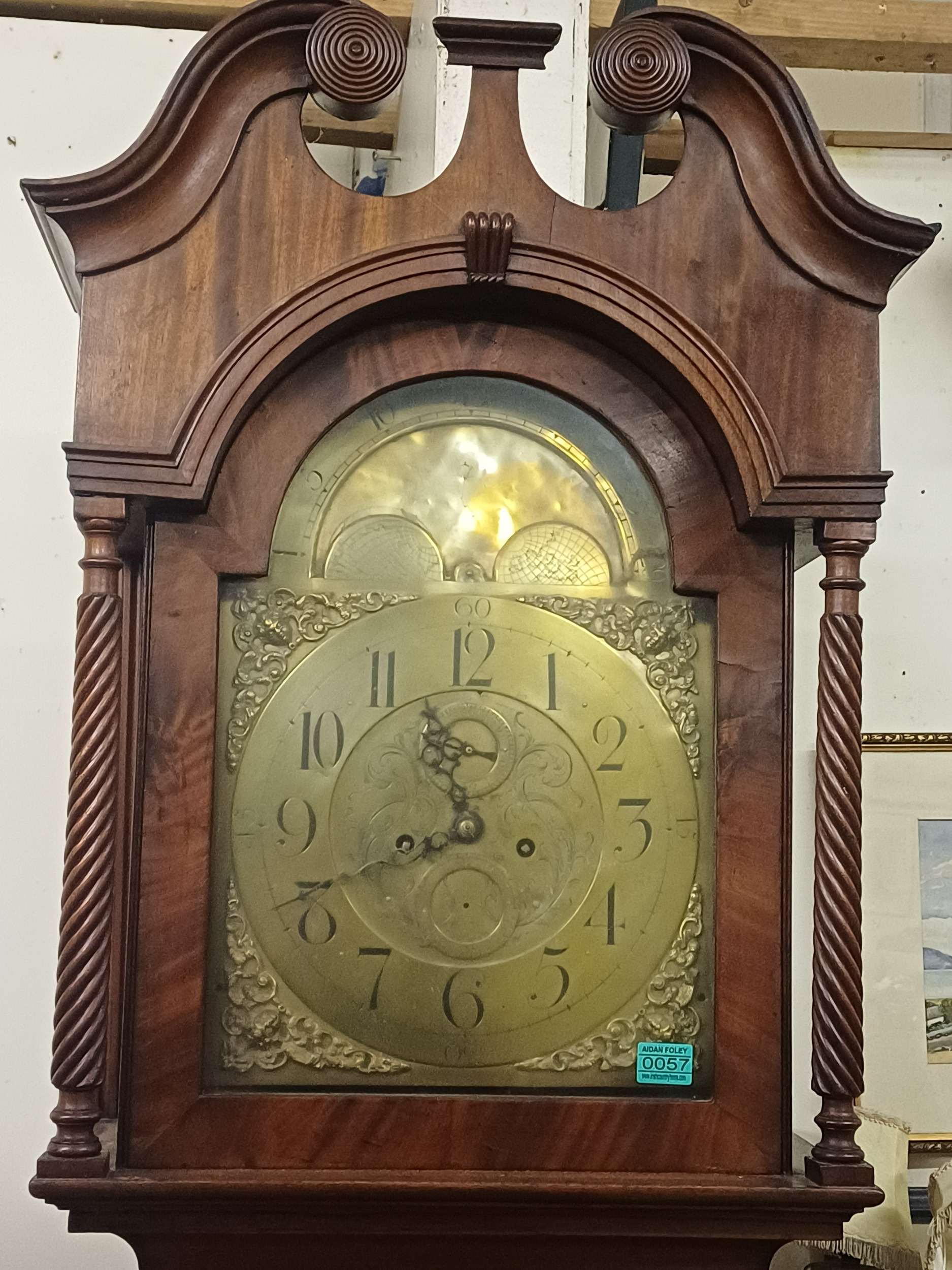 Victorian Mahogany Case 8 Day Brass Dial Longcase Clock with Pendulum and Weights