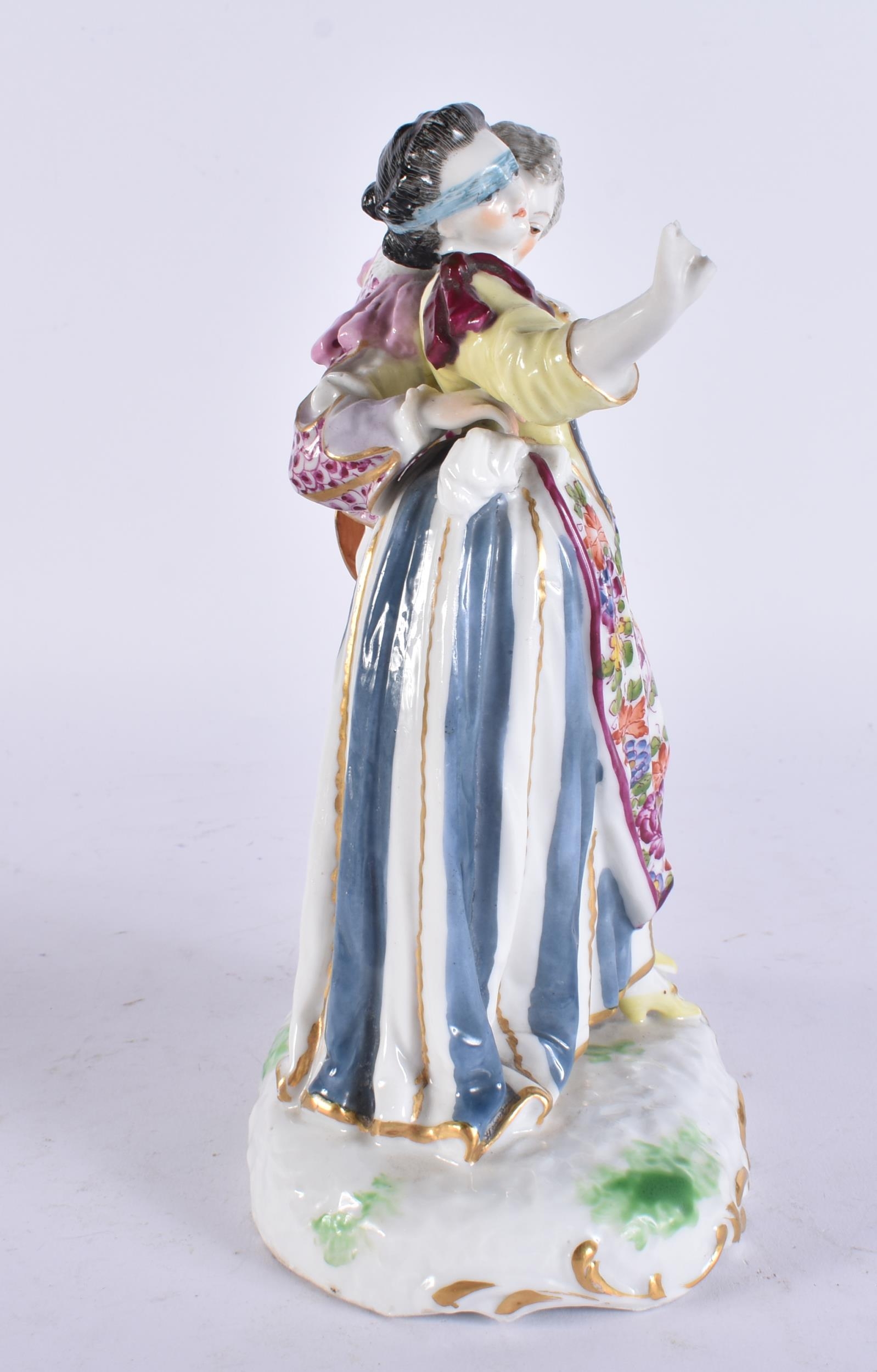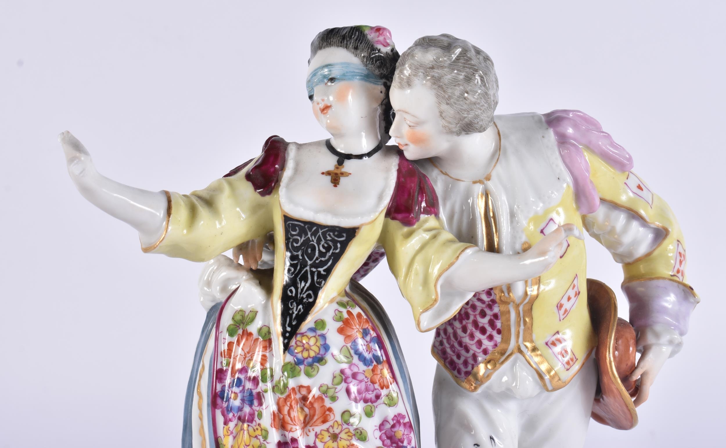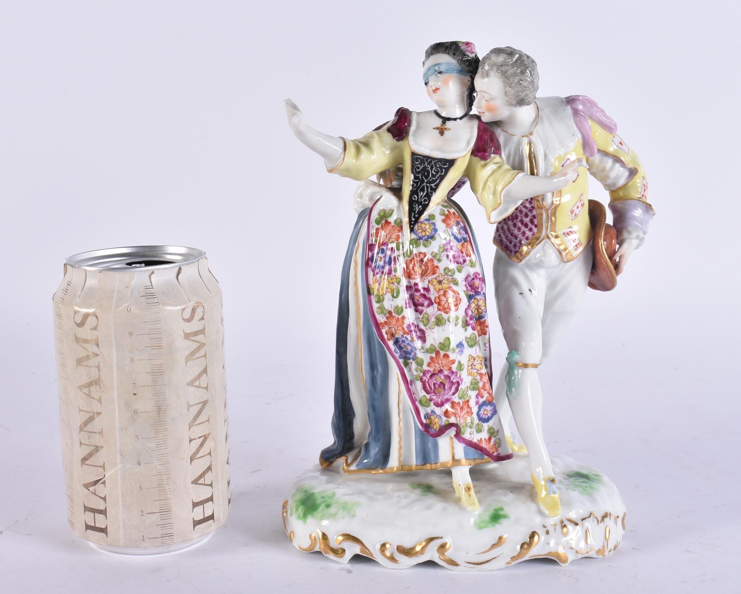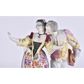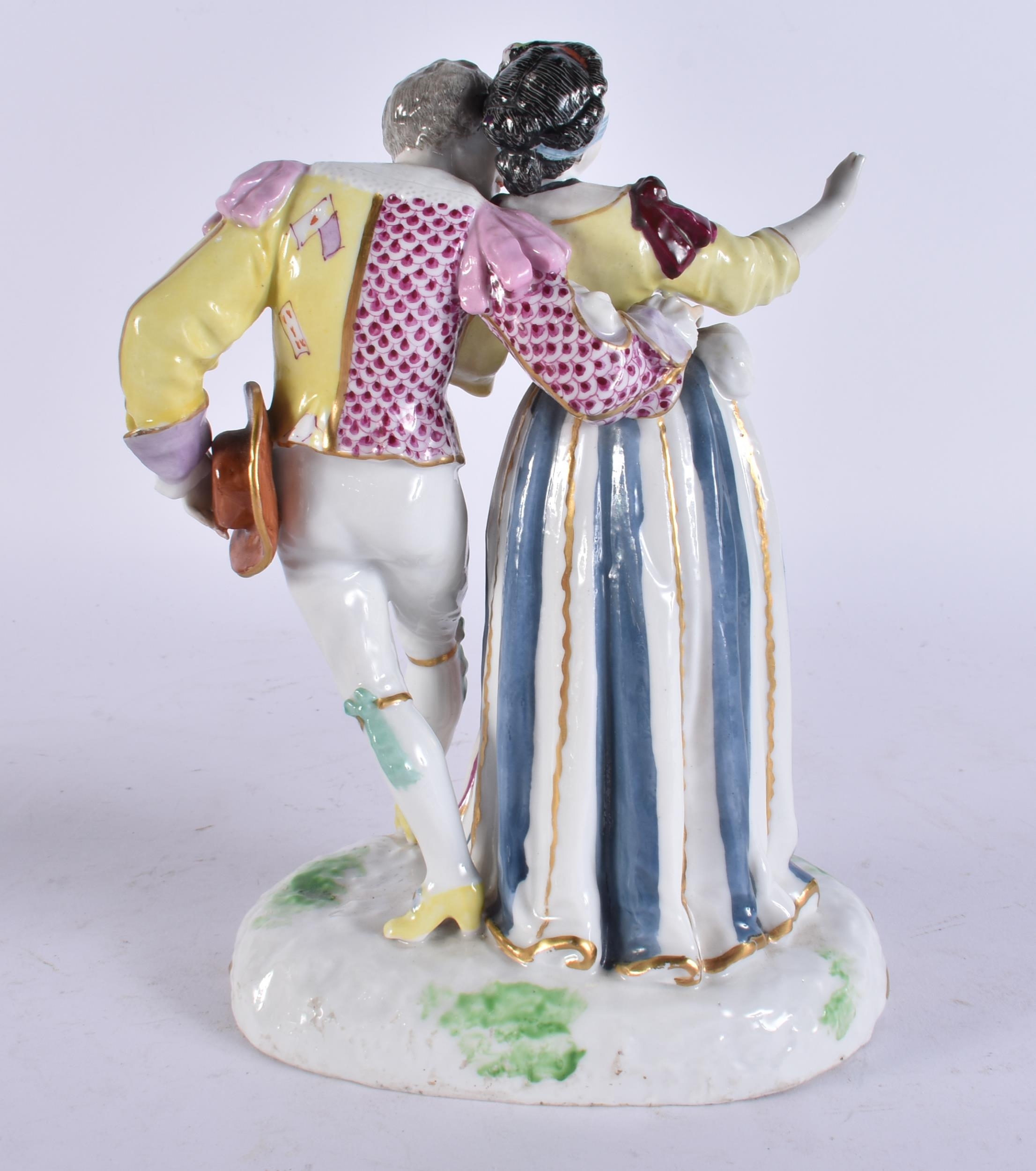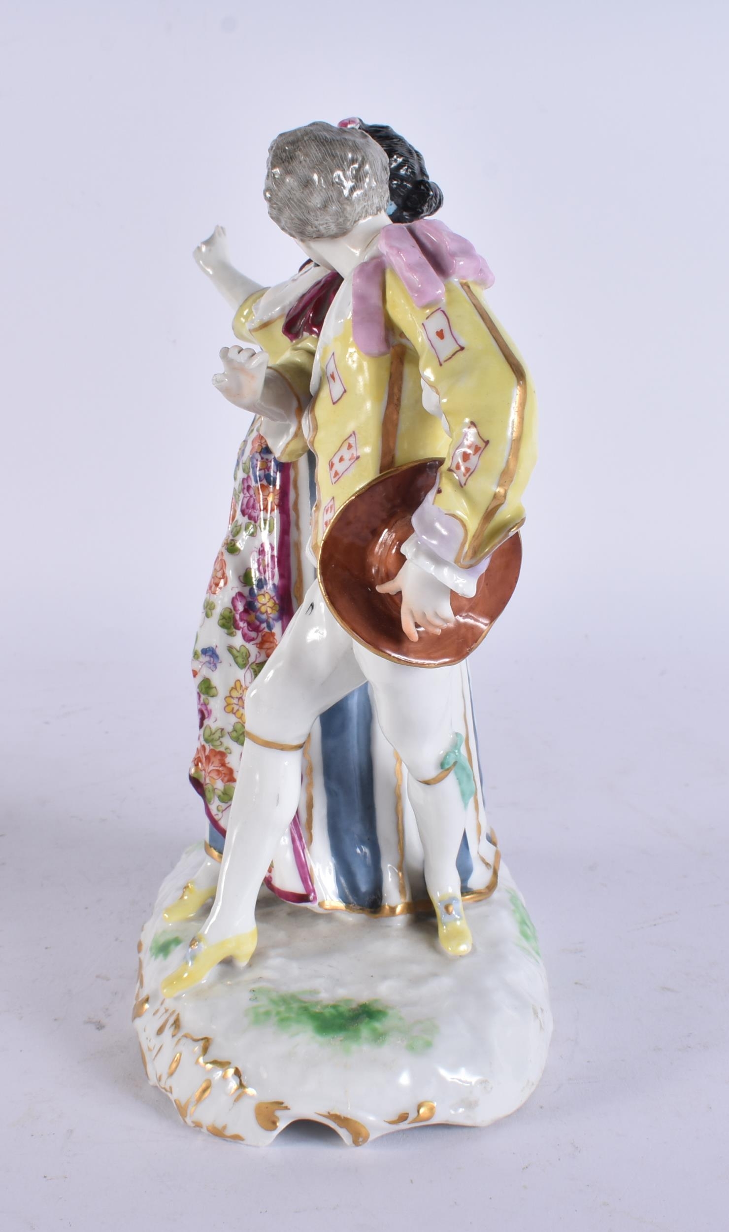 AN ANTIQUE GERMAN PORCELAIN FIGURE OF A DANCING MALE AND FEMALE. 20 cm high.