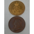 Queen Victoria 1837 to 1897 large 55mm Copper Medallion, twinned with 1980 Queen Mother Medallion. Both Extremely Fine or better