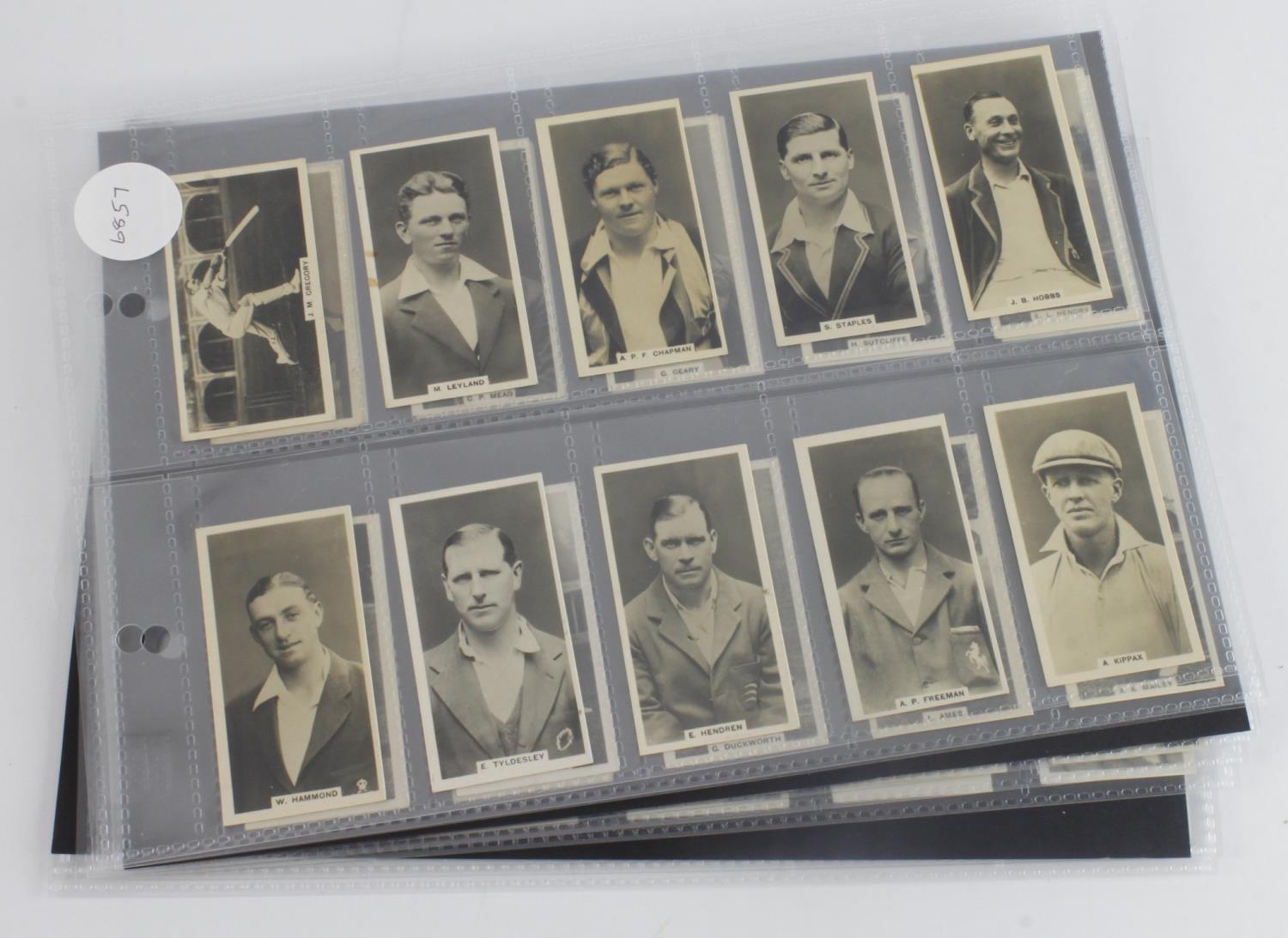 Cricket - 3 complete sets in pages, Millhoff - Famous Test Cricketers, Drapkin - Australian & English Test Cricketers & Morris - Australian Test Cricketers, VG or better cat value £600