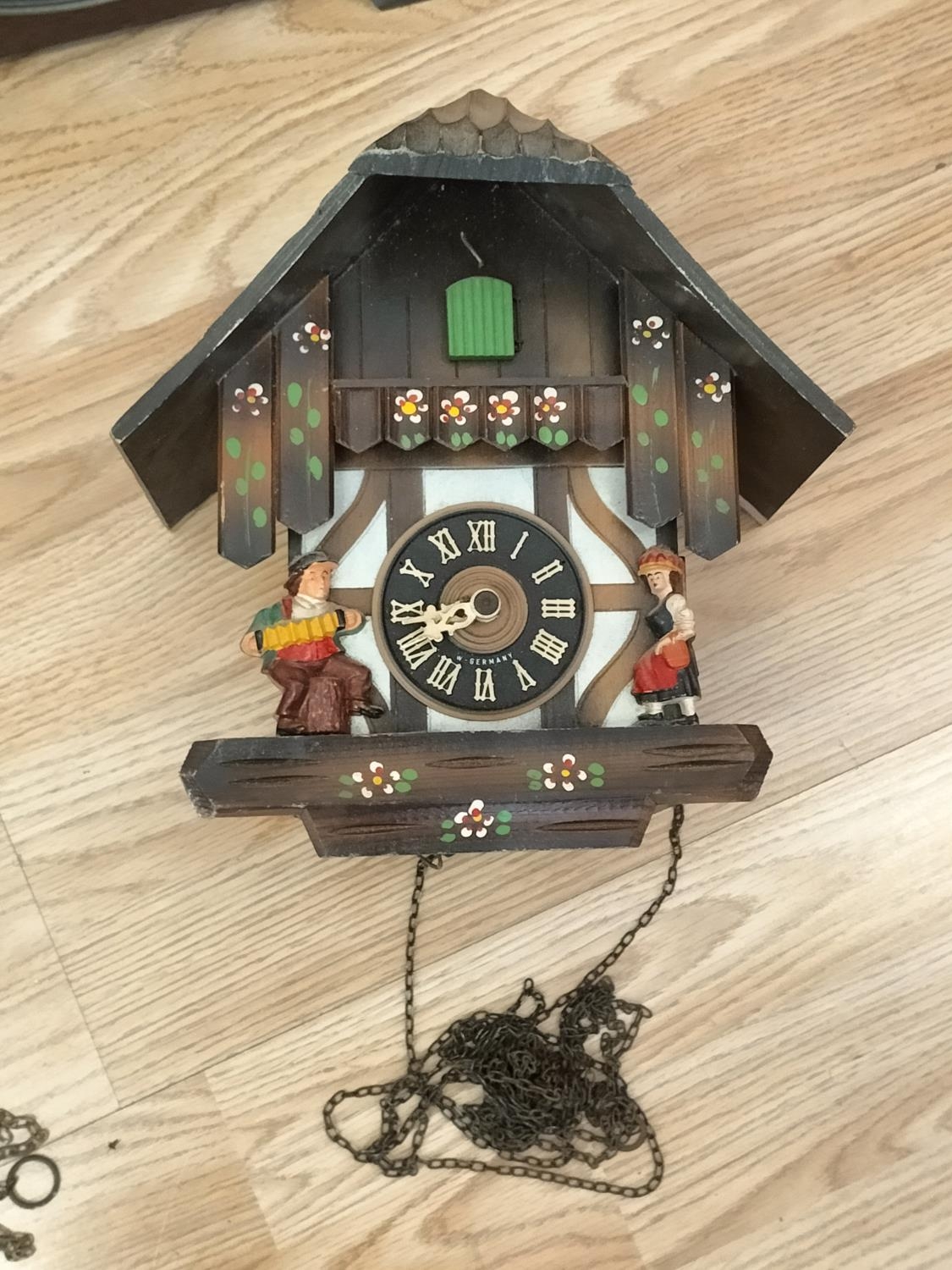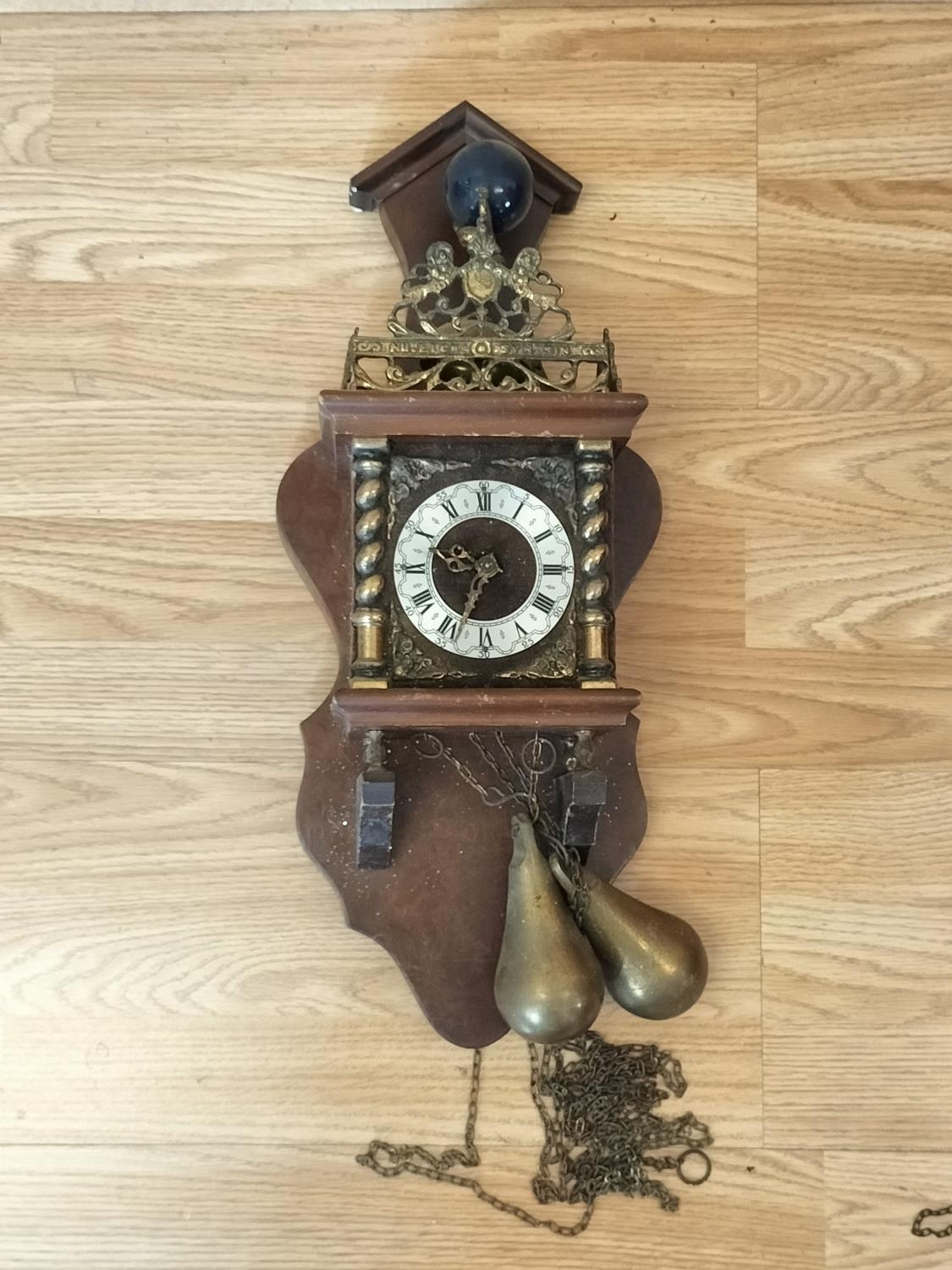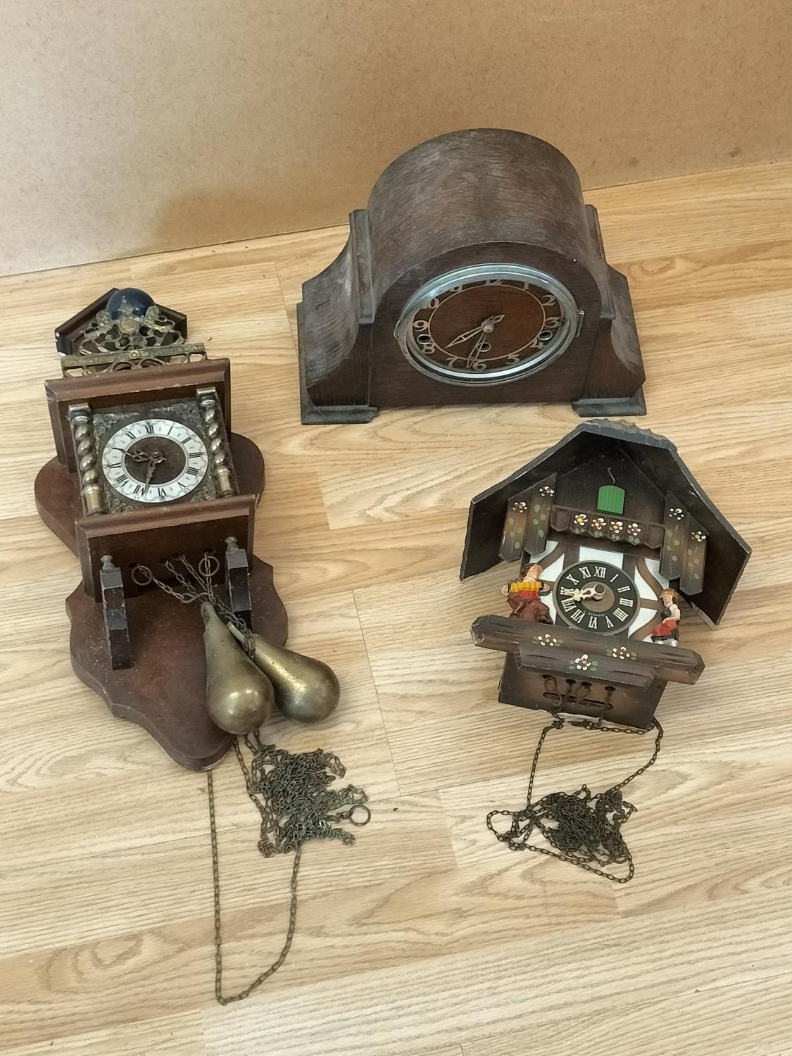 Vintage 1970's Clocks (3), West German Cuckoo Clock, Dutch Wall Clock and a Westminster Chime Clock. All Require Attention. Collection Only.