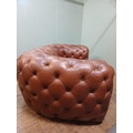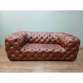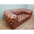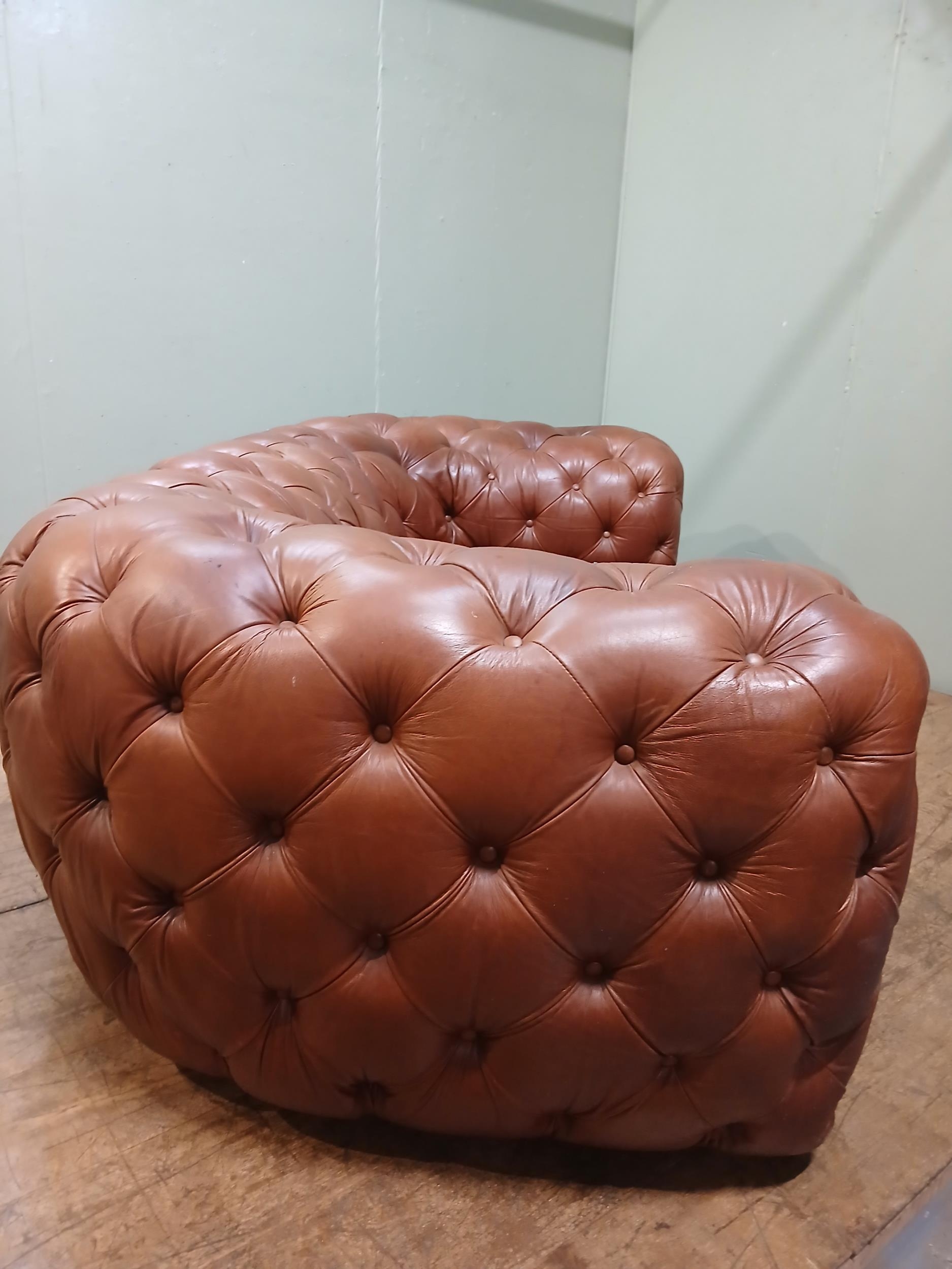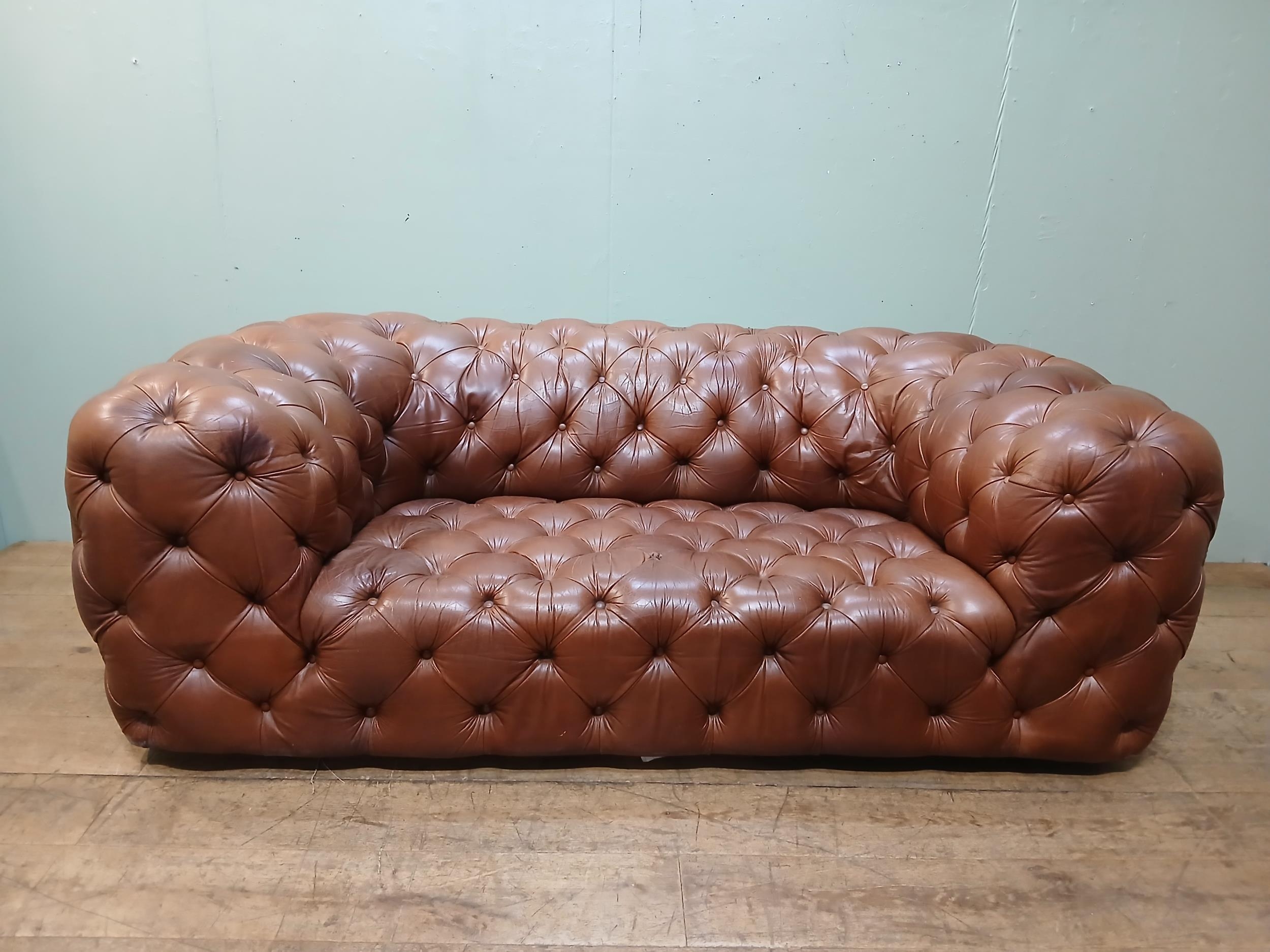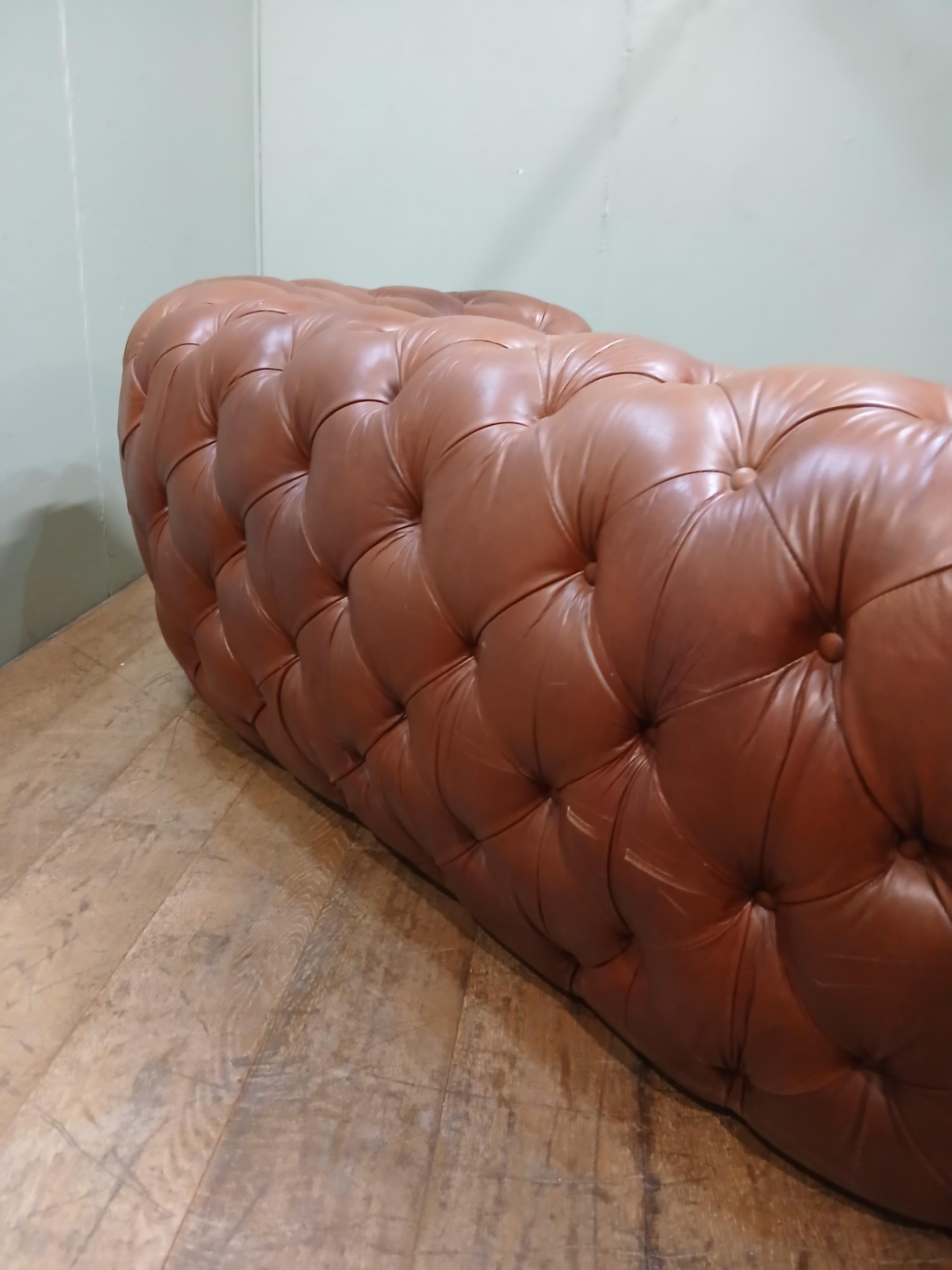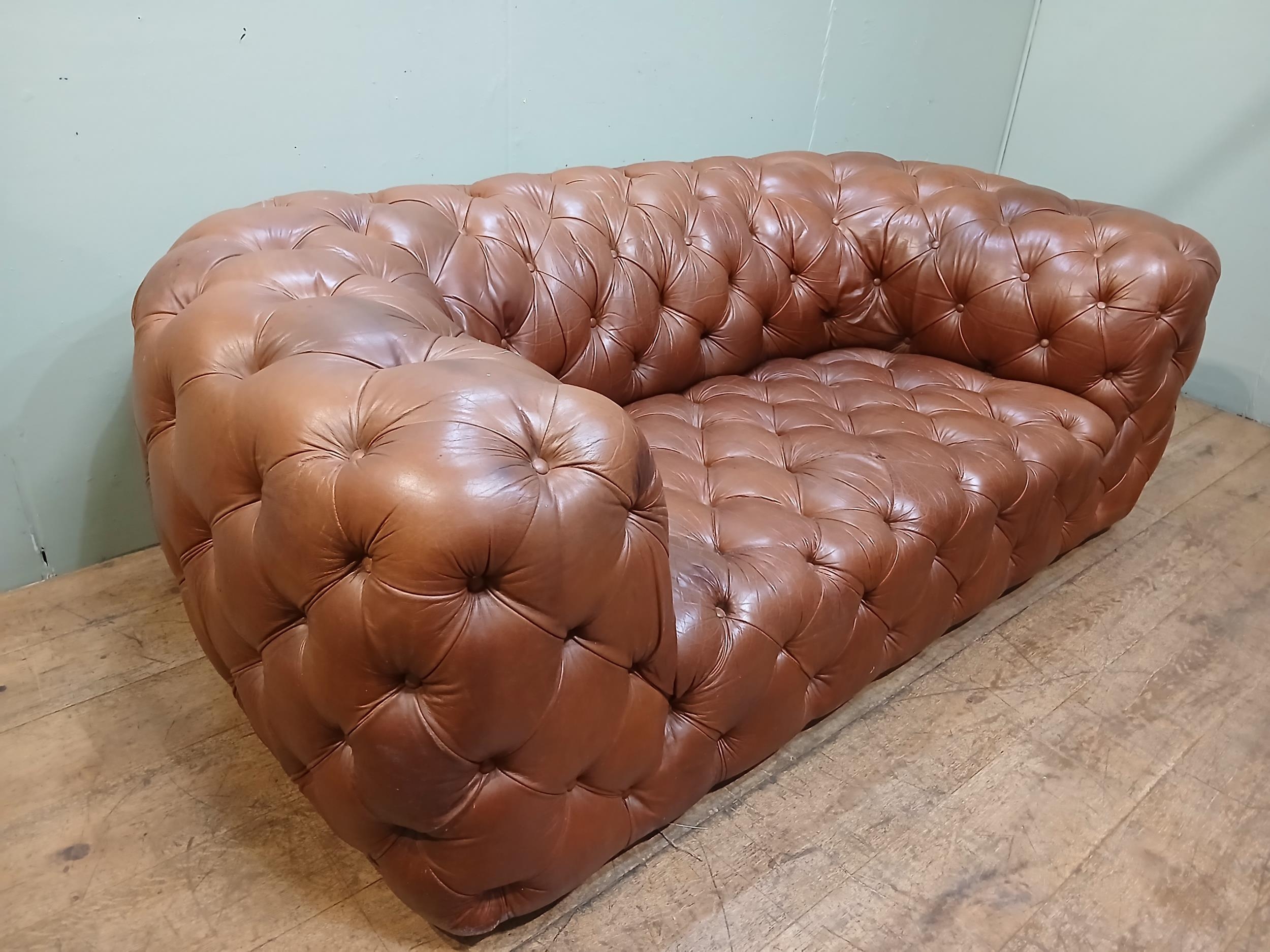 Leather upholstered deep buttoned Chesterfield sofa. {H 70cm x W 200cm x D 100cm }. NOT AVAILABLE TO VIEW IN PERSON.
