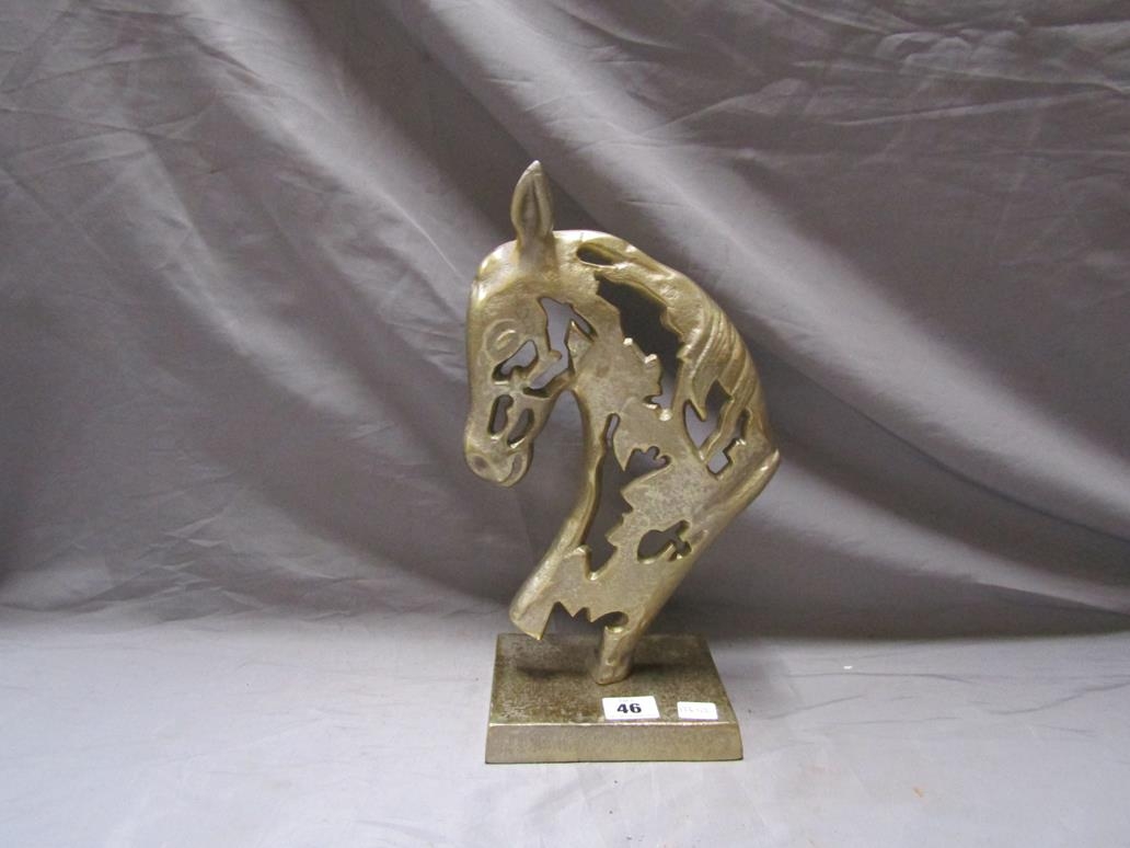 BRASS HORSE HEAD ON STAND
