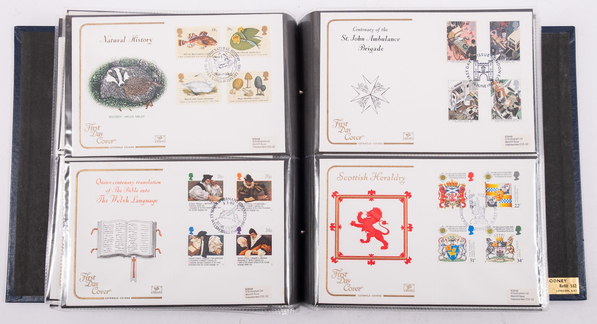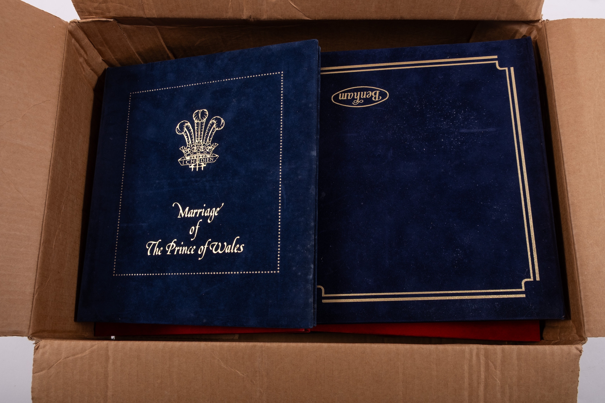 Great Britain. A large collection of mostly First Day Covers in approx. 56 albums, including 1960s, World Cup Willie, Benhams with Silks, also some mint GB decimal blocks (affected by storage), some Royalty albums. Large lot.