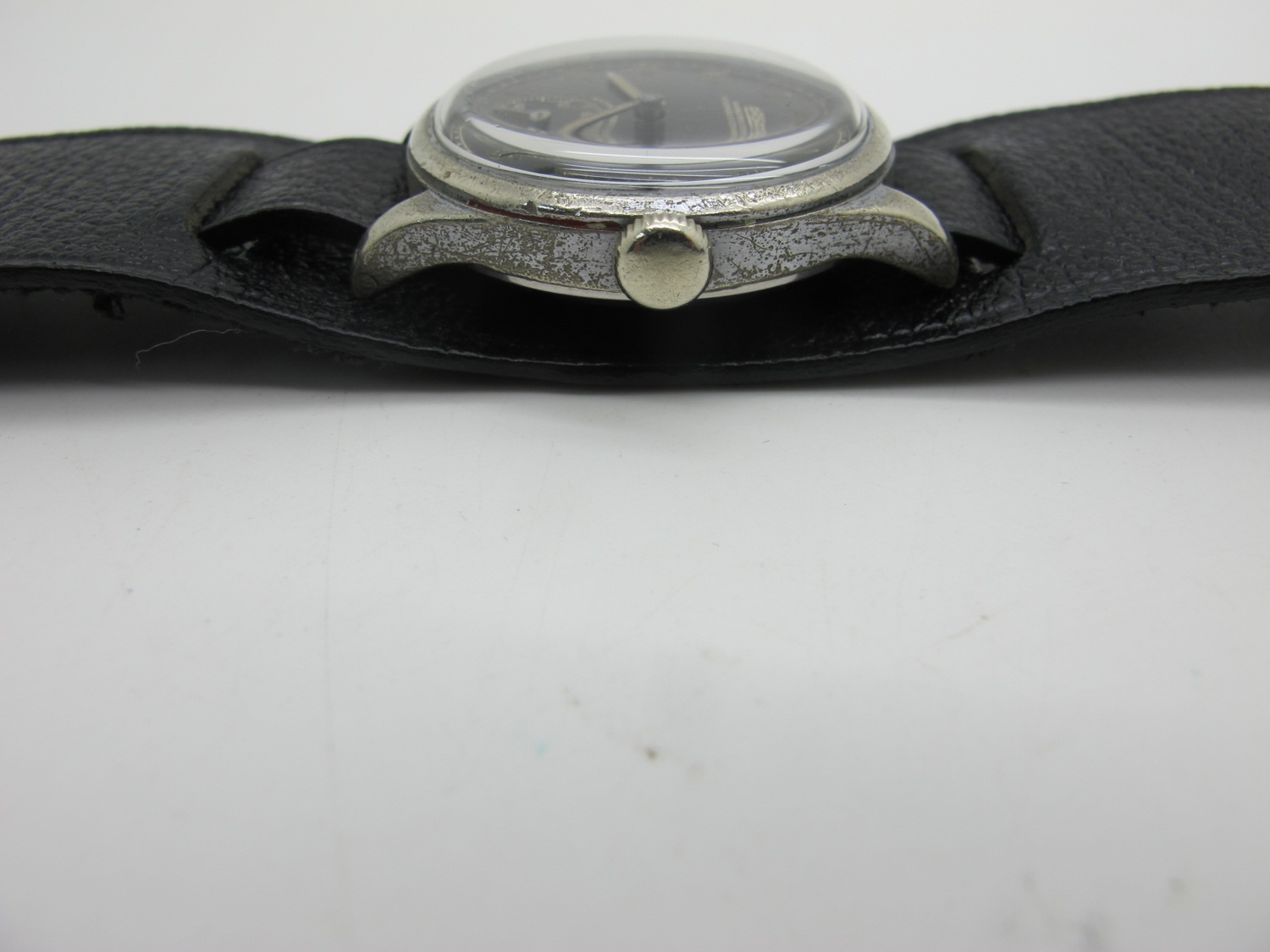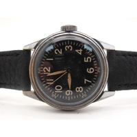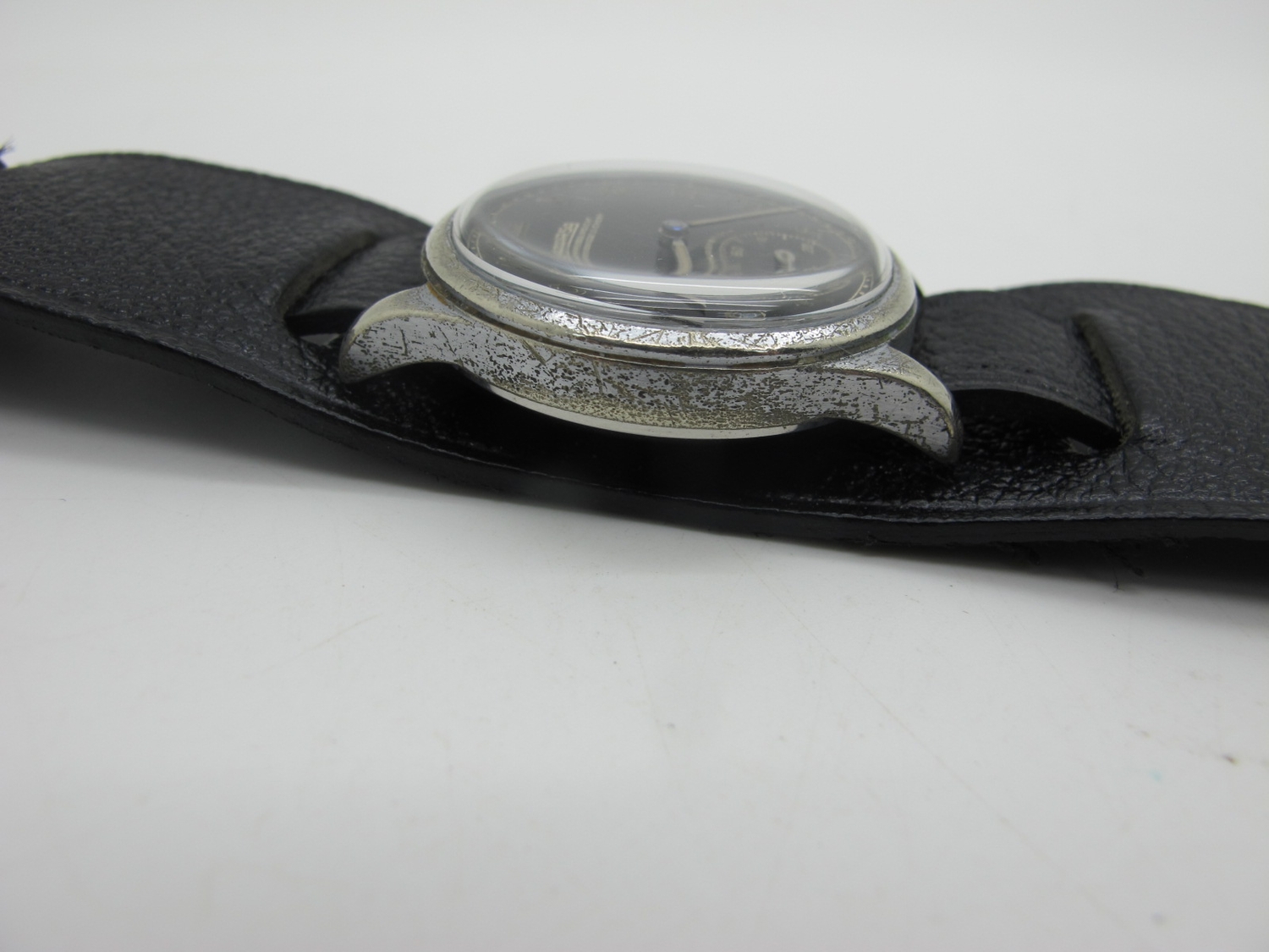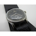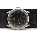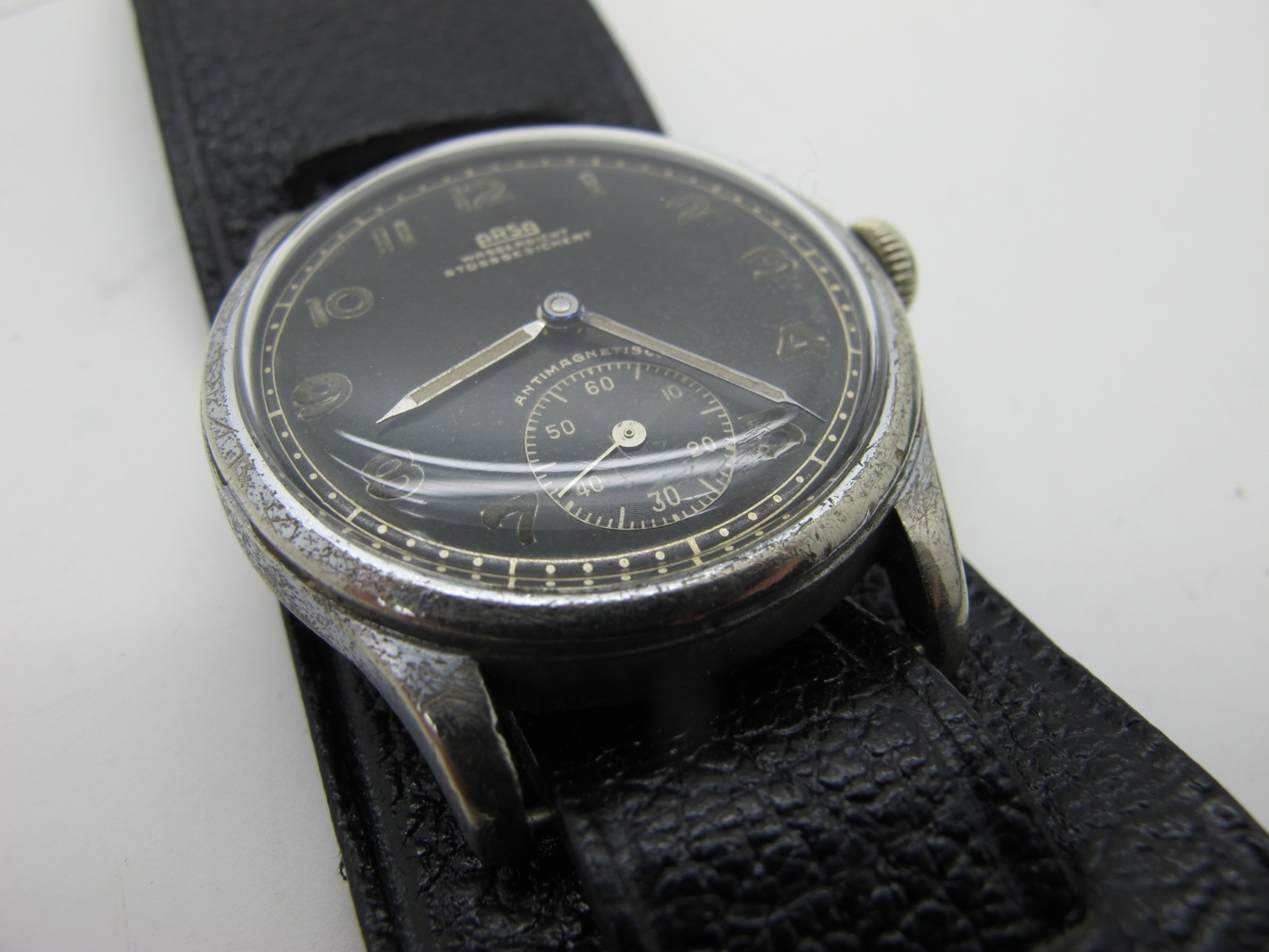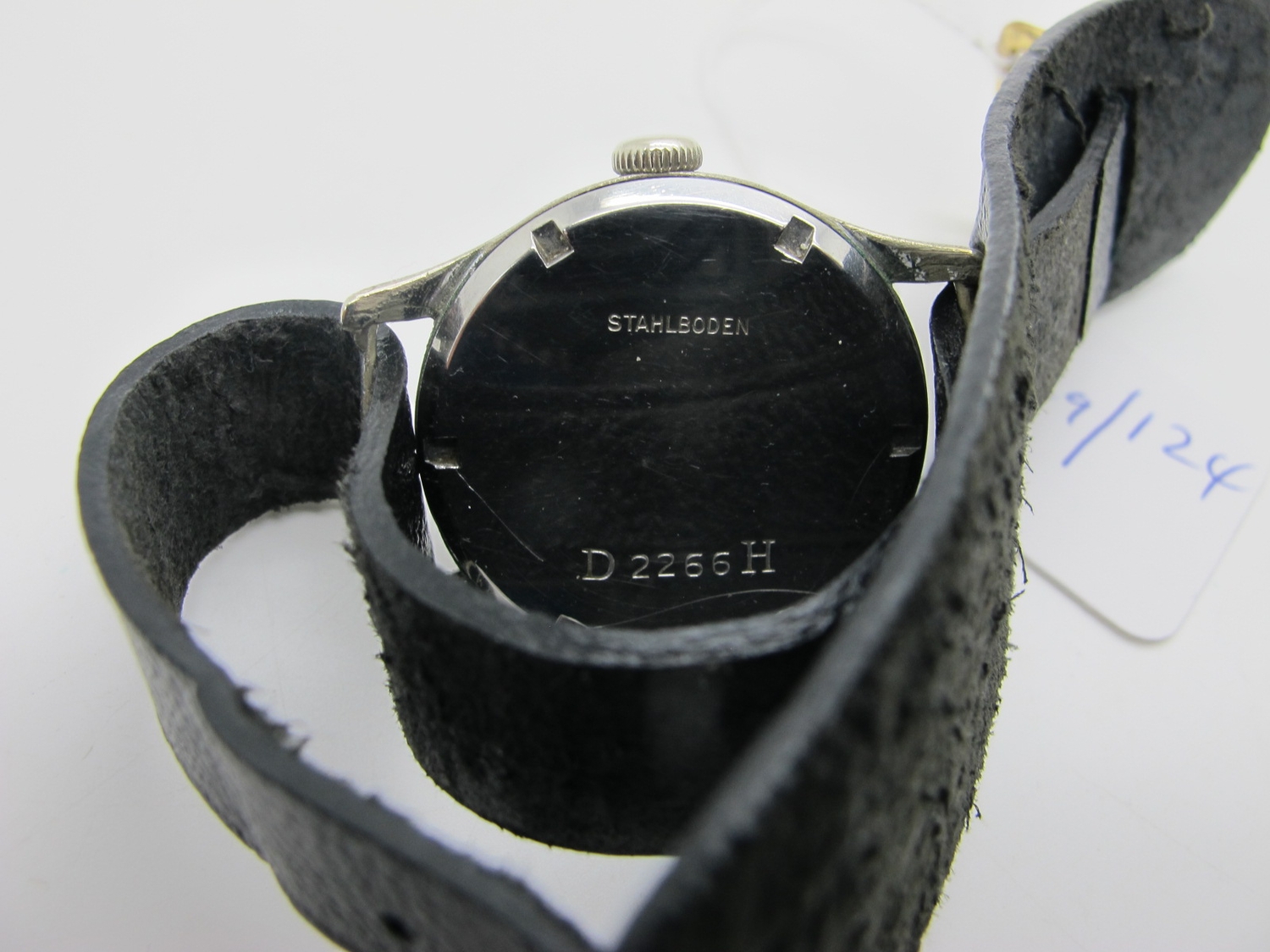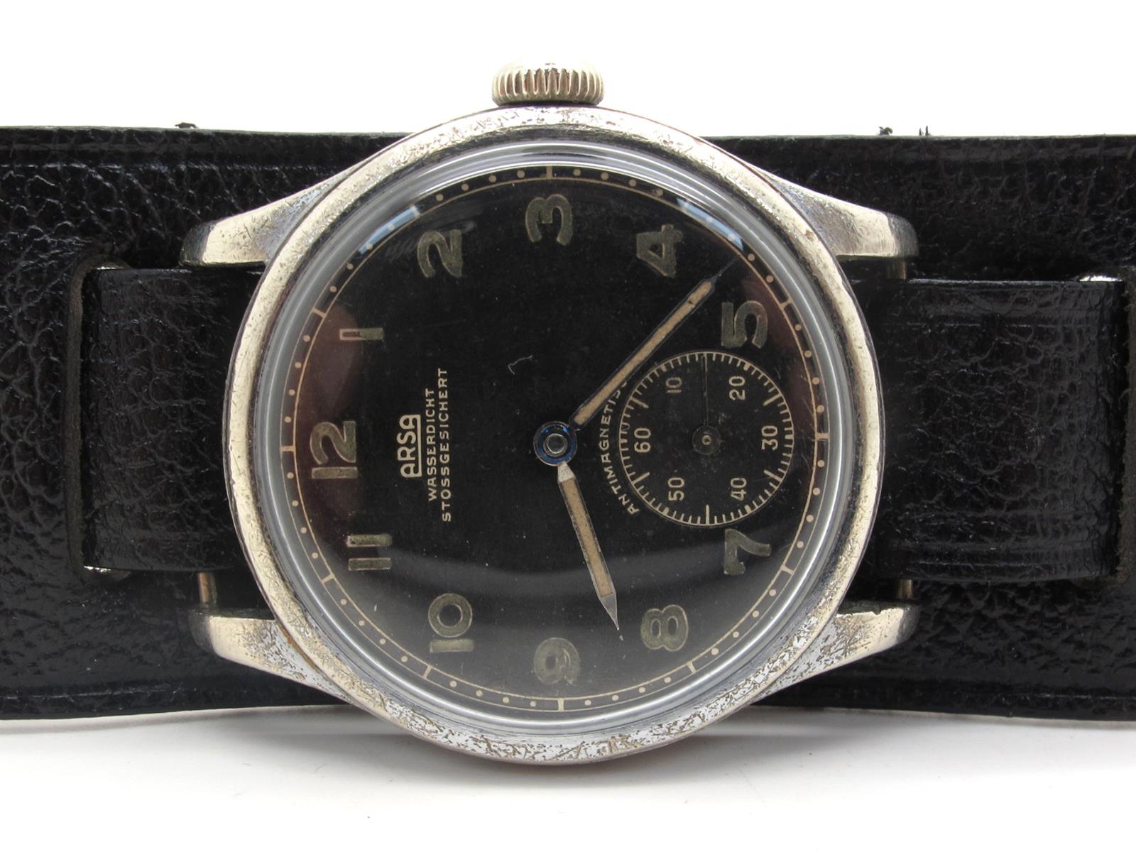 ARSA; A German WWII Military Gent's Wristwatch, the signed black dial also marked "Wasserdicht Stossgesichert", with Arabic numerals and seconds subsidiary dial, (movement unseen) the case back stamped "Stahlboden D2266H", on a modern wide strap.