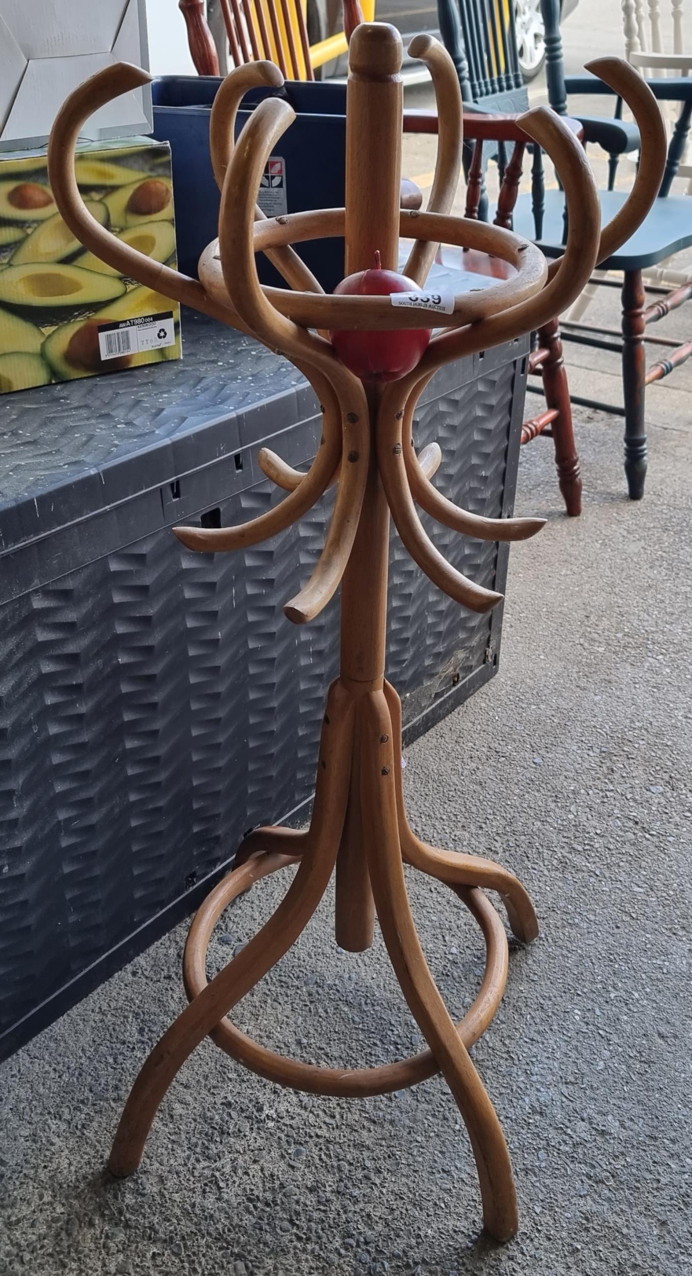 A vintage bentwood umbrella stand with hat stand element. A neat sized example, very charming
