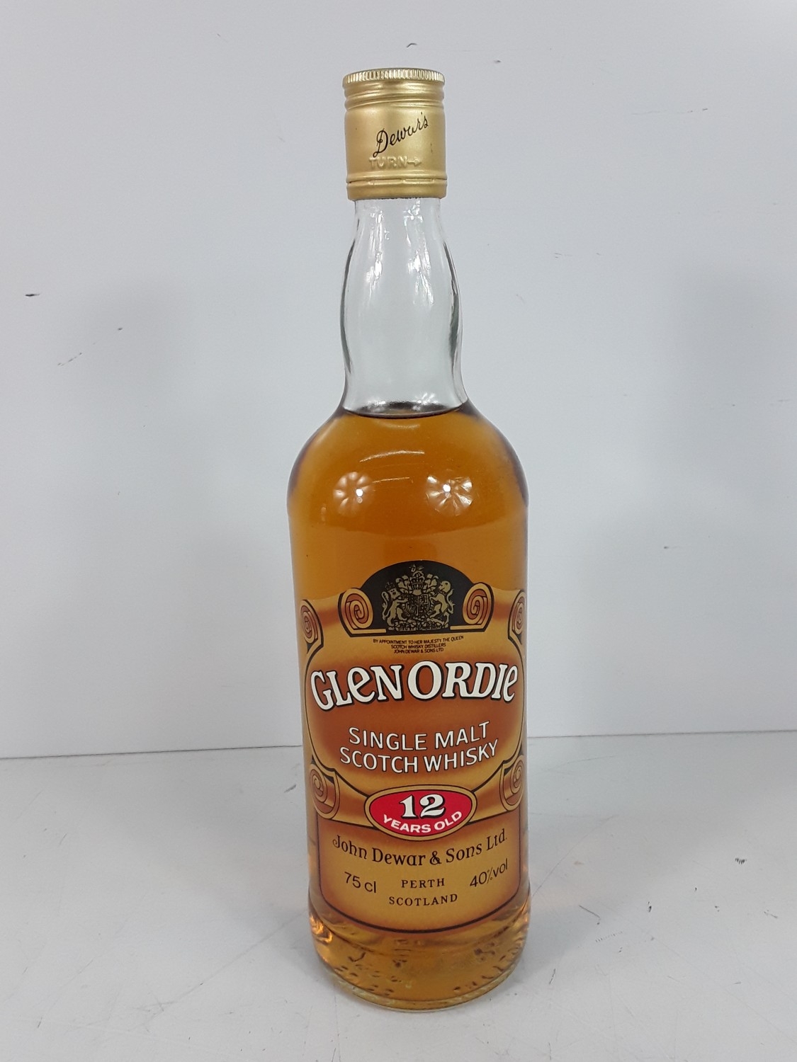 Bottle of Glenordie Single Malt Scotch Whisky 12 year old by John Dewar, 75cl, 40%, an extremely rare bottle of the 1980's