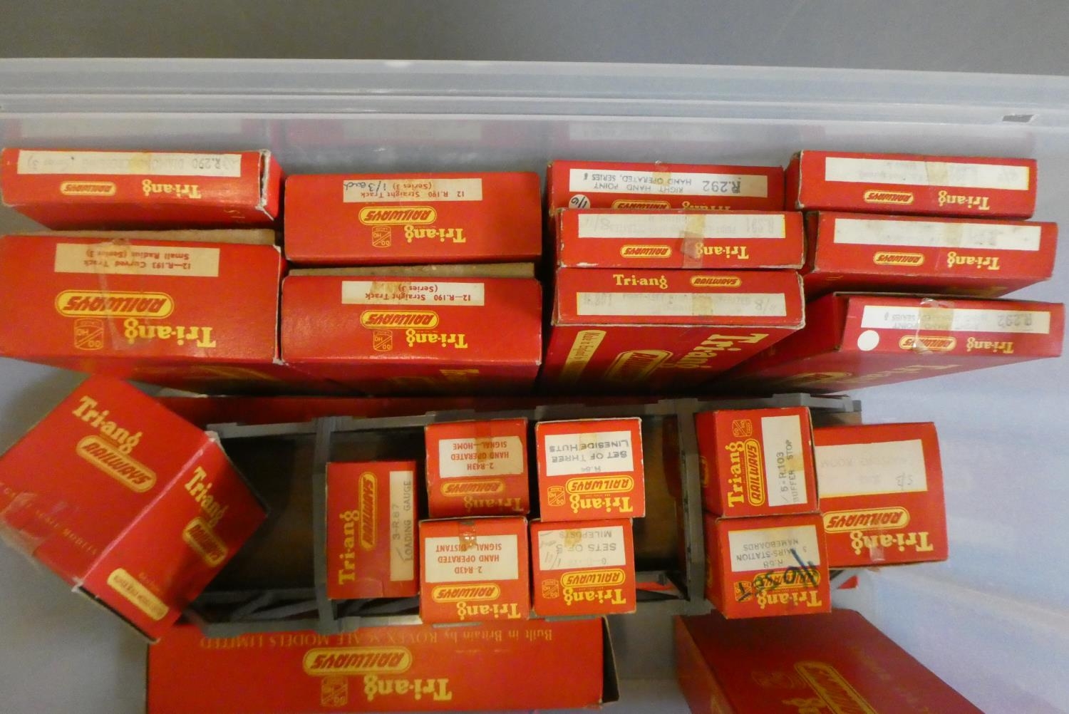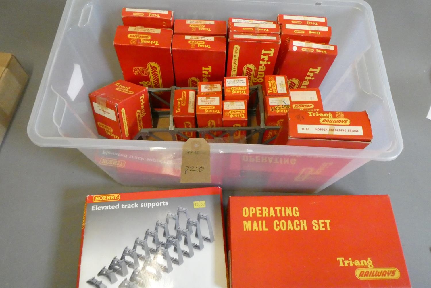 Triang track and accessories including points, bridge and hopper unloading bridge. Most items boxed, good to excellent