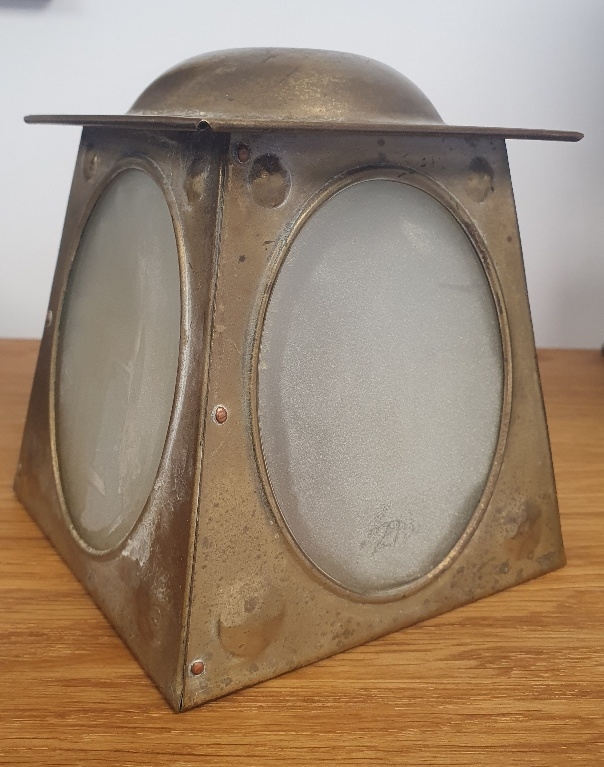 Arts and Crafts Lamp Shade Measuring 5 inches square x 6 inches in height. Four frosted glass panels.
