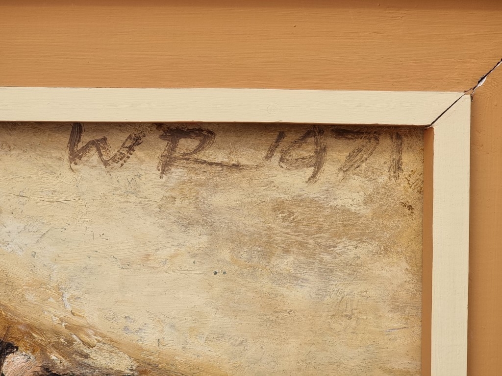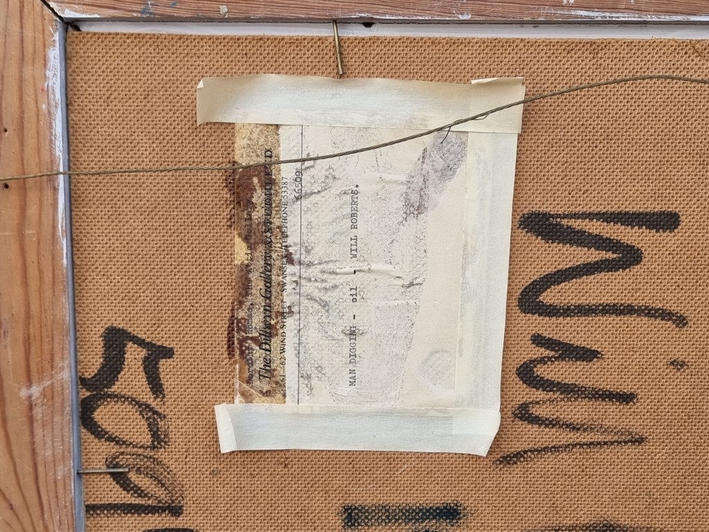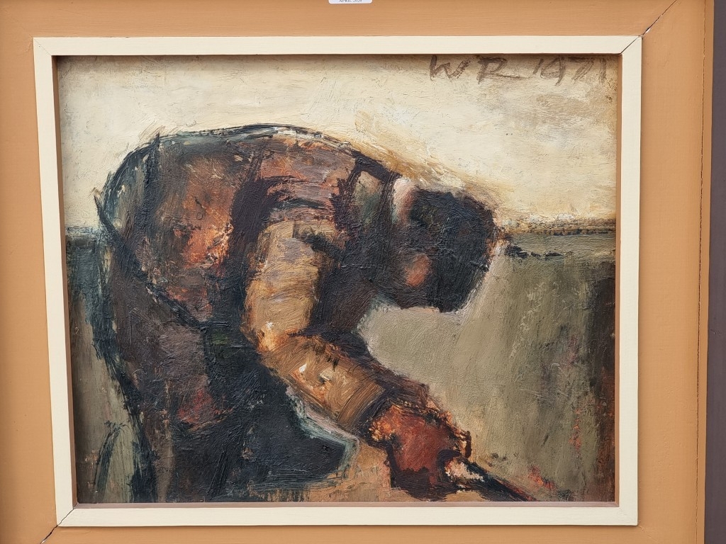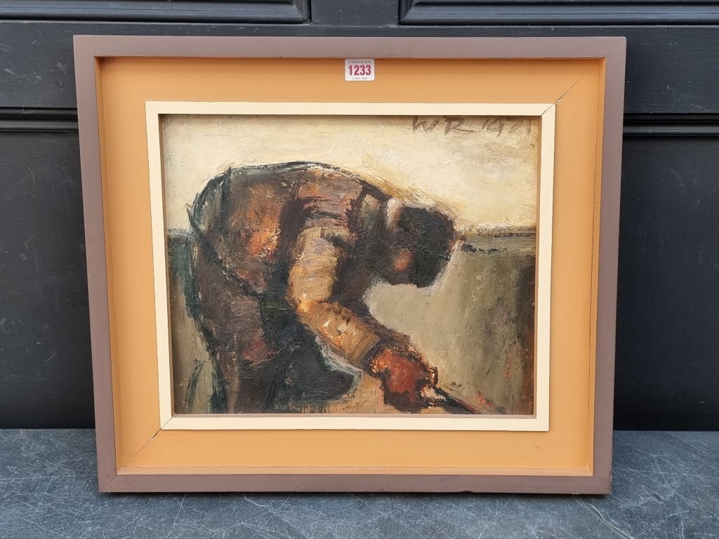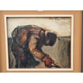 Will Roberts, ‘Man Digging’, initialled and dated 1971, further inscribed and labelled verso, oil on canvasboard, 35 x 42.5cm.