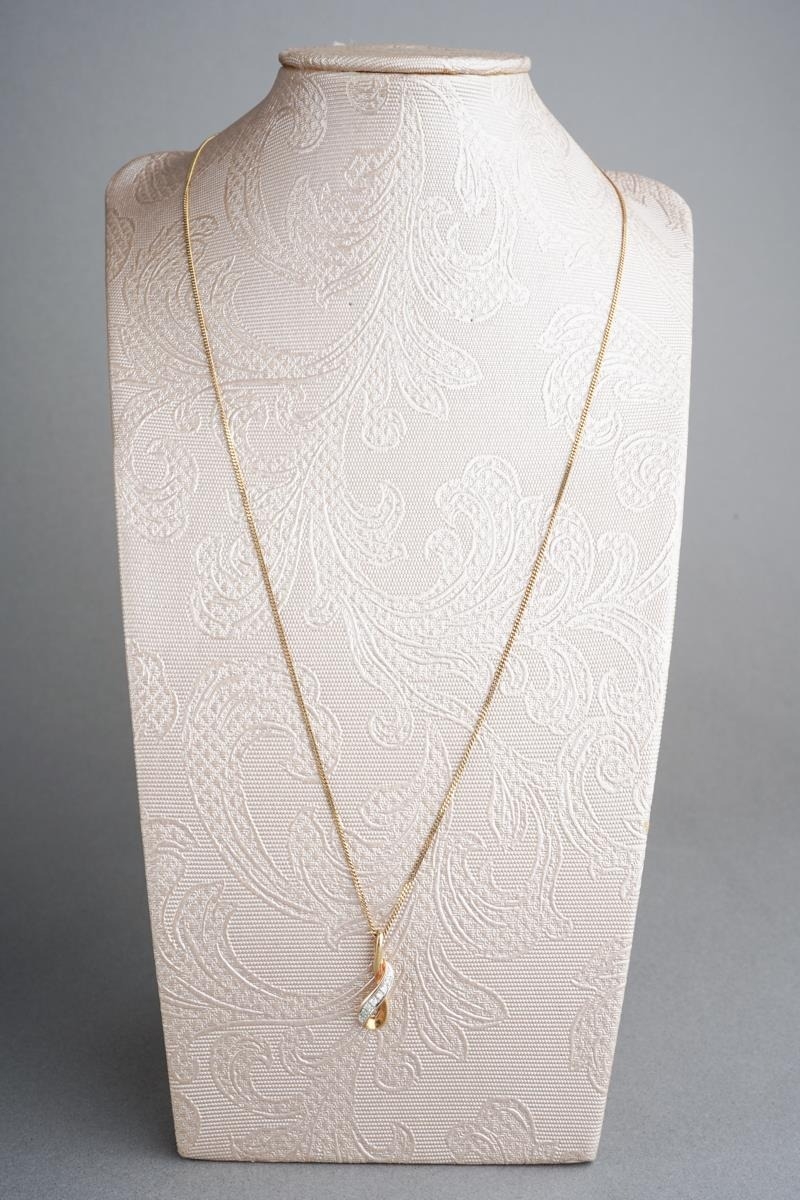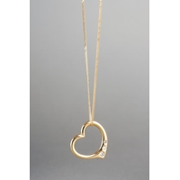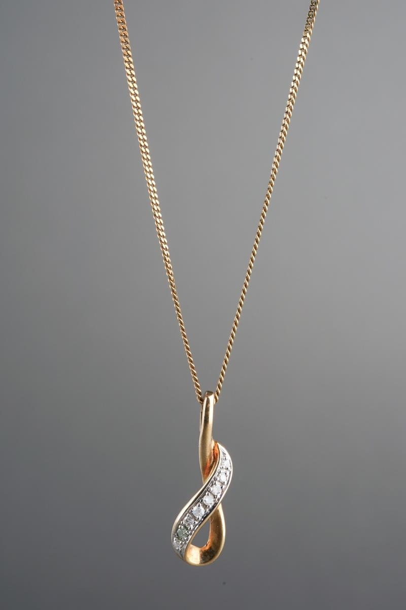 A 9ct gold diamond pendant and chain. Approx length pendant 19mm, approx length chain 450mm, pendant and chain hallmarked 9ct gold, approx gross weight 2.1 grams.