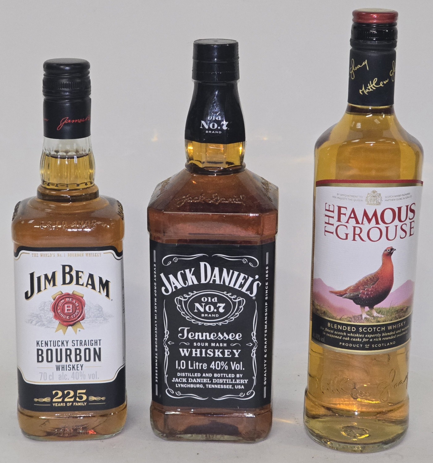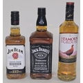 3 x bottles whisky to include Jim Beam Bourbon 70cl, Jack Daniel's Whiskey 1L and The Famous Grouse 70cl (REF P80, P97).