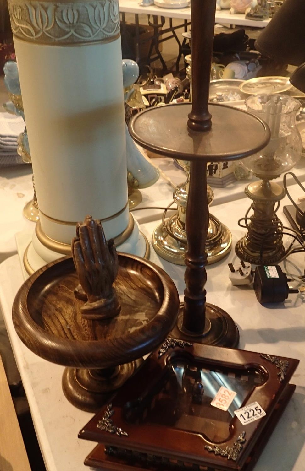 Collection of wooden items including a smokers stand. Not available for in-house P&P, contact Paul O'Hea at Mailboxes on 01925 659133