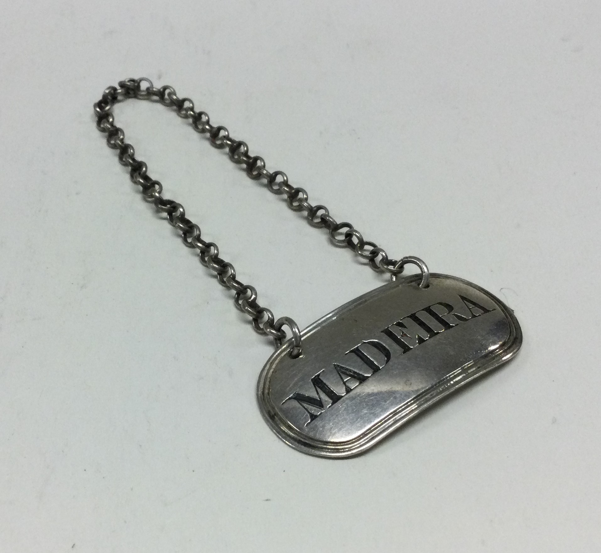 A George III silver wine label for 'Madeira'. London 1802. By George King. Approx. 9 grams. Est. £50 - £80.