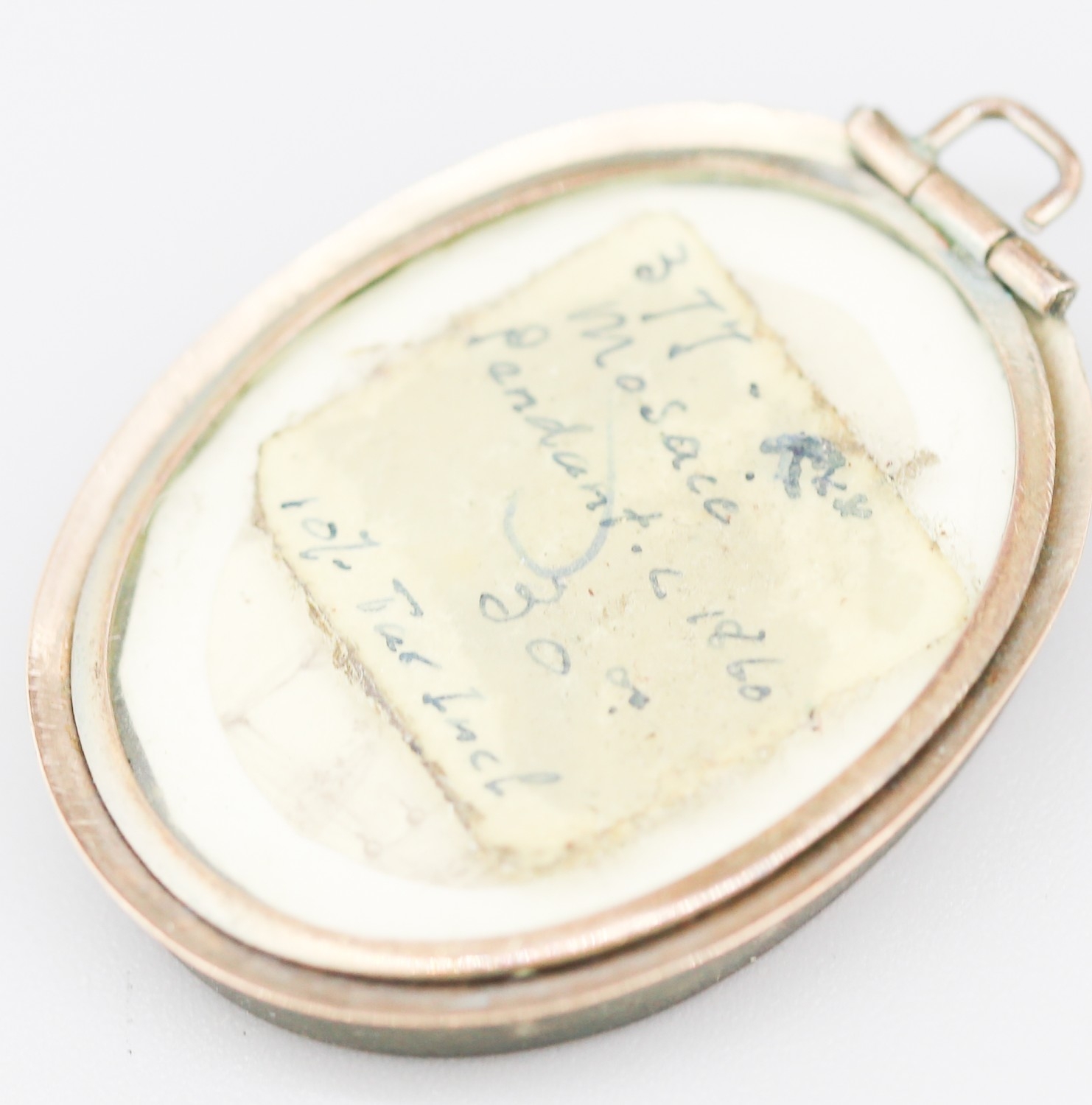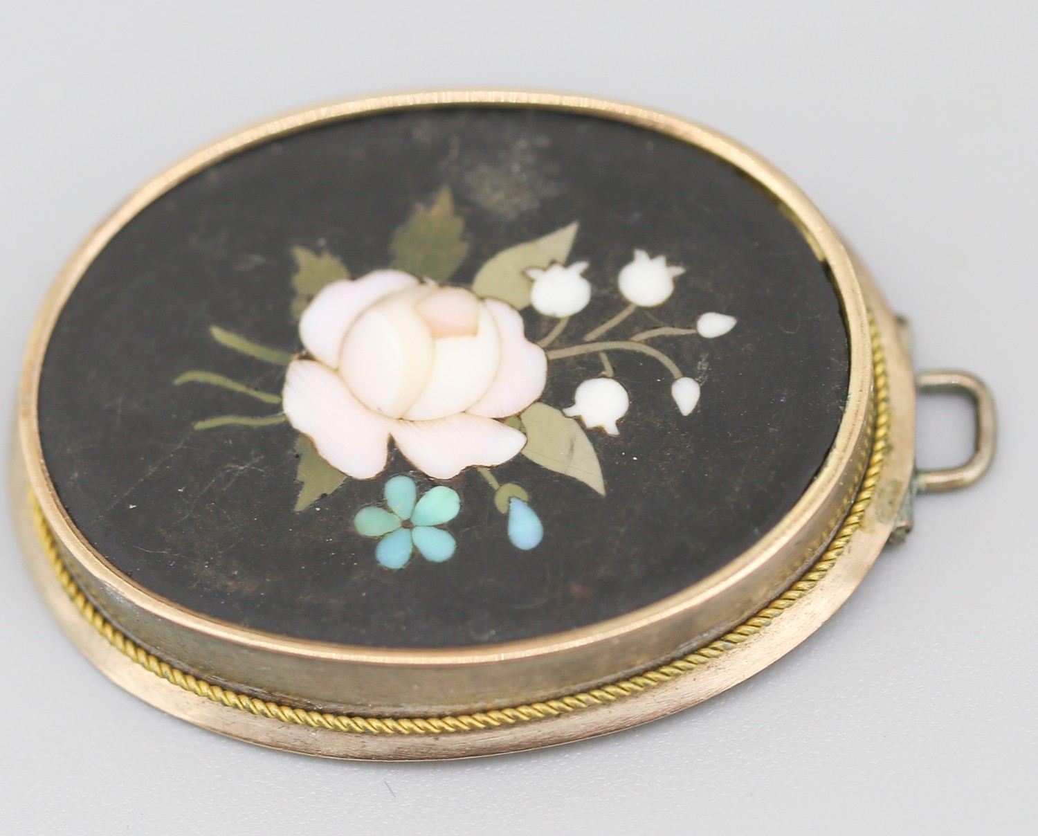 Pietra Dura Mosaic Floral Motif Framed Pendant Circa 1860 4cm High