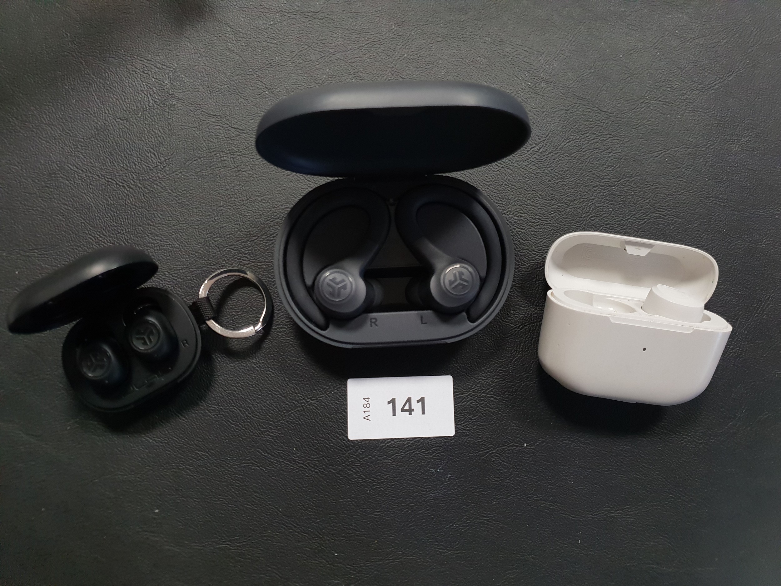 TWO PAIRS FO JLAB EARBUDS IN CHARGING CASESand a single Jlab earbud in charging case