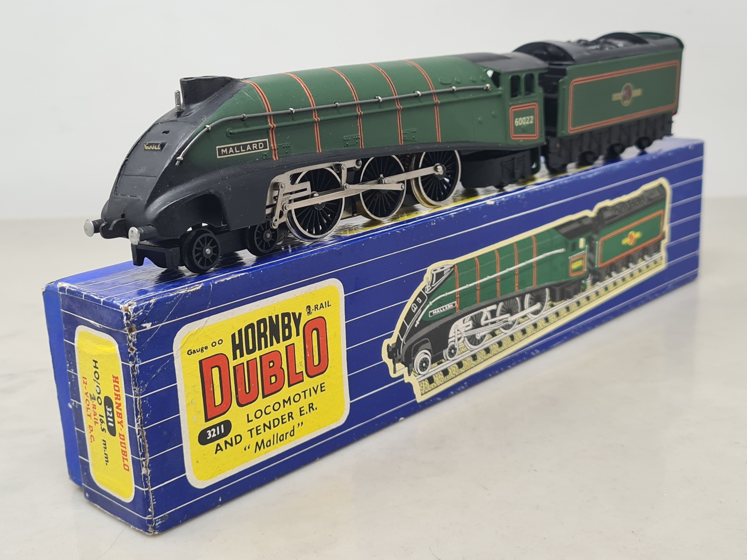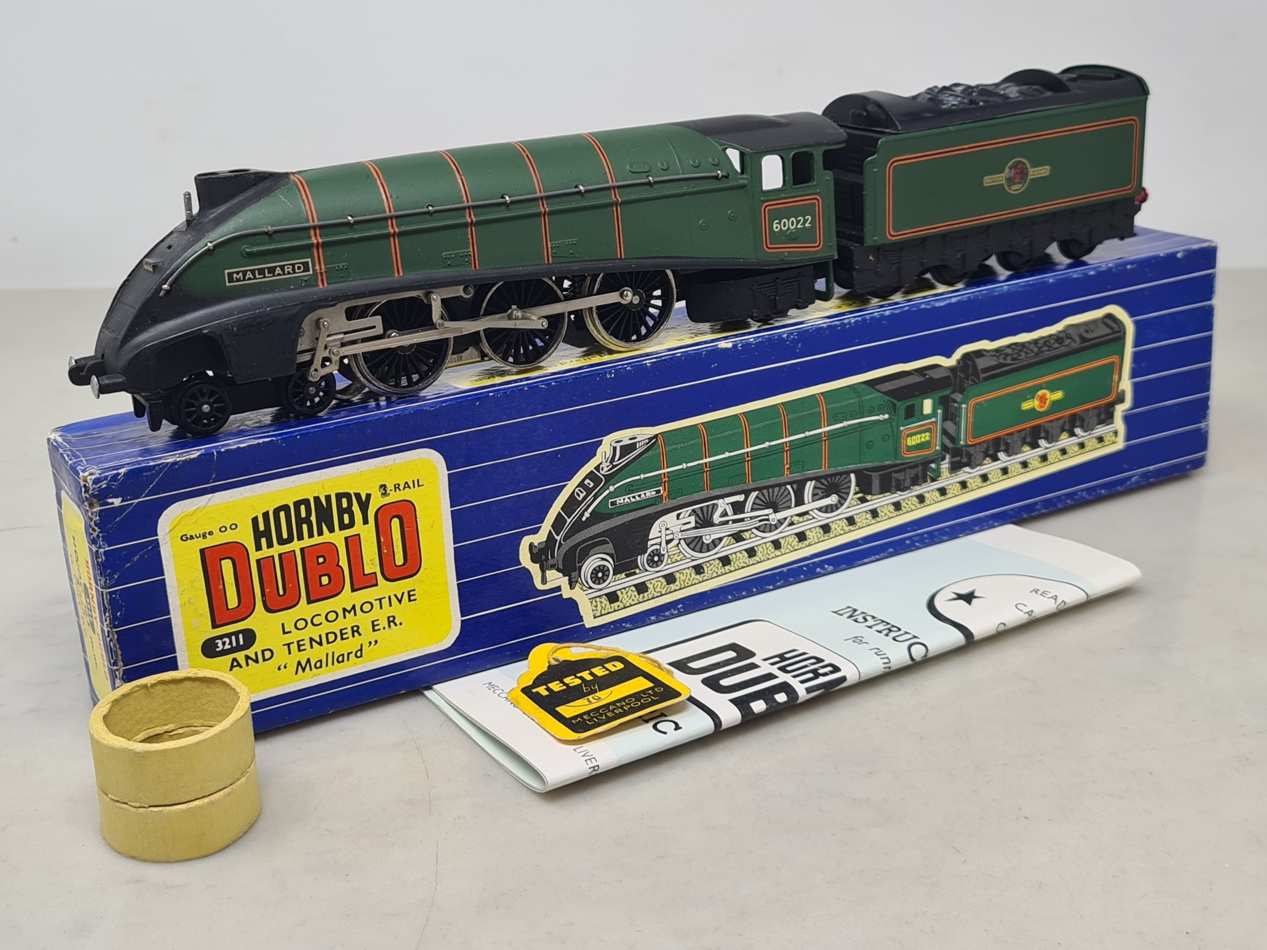 A boxed Hornby Dublo 3211 'Mallard' with nickel silver driving wheels, M, showing no signs of use. Box Ex plus, slight repair at one end, complete with instructions, guarantee, test tag, oil and spanner