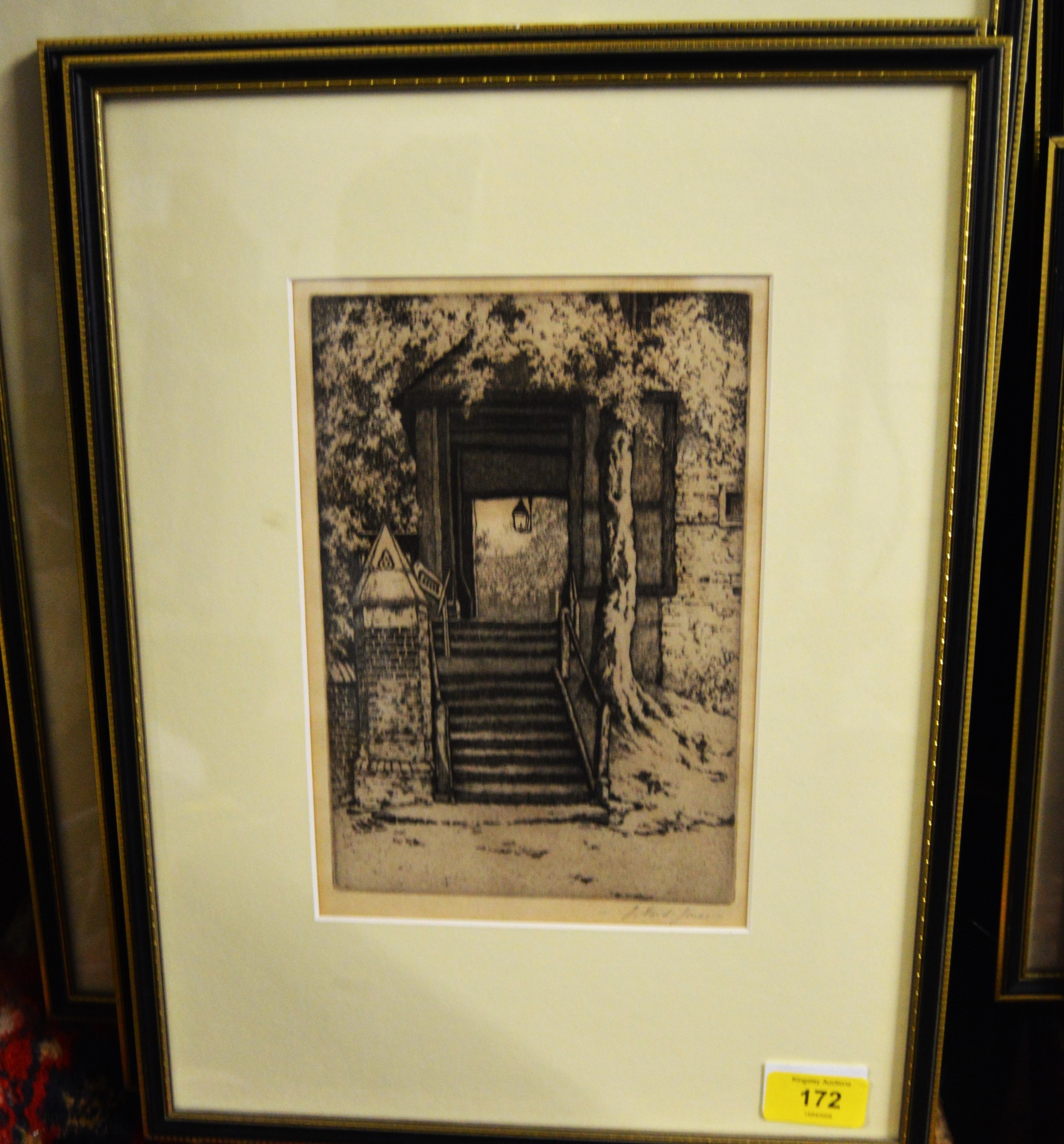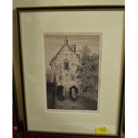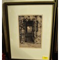 Framed, Mounted and Glazed Etching "An Old Porch near Canterbury" Signed by J Ford-Jones