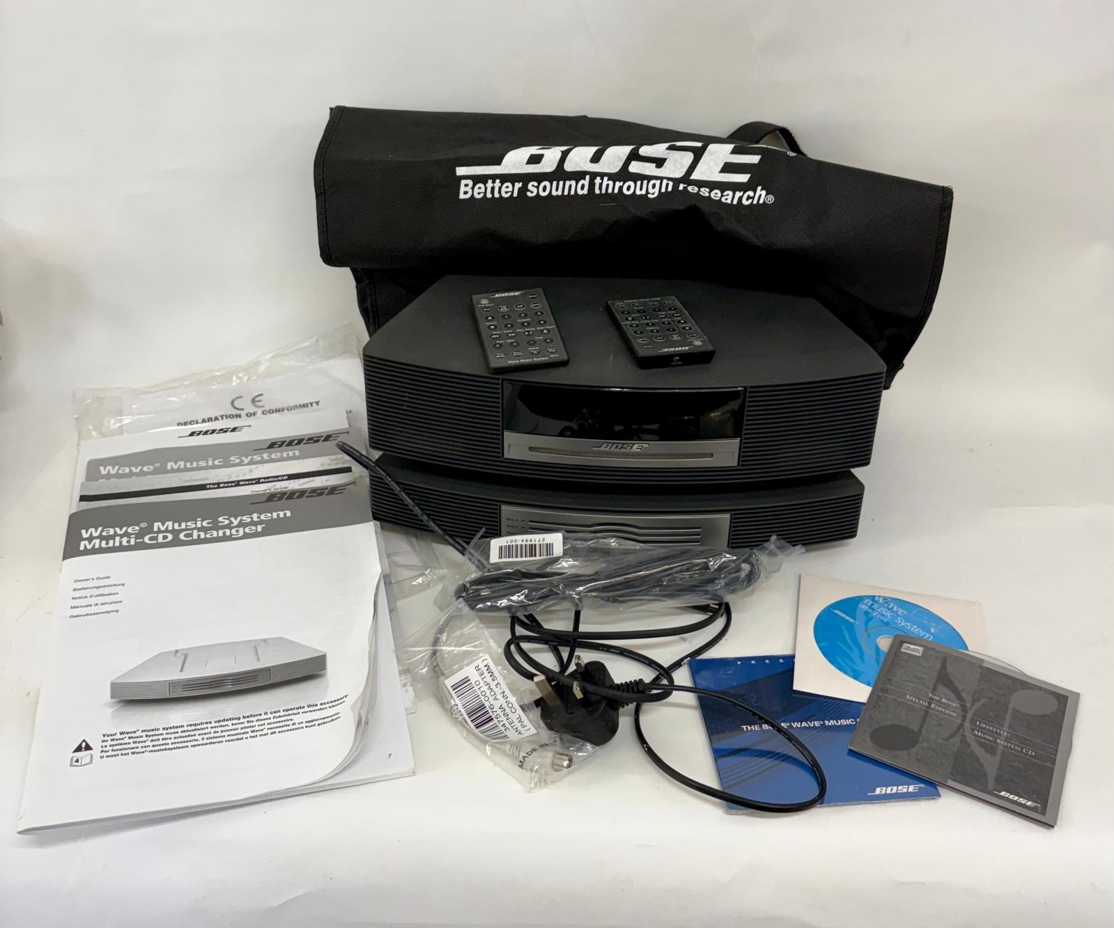 A Bose Wave Music System, with a Wave Music System Multi-CD Changer.