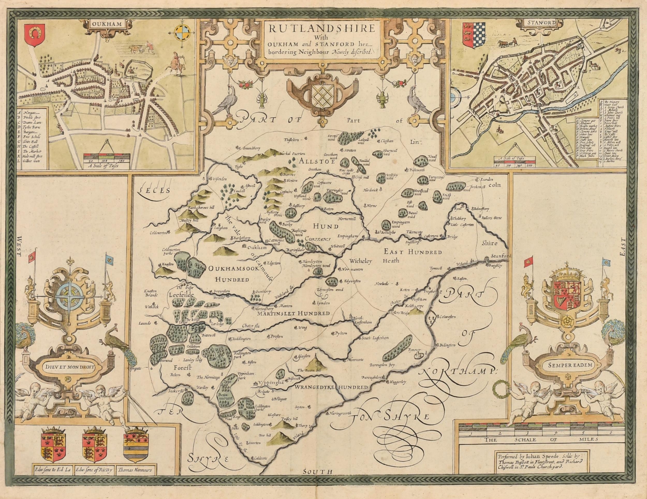 John Speed (1552-1629) British. "Rutlandshire", Map, 15" x 20" (38.1 x 50.8cm)